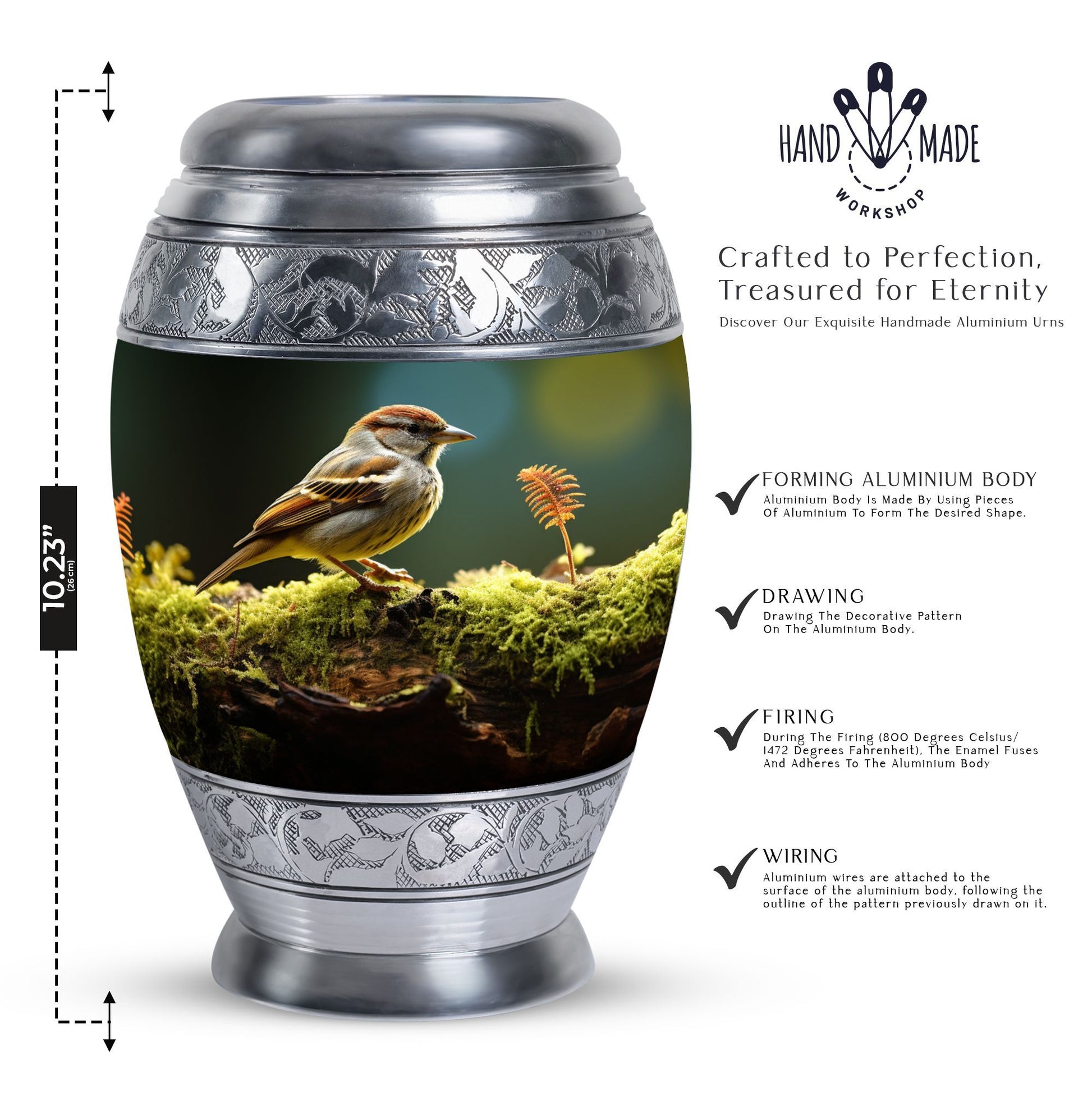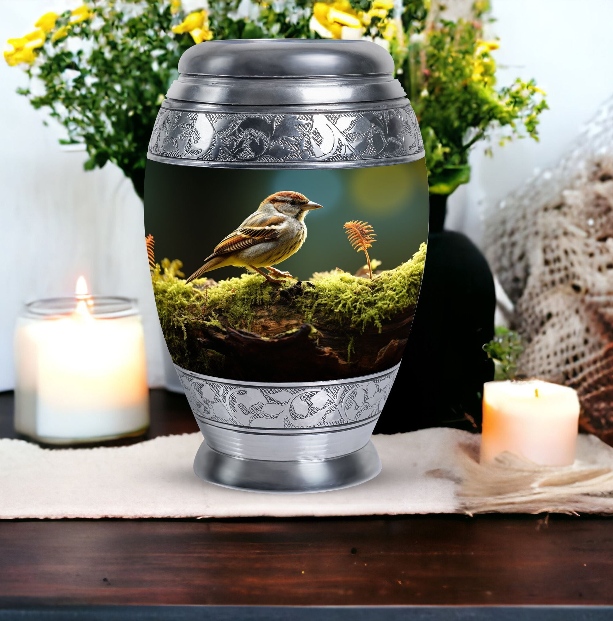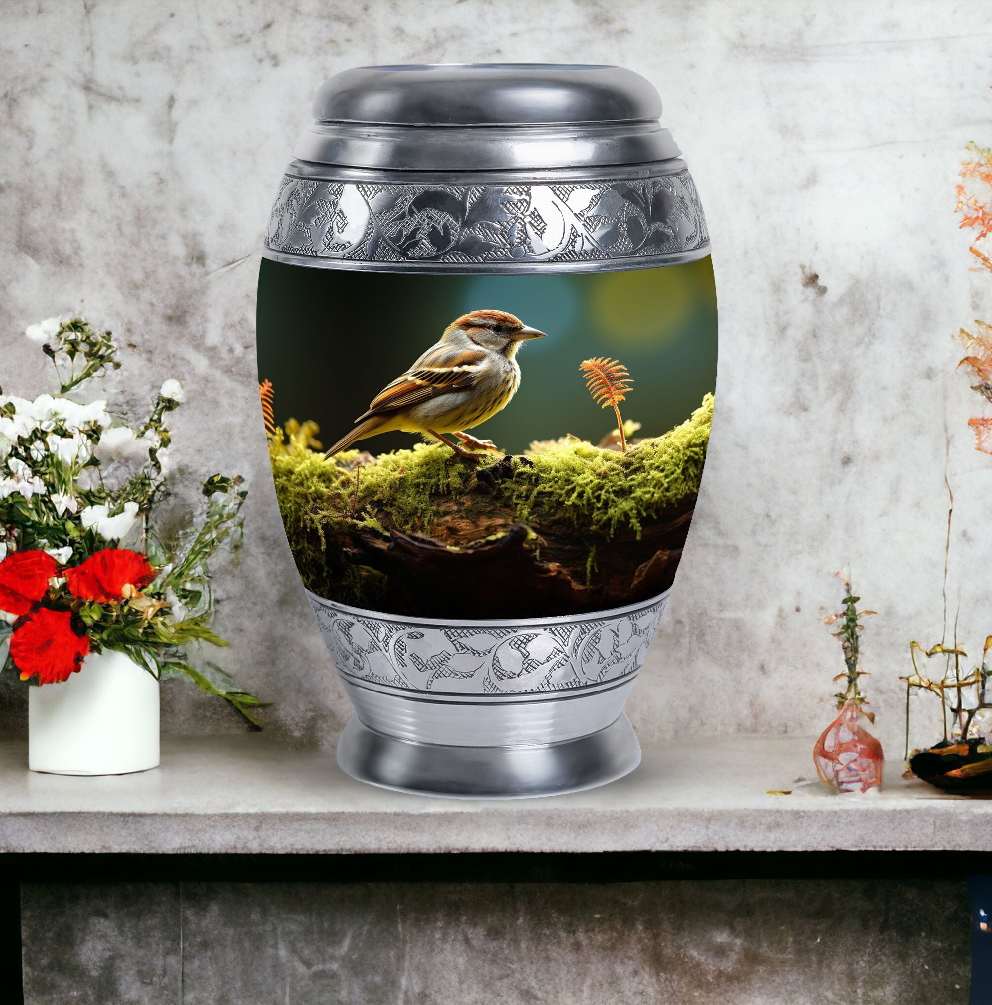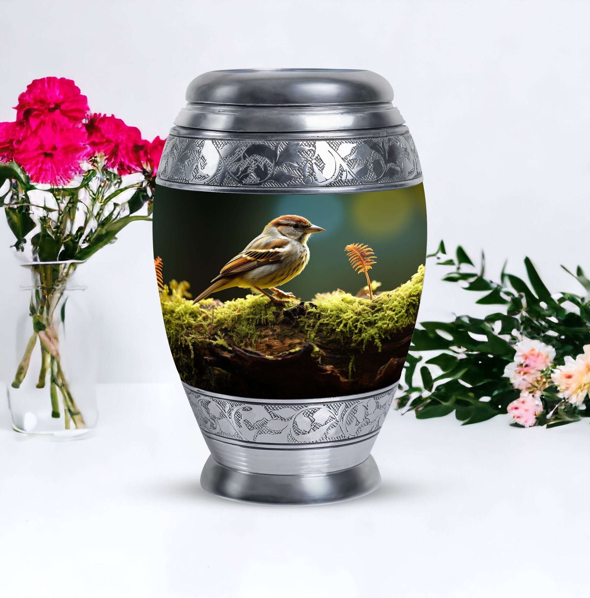 Symbolizing hope and gentle remembrance, the sparrow motif offers comfort during difficult times, making this a meaningful choice for those searching for a heartfelt large human urns option for honoring someone special.