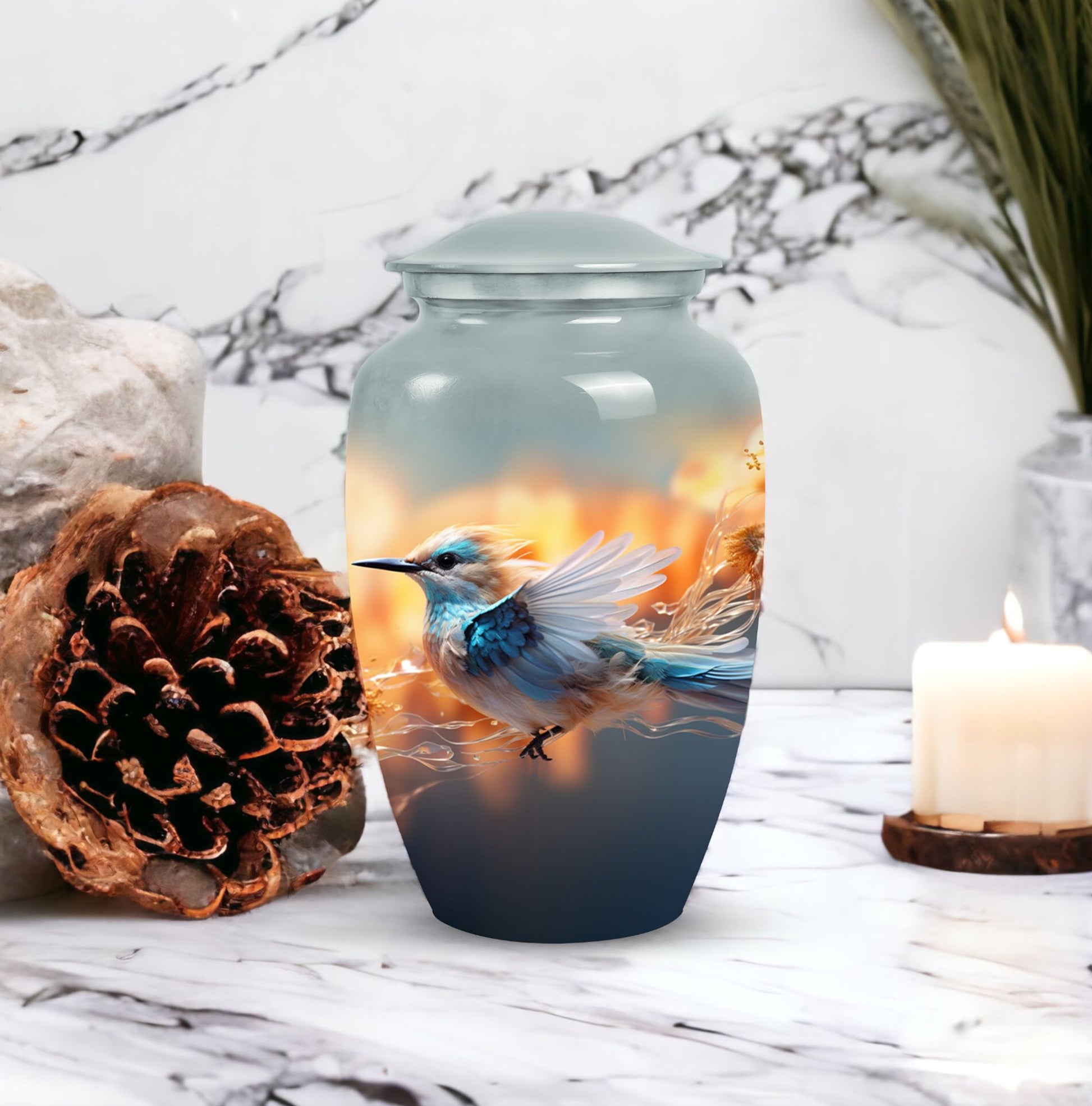 Experience serenity and solemnity with our beautiful Sparrow Urn, an exemplary choice among diverse decorative urns. An elegant and dignified receptacle cherished as a symbol of eternal respect, this burial urn carries an air of tranquility and grace. Handcrafted to perfection, the Sparrow Urn reflects not just sophistication but also immutable love. Ideal as funeral decorations, our urn adds an inimitable layer of sanctity. Available for both women and adults, the sophistication of this product is truly captivating. With its spacious chamber, it makes for a distinguished choice as a burial urn for human ashes. Be it to honor a departed soul or to preserve cherished memories, the Sparrow Urn symbolizes eternal peace and a timeless bond. Celebrate the memory of your loved one with our Sparrow Urn, a token of love crafted with compassion and care.
