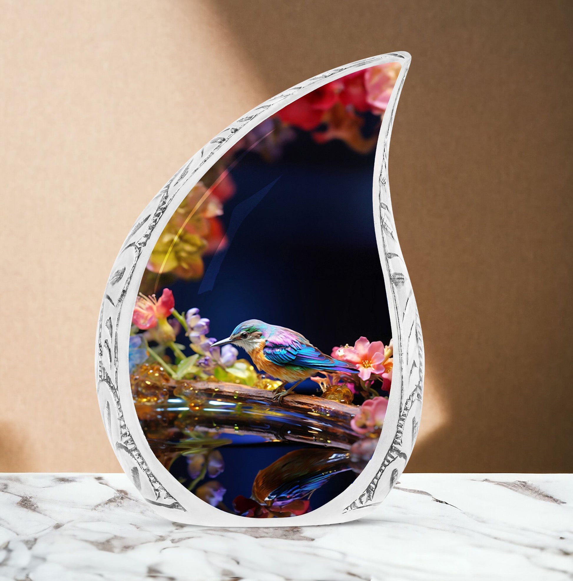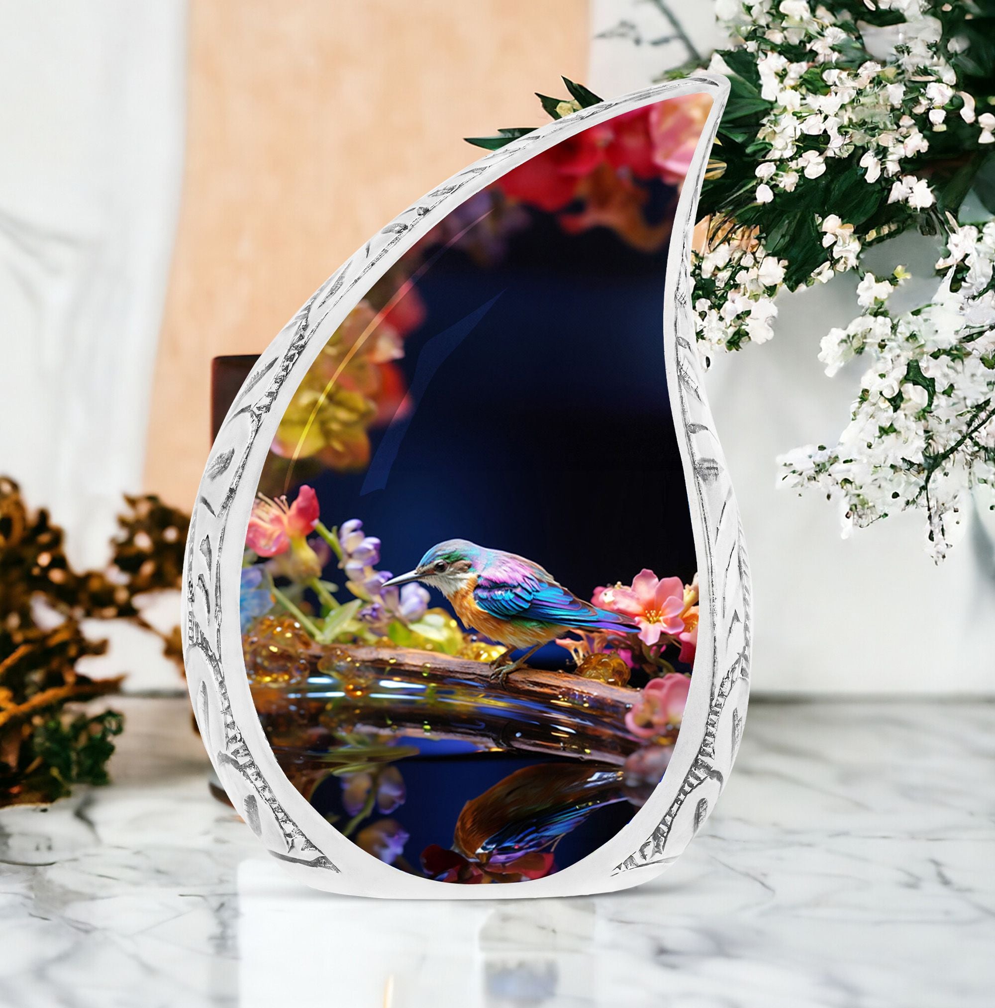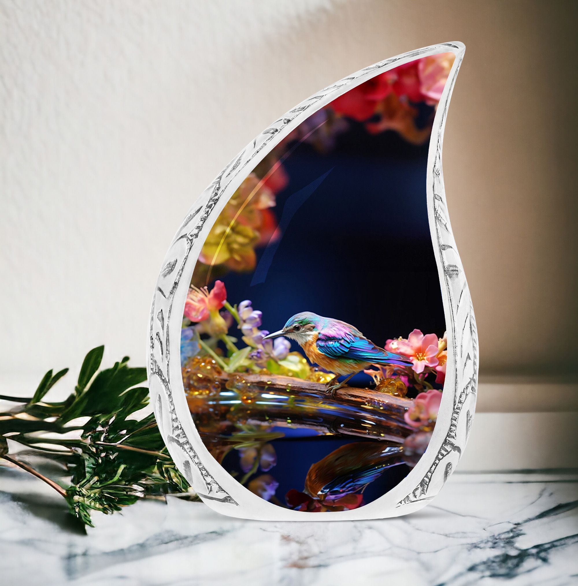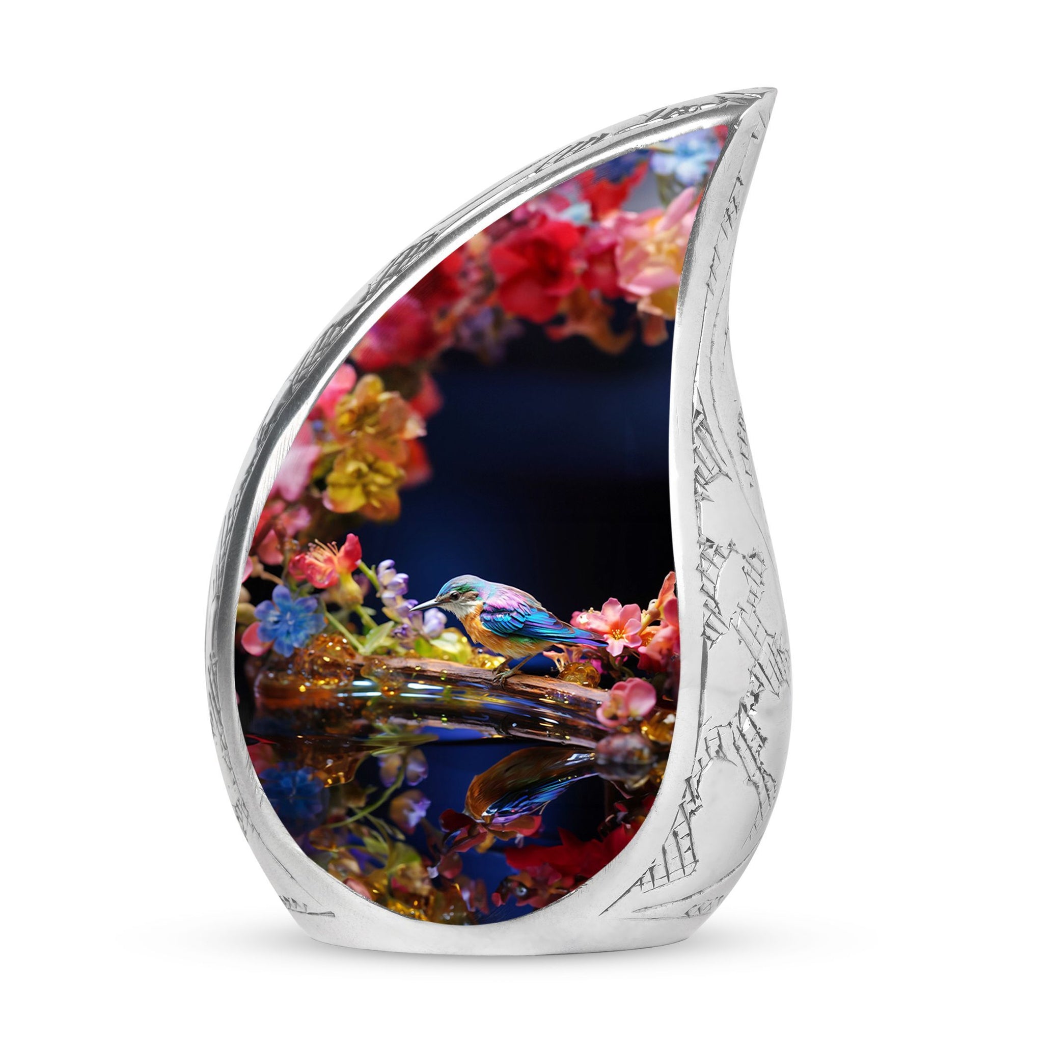 Honor a loved one's memory with the serene and resilient Sparrow Urn, one of our most sought-after Cremation Urns for Adults. This Large Urn is meticulously shaped from high-grade Aluminium, weighing a substantial 3.3 pounds, symbolizing the magnitude of your cherished memories. Standing at 10 inches in height, it boasts an impressive holding capacity of 200 cubic inches, allowing for respectful containment of ashes. The Sparrow Urn comes with a soft velvet pouch, ensuring safe preservation of its contents. With a customizable aspect on offer, you have the option to infuse a personal touch into the urn by engraving names. Notably absent in other Memorial Urns for Ashes, this attribute adds a unique layer to your tribute. Its size of 3 inches commands attention without being intrusive. If you're searching for Personalized Urns for Human Ashes or Metal Cremation Urns that truly resonate with your feelings, our Sparrow Urn stands as a heartfelt choice.