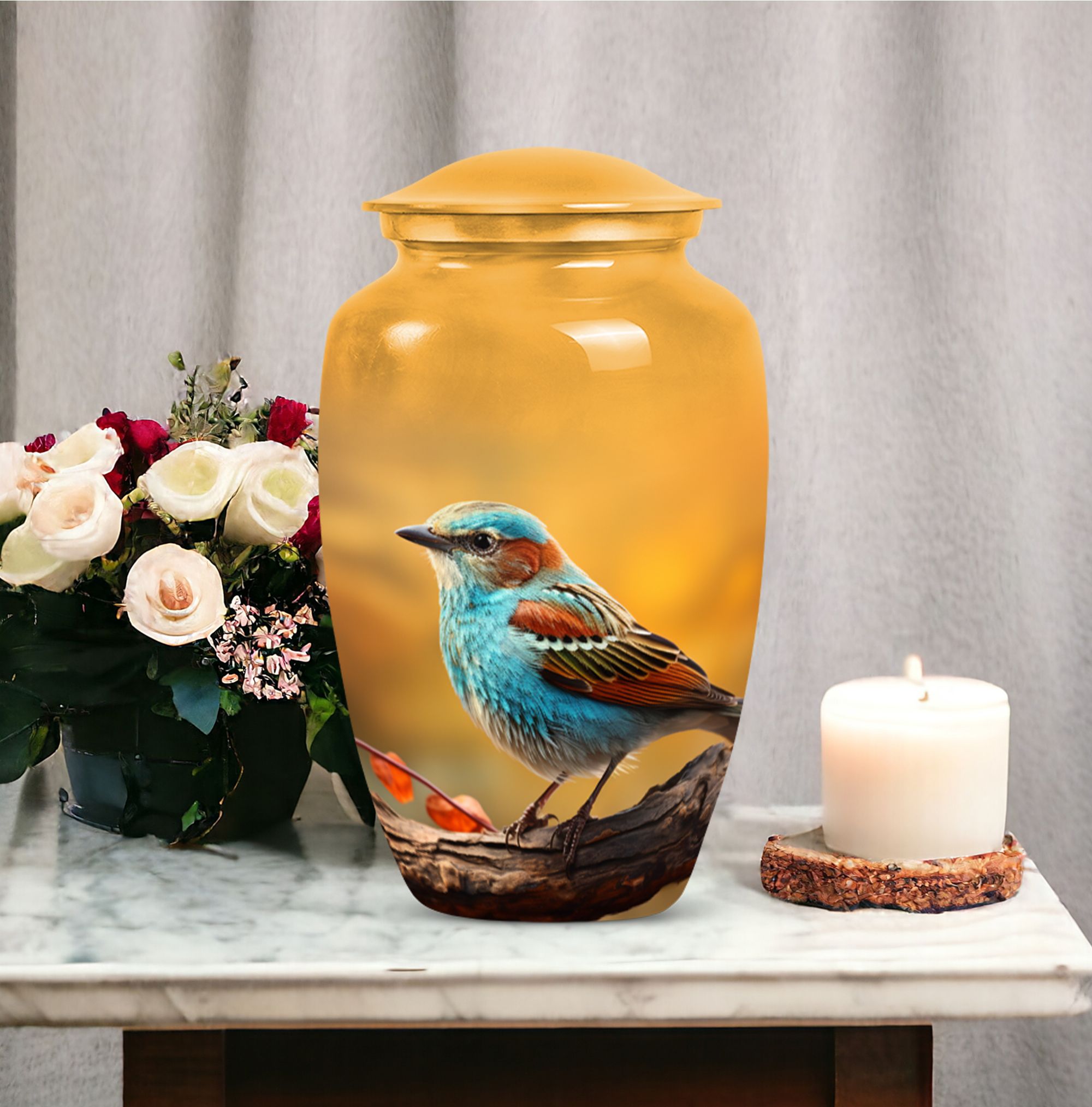 Discover the synergy of elegance and serenity with our Sparrow Urn, an exemplary option in funeral urns. Its intricate designs offer a heartwarming ode to the life lived by your loved one. Crafted with attention to detail, this urn seamlessly merges aesthetic beauty with deep respect for life's precious moments. Accommodating adult human ashes, it serves as a fitting repository for the physical traces of your dearly departed. Whether you're seemingly in search of burial urns for adult human ashes or simply a resting ground for memorial ashes, our Sparrow urn stands out. Besides, catering to human urns demands for adult males, it's universally appealing. These qualities make it a remarkable choice in the memorial ceremony supplies category. Appreciate the passage of time and celebrate memories in a resilient and dignified manner with our Sparrow urn. Veer away from the mundane and embrace a unique approach to memorializing your loved ones.