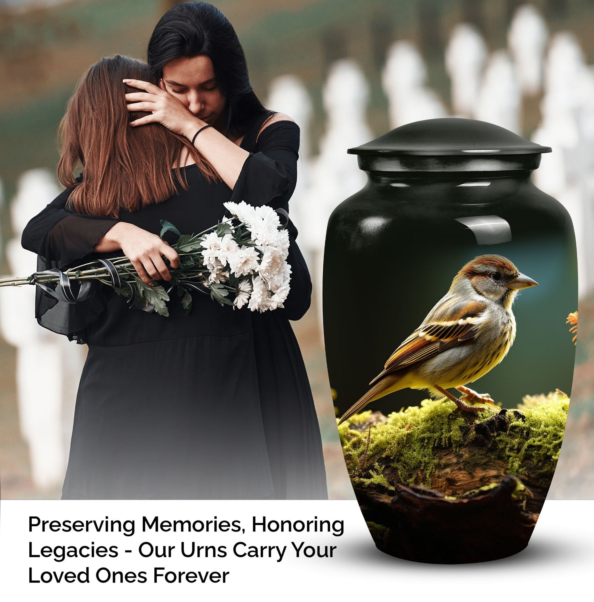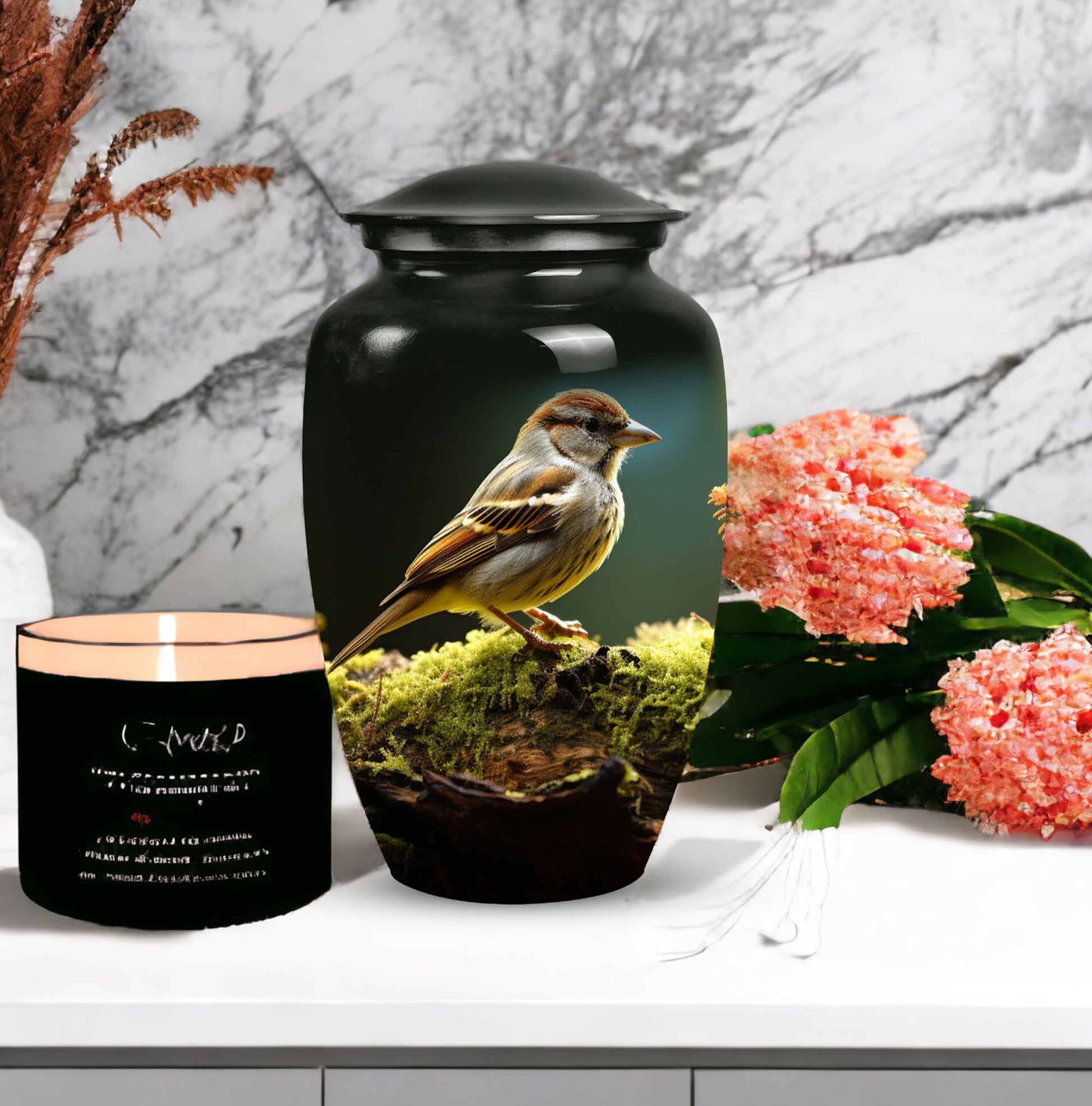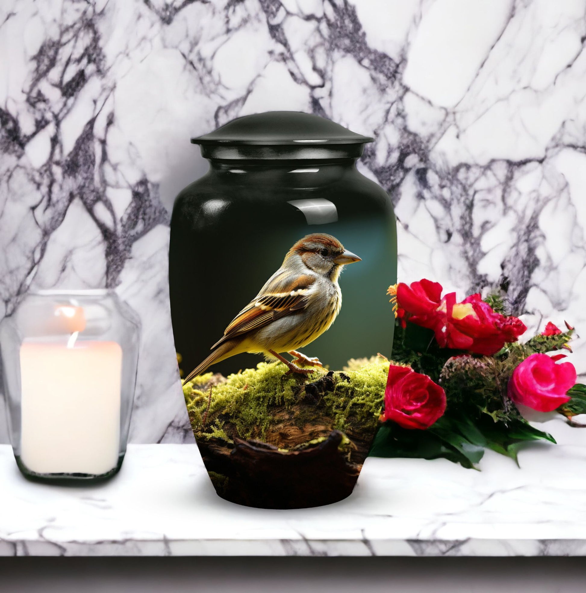 Discover reverence and peace with our Sparrow Urn, a fine choice from our exclusive collection of Memorial Urns For Ashes. Carefully crafted to preserve the memory of a cherished one, this urn stands as a beautiful symbol of lasting respect. An ideal Ash Container for Human Ashes, with its delicate design emulating a soaring sparrow, it dignifies the journey of a life well-lived. It's not just an Urn for Ashes for Men; it reflects the serenity well deserved by all adults who've crossed the portal of eternity. More than just a vessel, it serves as an exquisite addition to your current decor. It's also a testament to the enduring spirit of your beloved, encapsulating your memories and affection with their immortalized essence. Bring home this Cremation Urn for Adults and experience a unique blend of elegance and solemn tribute in remembering your dear ones lost to the tide of time. This ageless, Decorative Urn ensures your loved one remains a harmonious part of your life's tapestry, even in their eternal rest.
