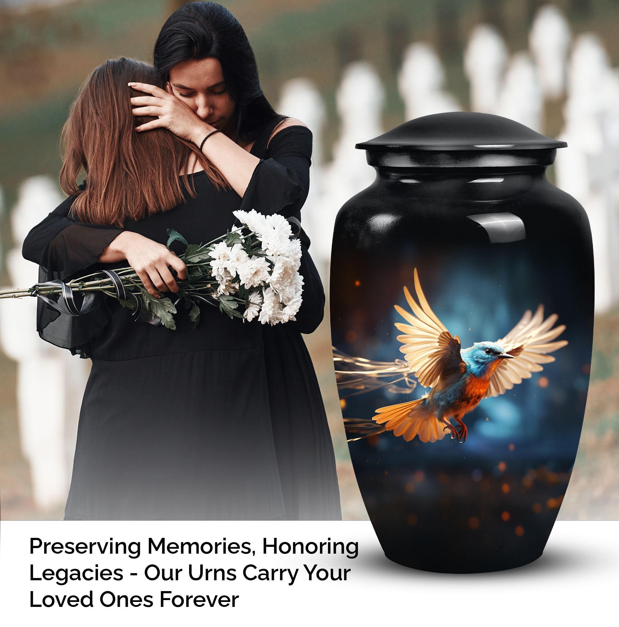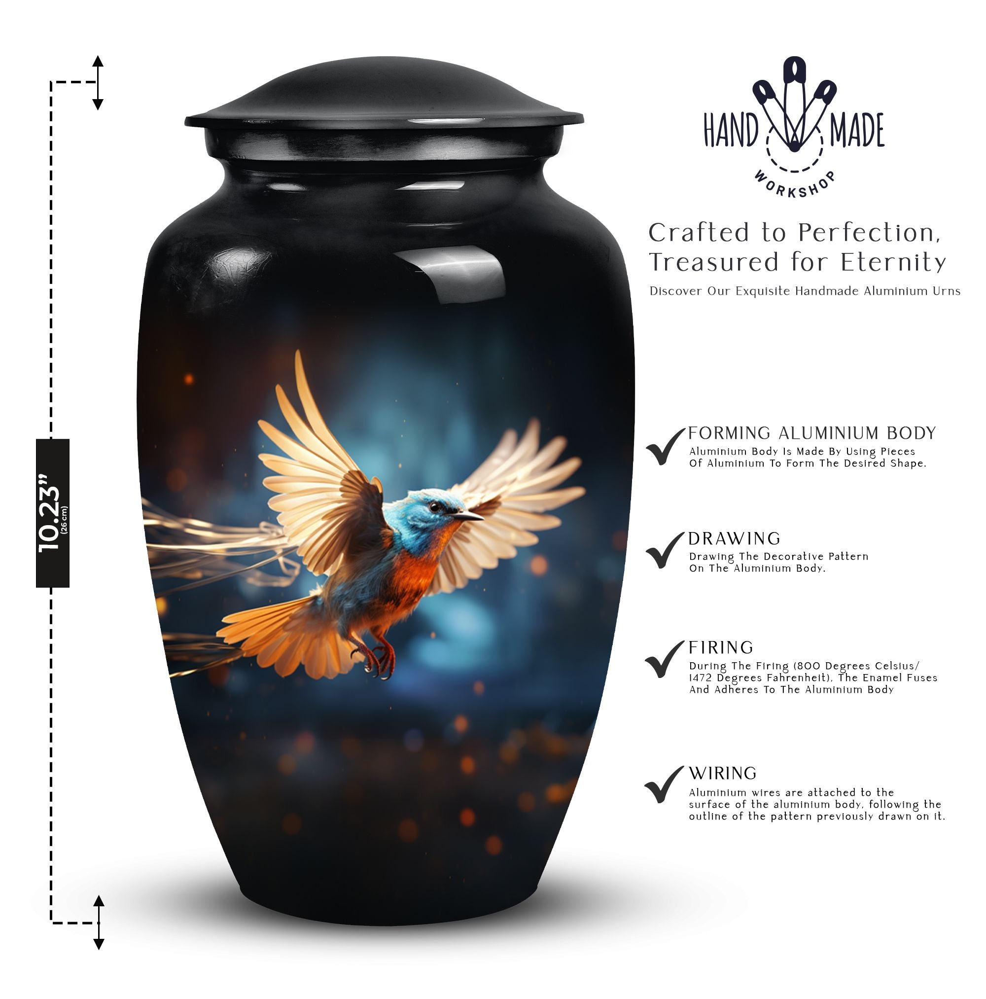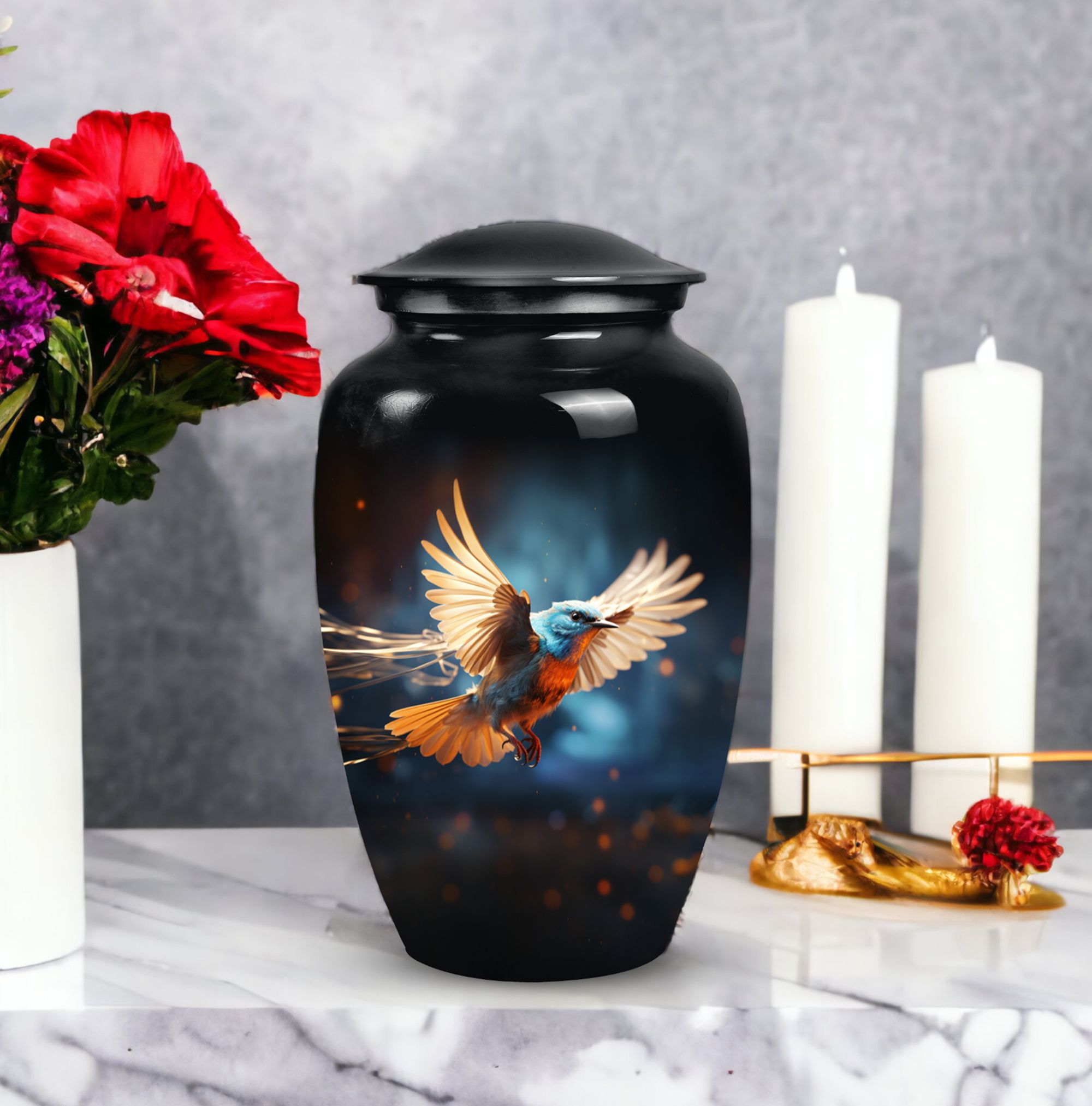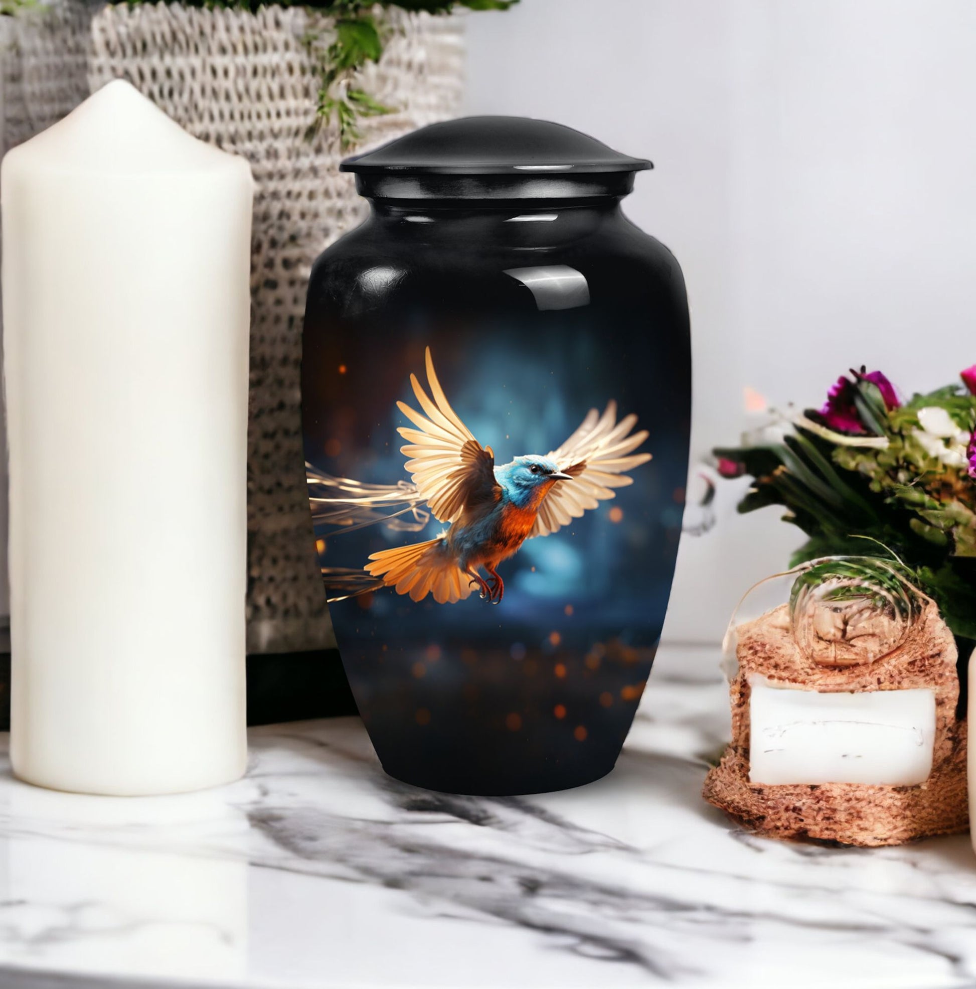 Our Sparrow Urn delicately exemplifies the understated beauty of a final resting place. It is an exquisite choice to commemorate the life of a treasured female loved one. Each Sparrow Urn is meticulously crafted to hold cremation ashes, providing a dignifying memento for both women and men. Ideal for mothers and fathers alike, this urn serves as a profound expression of everlasting love. Its sophisticated design evokes a sense of peace and serenity, offering solace during challenging times. Holding not just ashes, but precious memories, it mirrors the eternal bond shared with the departed. Apart from its utilitarian function, the Sparrow Urn, aesthetically pleasing and emotionally touching, also adds to the decor of your home, subtly keeping your loved one closer. Choose our Sparrow Urn, a distinctive and beautiful tribute, curating remembrance in honor of your cherished one.