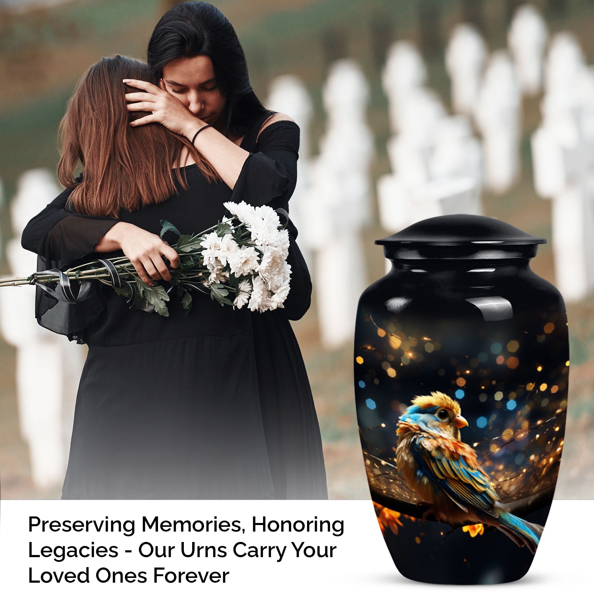 Discover the Sparrow Urn, meticulously designed to honor and remember the ones you've cherished. It's not just an Urn for human ashes - it's a sacred vessel embodying love, respect, and reverence. Our Sparrow Urn is particularly suitable for adults, with ample capacity to hold ashes securely. Whether you're searching for Urns for Adult Female or something sizable for a Male, this urn effortlessly accommodates, making it a wonderful memorial memento. The craft, quality, and significance of this Cremation Urn transform it into a cherished keepsake, subtly capturing the essence of the one who has moved beyond. As you ruminate through your precious memories, let the Sparrow Urn stand as a solemn reminder of the life that was. Therefore, for those in quest of eternal peace for their loved ones' remains, this urn offers an elegant solution. Invest in the Sparrow Urn and give a heavenly touch to the memorial ceremony.