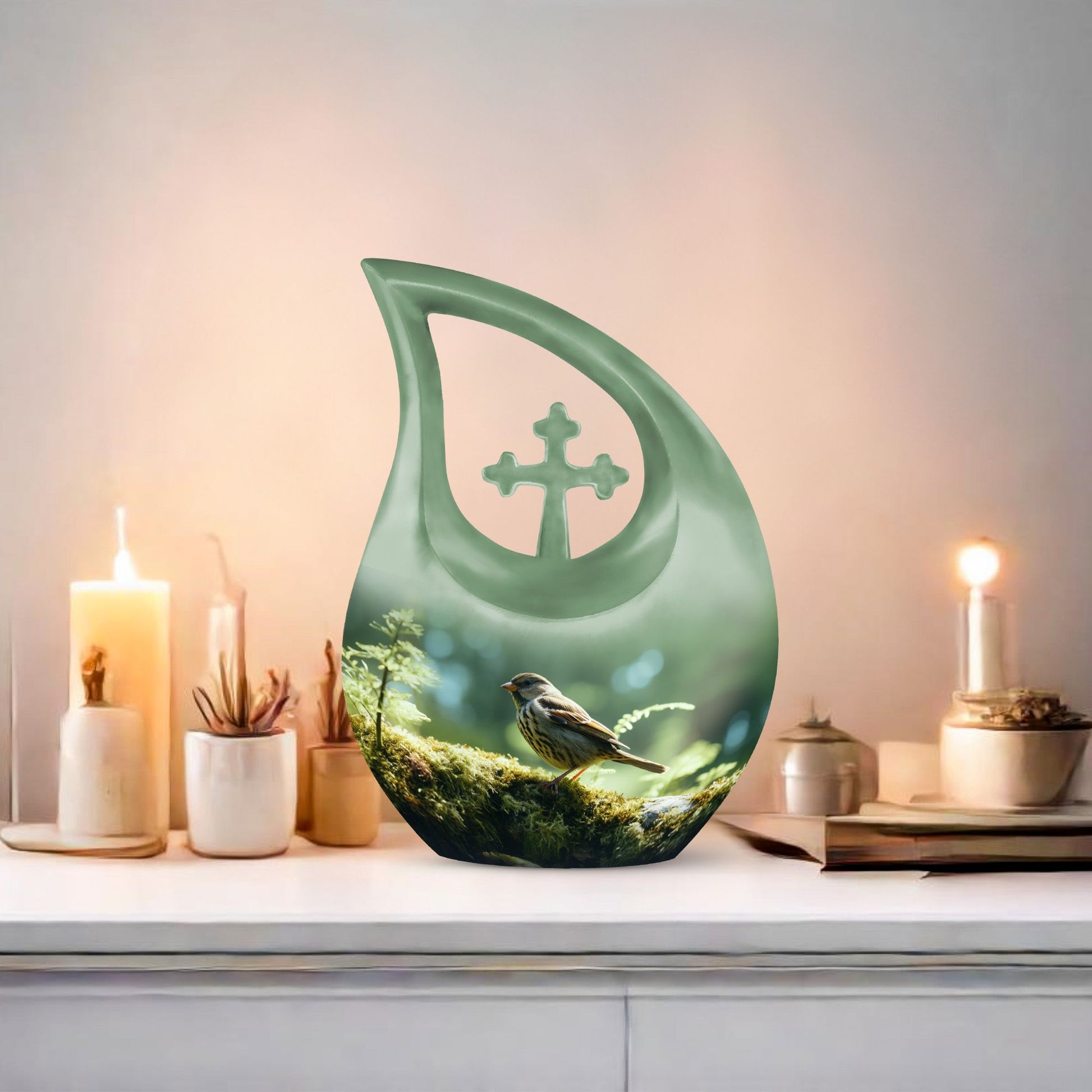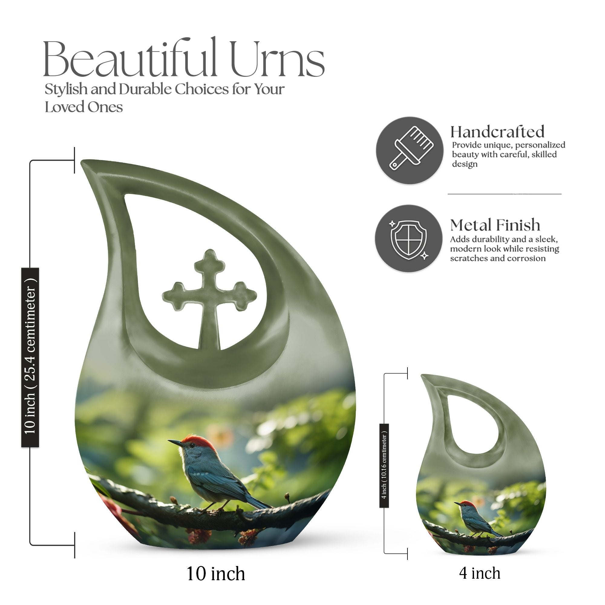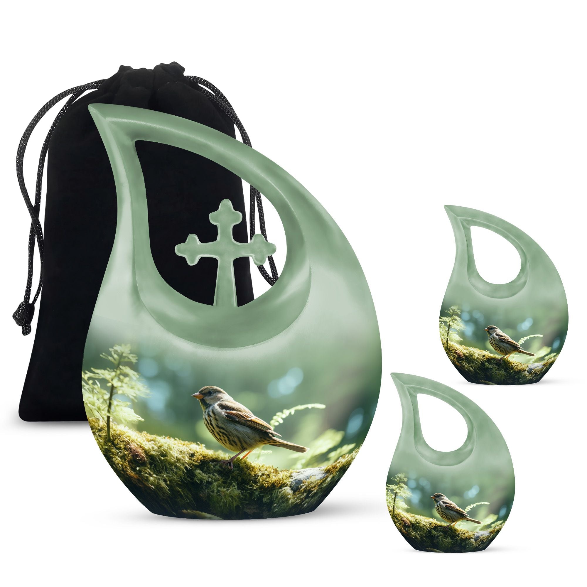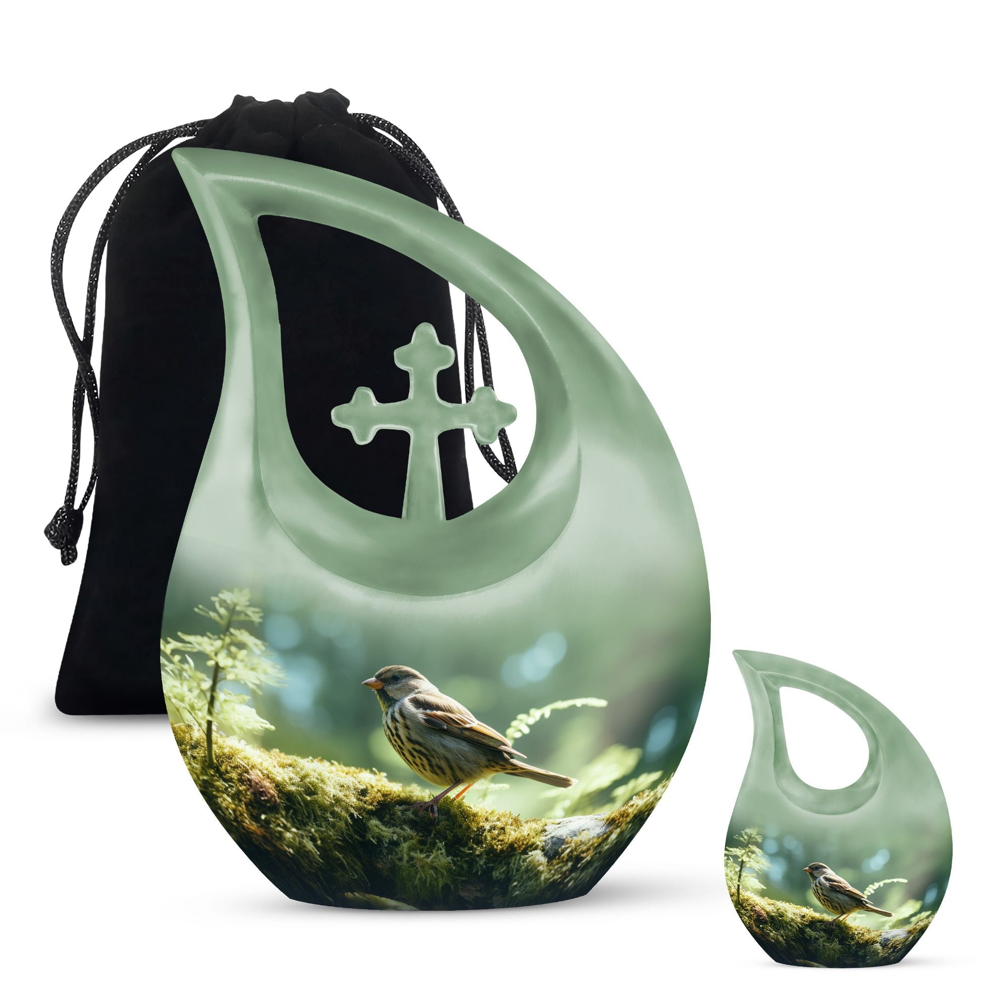 Celebrate the life of your loved one with the Small Finch Cremation Urn for Human Ashes, a heartfelt symbol of hope, serenity, and remembrance. The soft light green teardrop design, accented with a delicate finch motif, embodies renewal and tranquility — a fitting tribute for urns for human ashes adult male dad or urns for human ashes adult female mom. This elegant piece offers a meaningful way to preserve cherished memories in a graceful, comforting form.