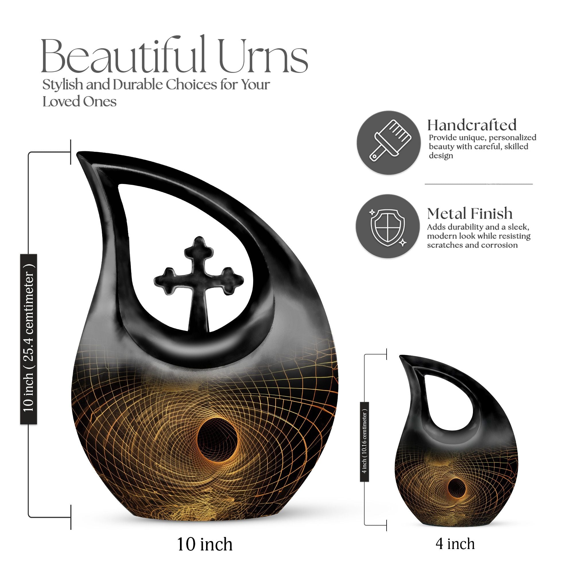 Crafted with care from durable aluminium, this 10 inch urn blends lasting strength with artistic beauty. Families searching for cremation urns, a dependable cremation urn human ashes, or versatile adult cremation urns will appreciate its secure screw-top lid and generous capacity. It pairs beautifully with small cremation urns, mini cremation urns for human ashes, or a small urn for cremation human ashes, making it suitable for both primary memorial use and shared keepsake remembrance. A thoughtful choice for those honoring a mother with urns for cremation ashes mother, or anyone seeking small cremation urns for ashes or meaningful cremation ashes keepsakes.