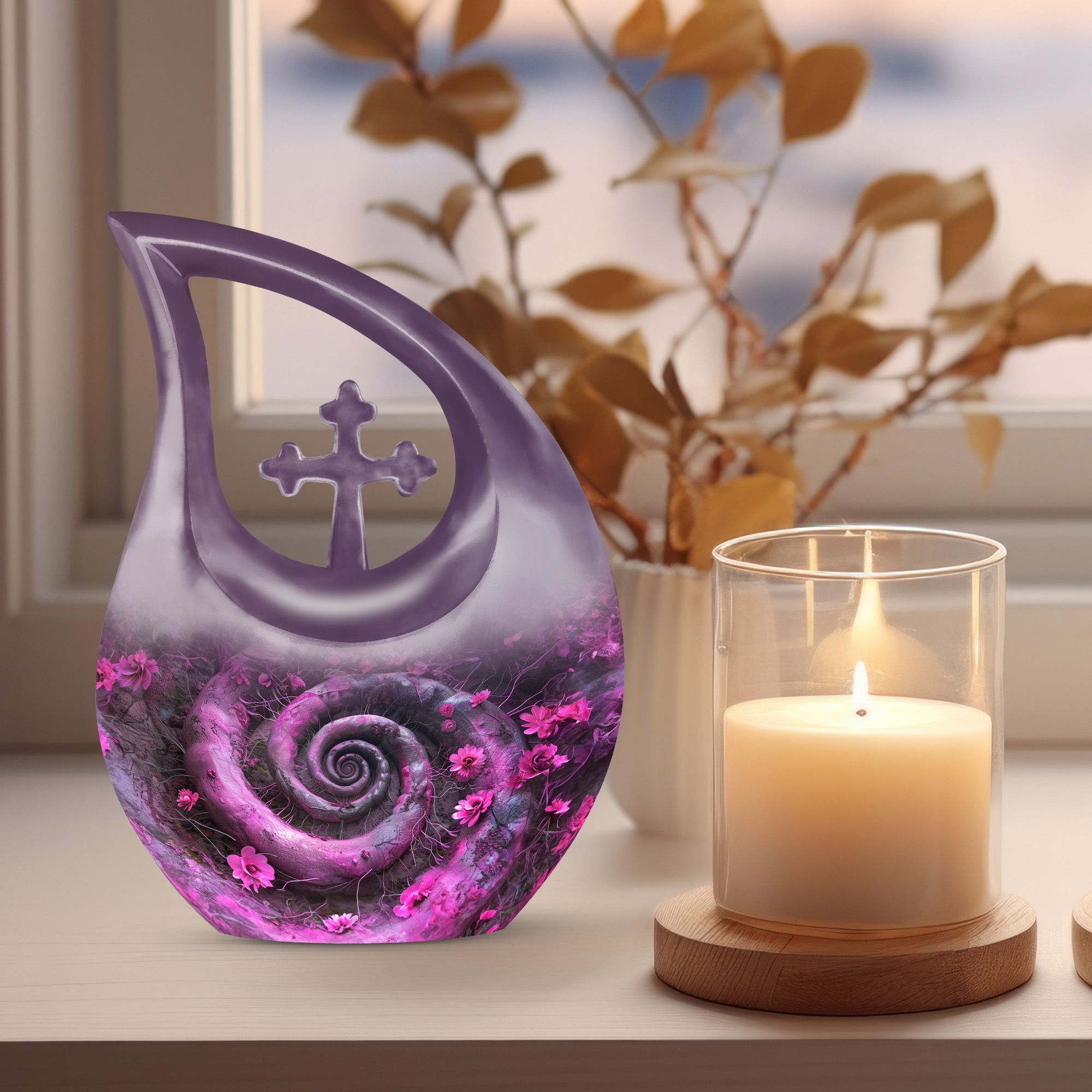 The Purple Spiral Burial Urn offers a peaceful and meaningful way to honor a cherished life. Its calming spiral design symbolizes continuity, love, and eternal remembrance—making it a comforting choice for families seeking beautiful urns women prefer or a thoughtful urn for ashes adult male.