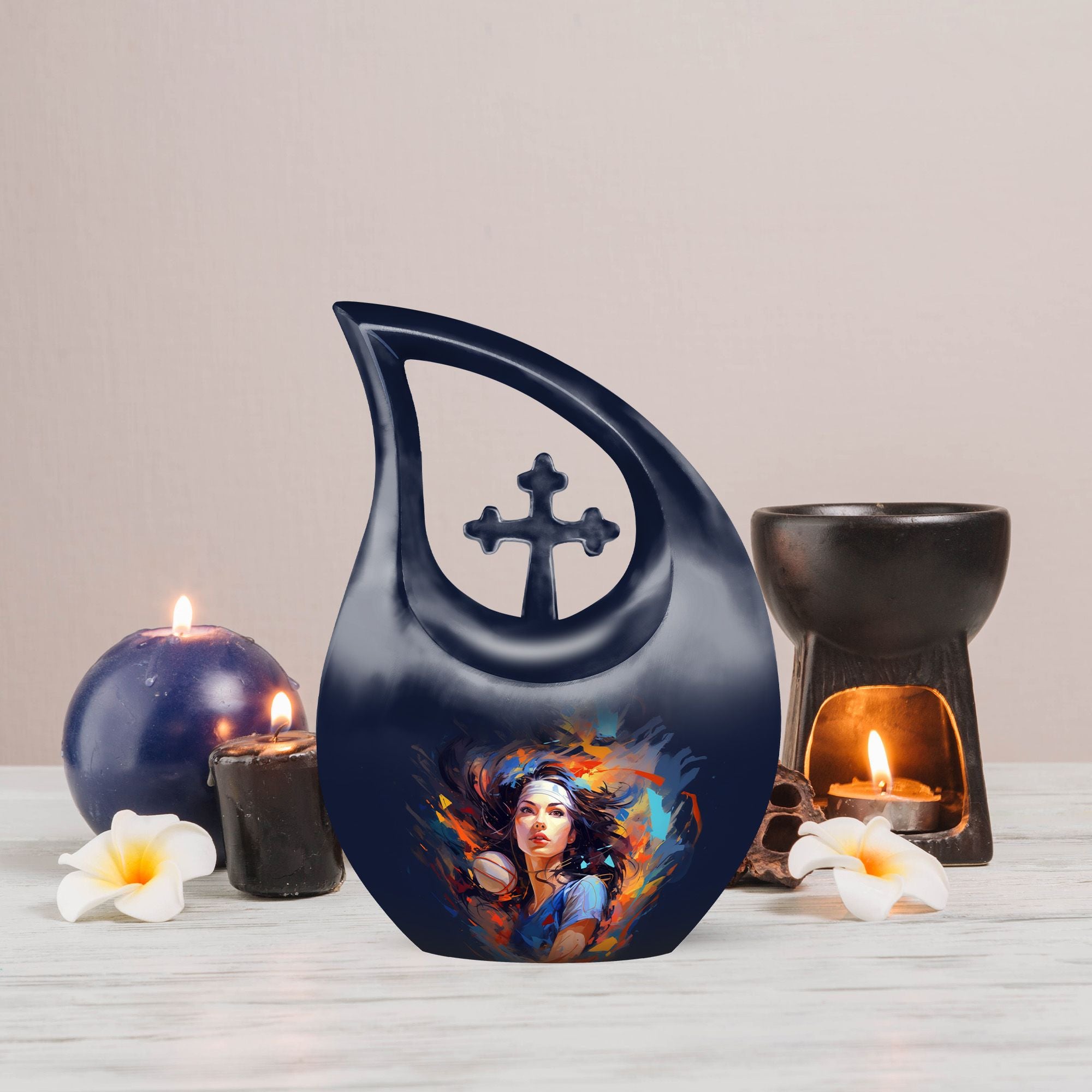 A compassionate and uplifting tribute, this memorial container symbolizes love, honor, and a lasting celebration of her spirit.
