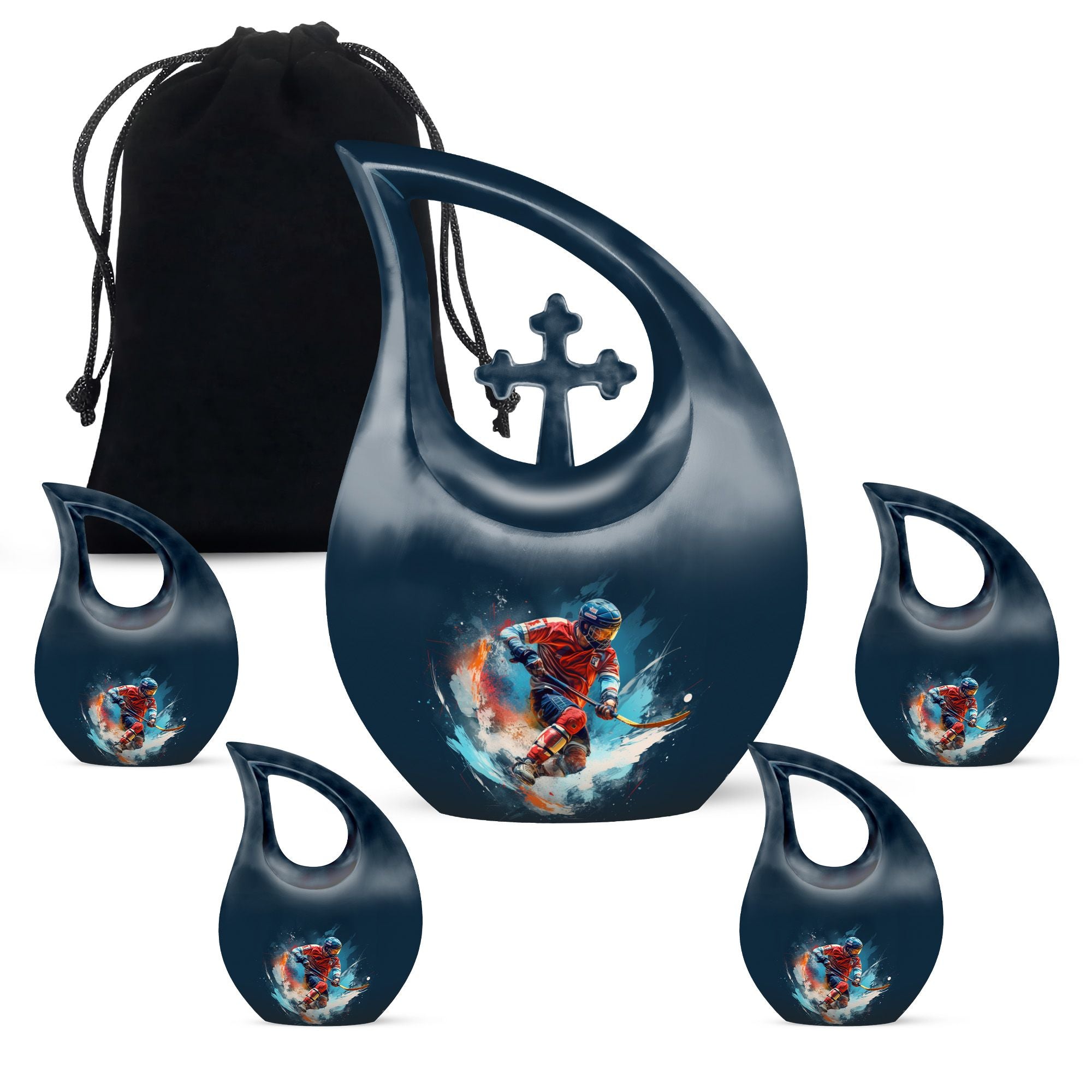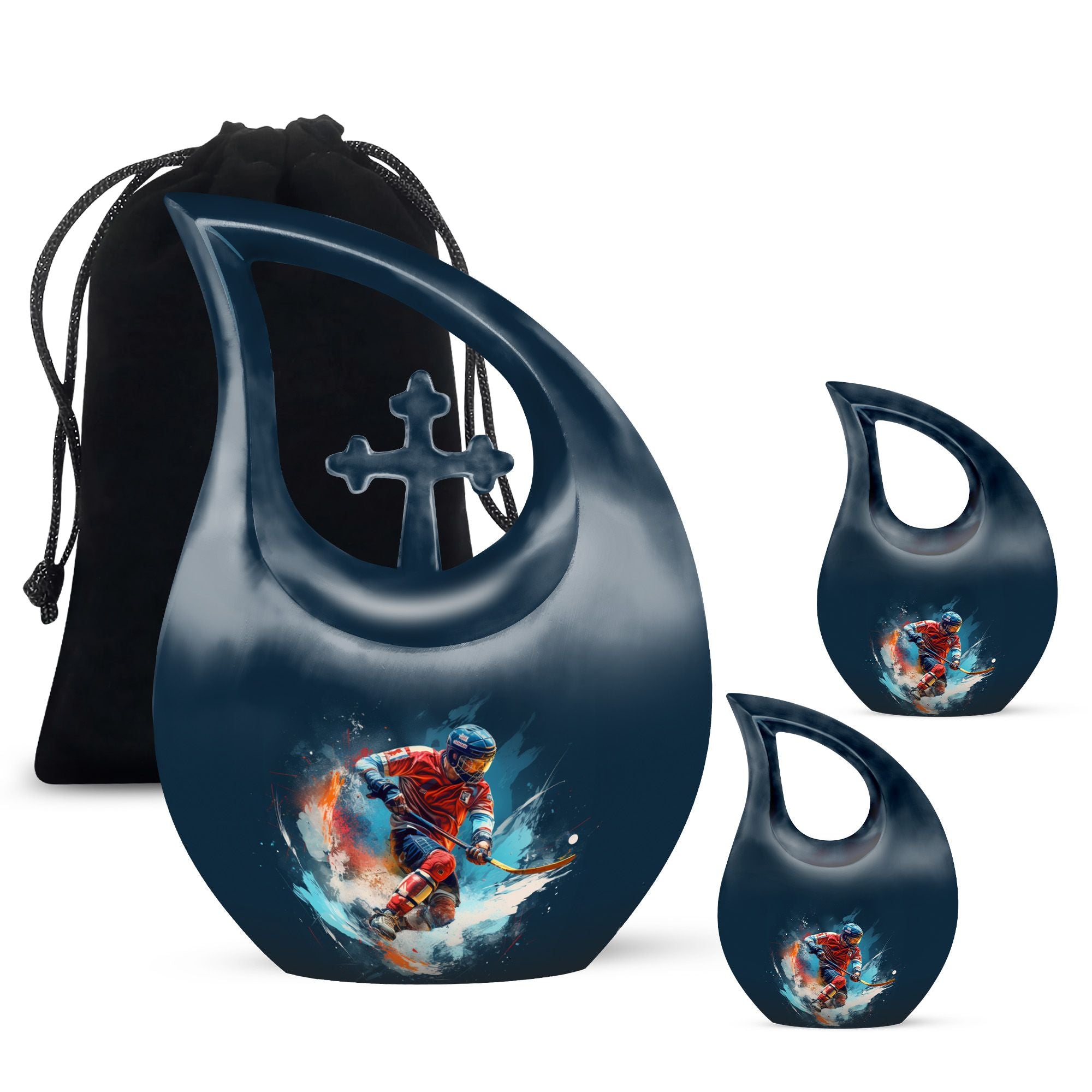 This combo set offers versatility and unity, allowing family members to honor a shared love for ice hockey while keeping memories close. Whether displayed at home, used during a ceremony, or combined with additional urn for cremations pieces, this design provides comfort and heartfelt symbolism.