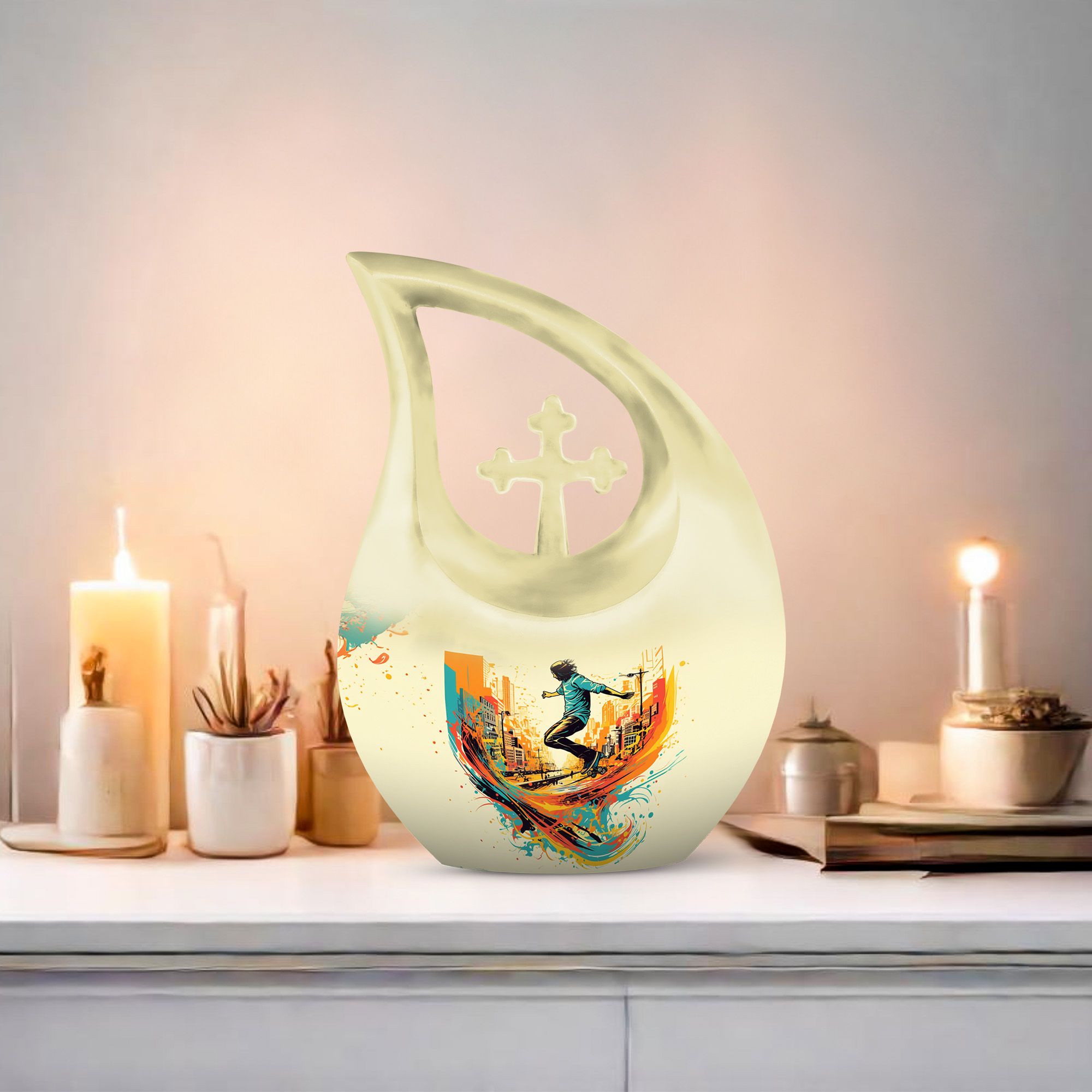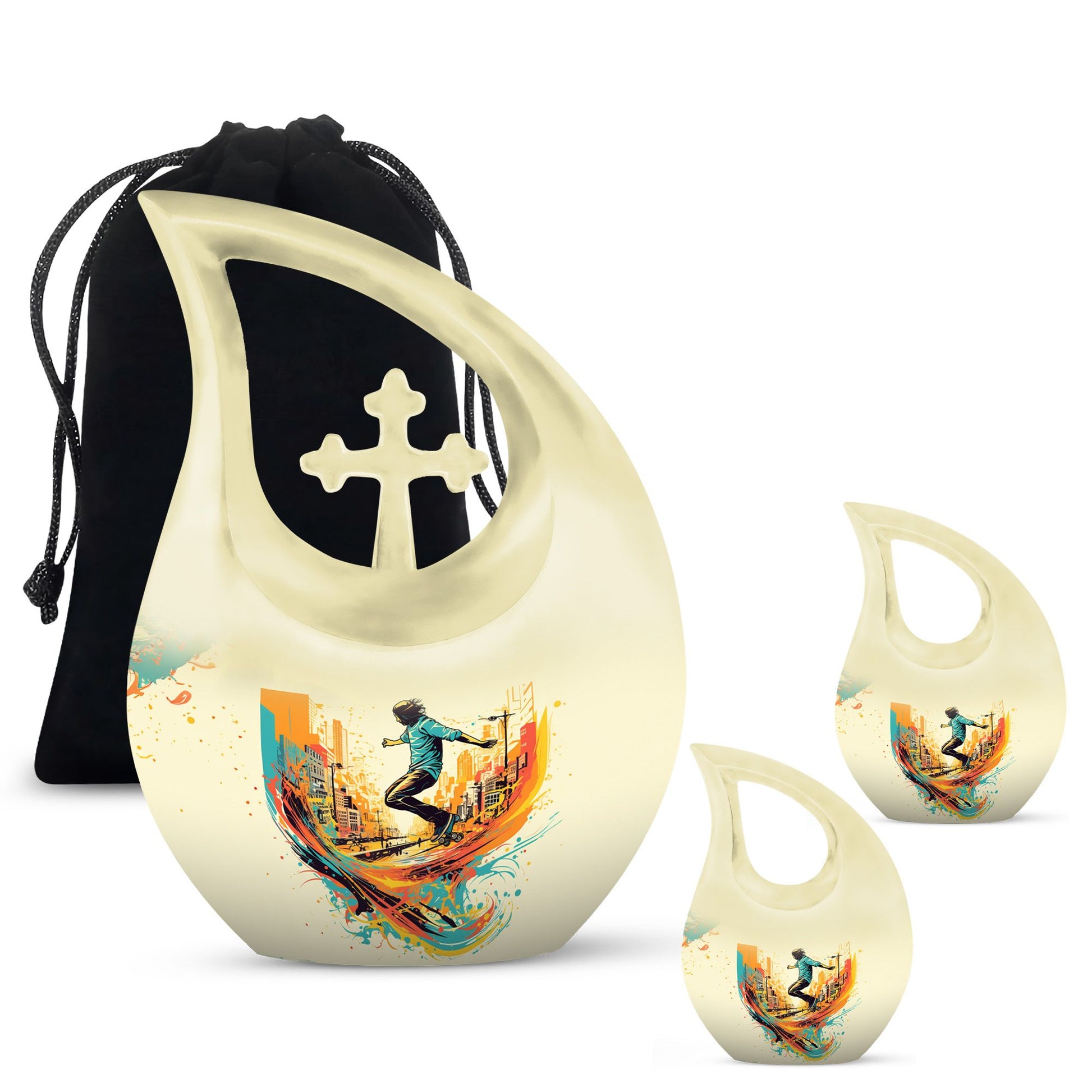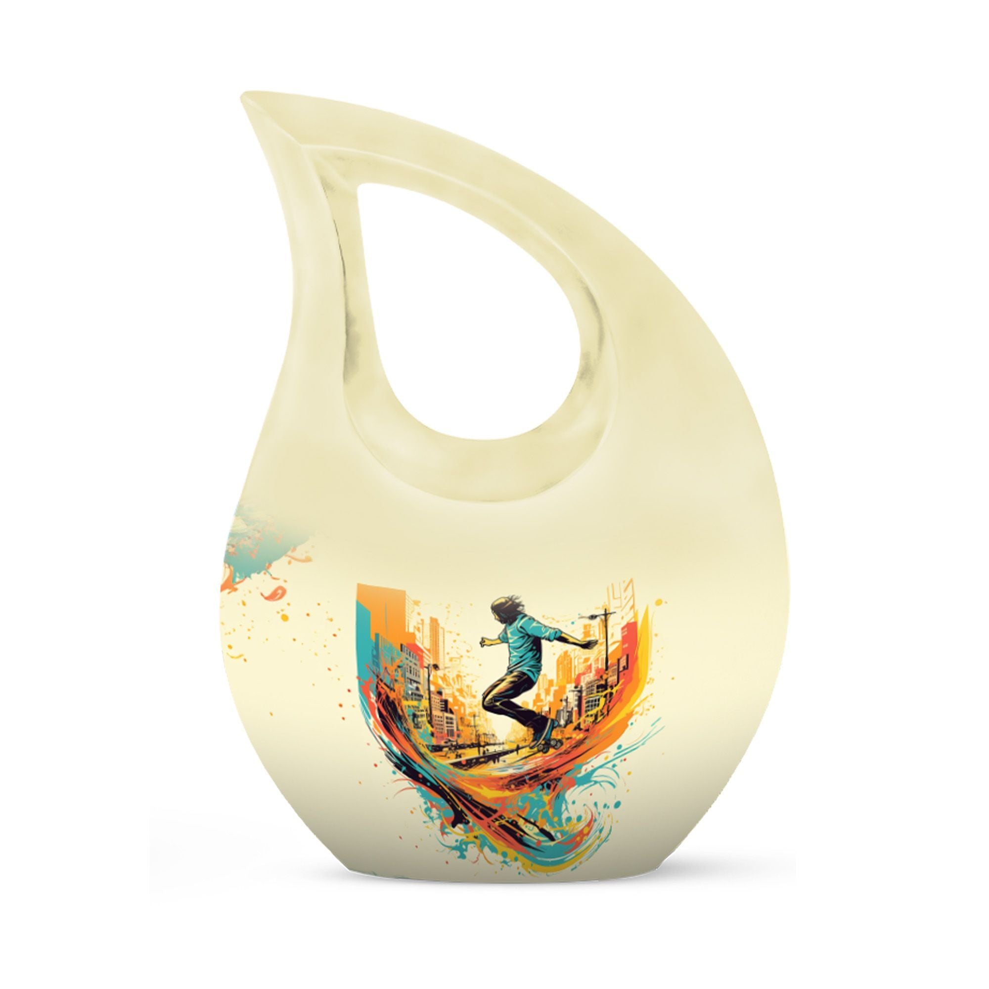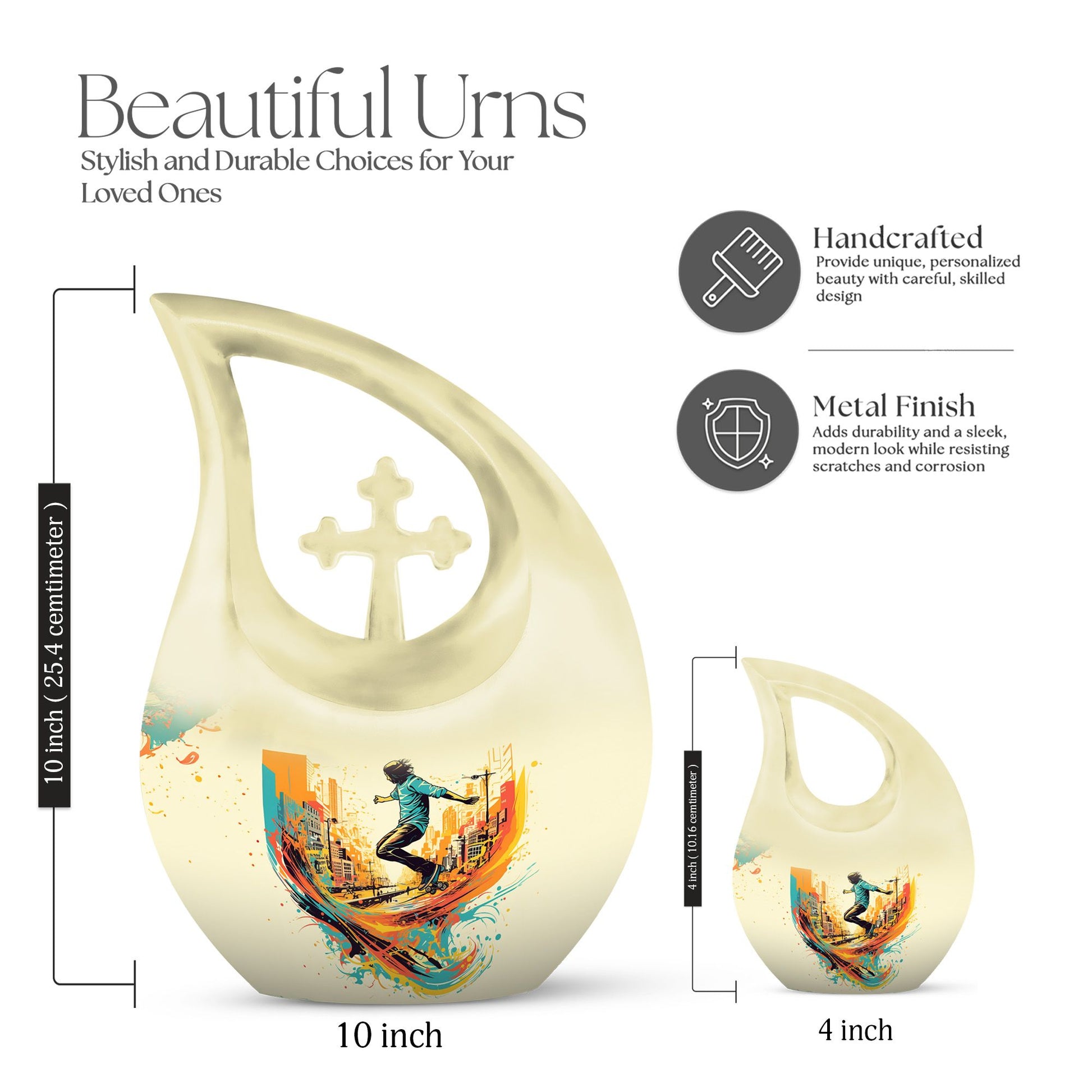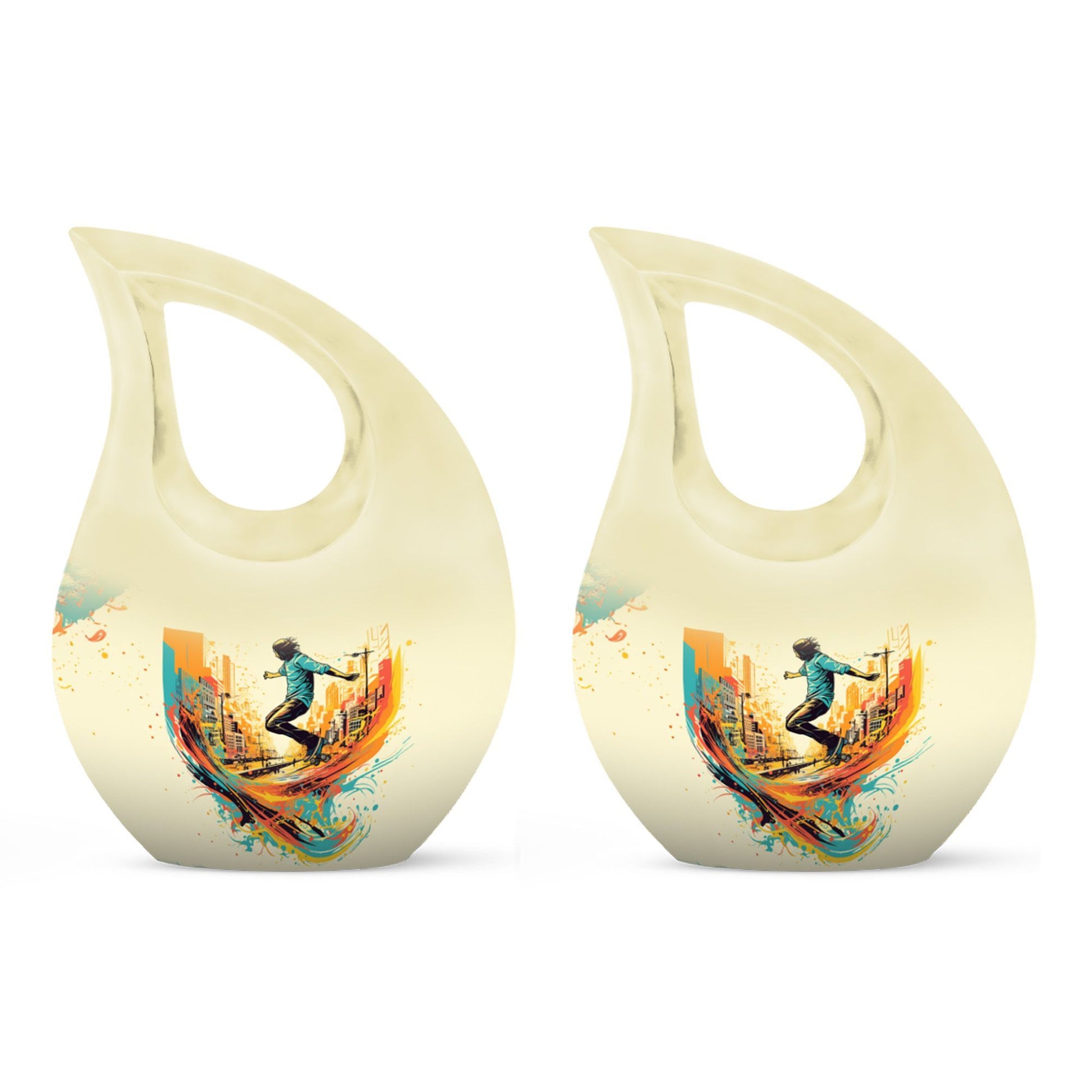 Crafted from premium aluminum, this colorful urn for funeral features a dynamic roller-skating–themed design symbolizing freedom, energy, and artistic expression. With a full 10-inch height and a 200-cubic-inch capacity, it functions beautifully as an urn human ashes large or large urn human ashes option. The secure screw-top lid ensures safe keeping, while its vivid artwork makes it ideal for families seeking a large decorative urn for human ashes, an urn mom ashes large, or an urn large adult memorial. It also supports the needs of families looking for urn for ashes for women, small urn for ashes for women, cremation urns for women, urn for ashes for women small, and matching keepsake urns for women for shared remembrance.