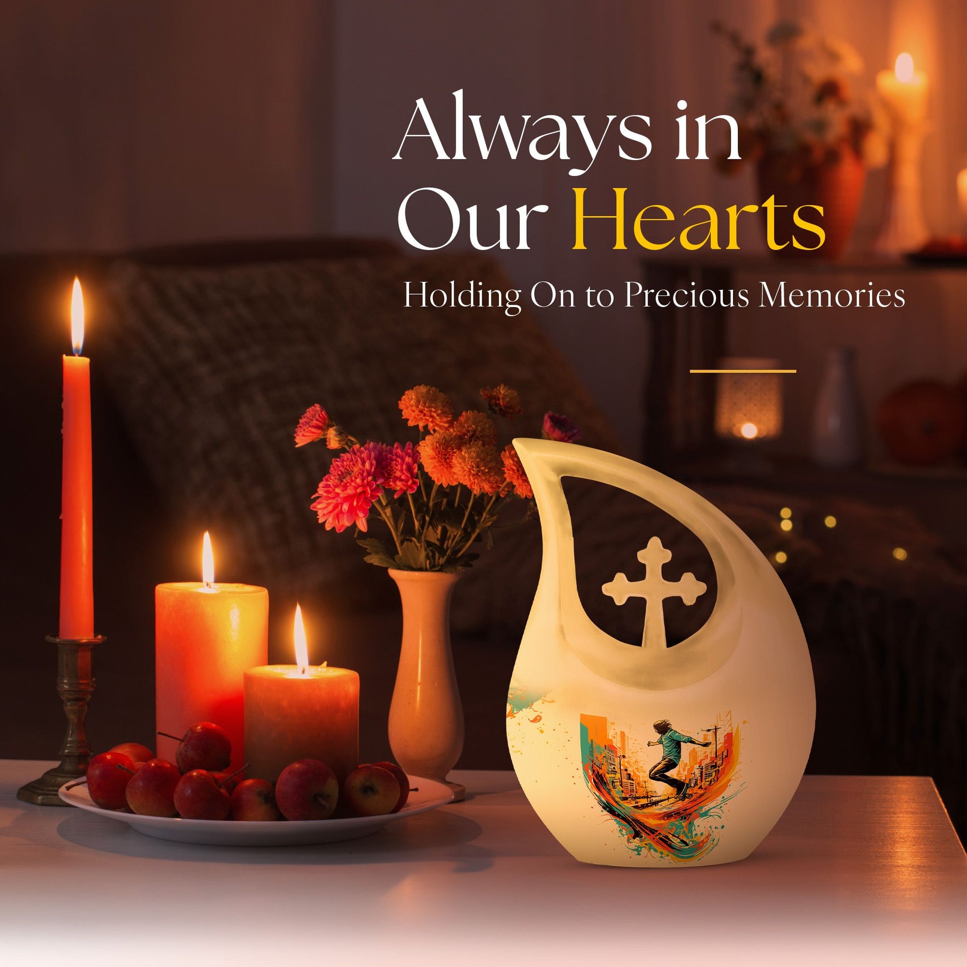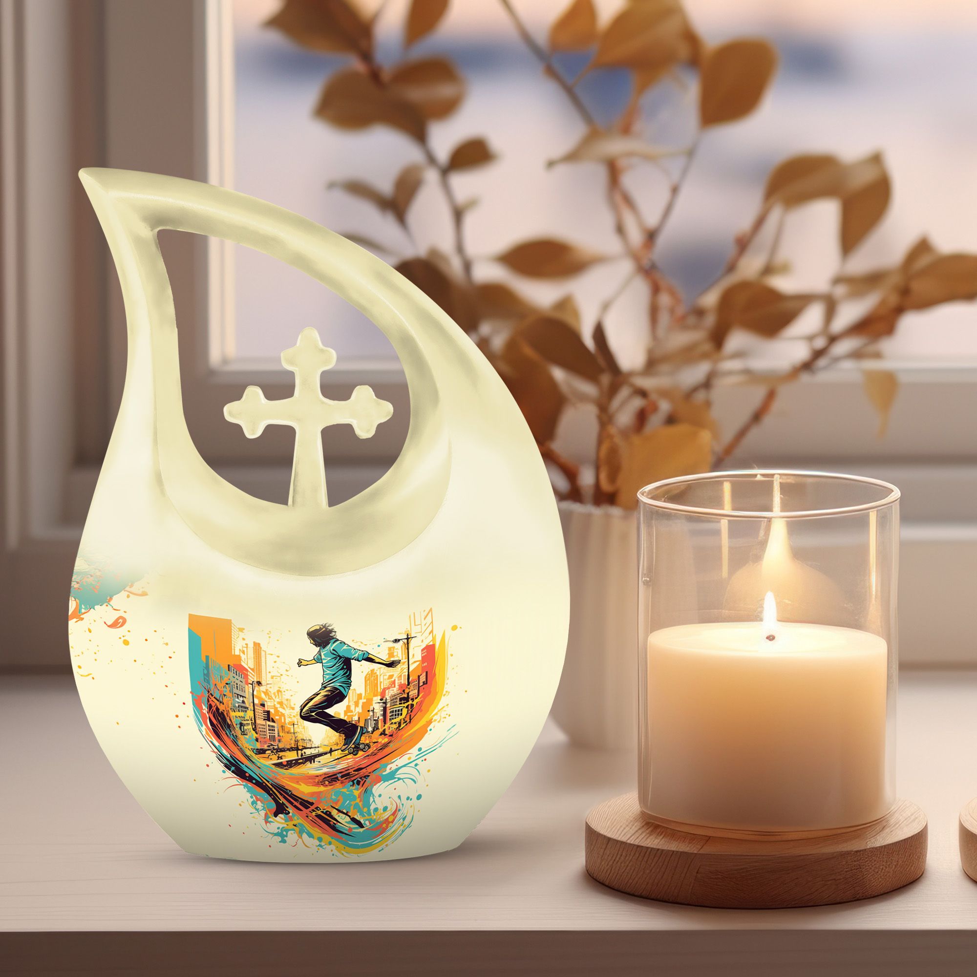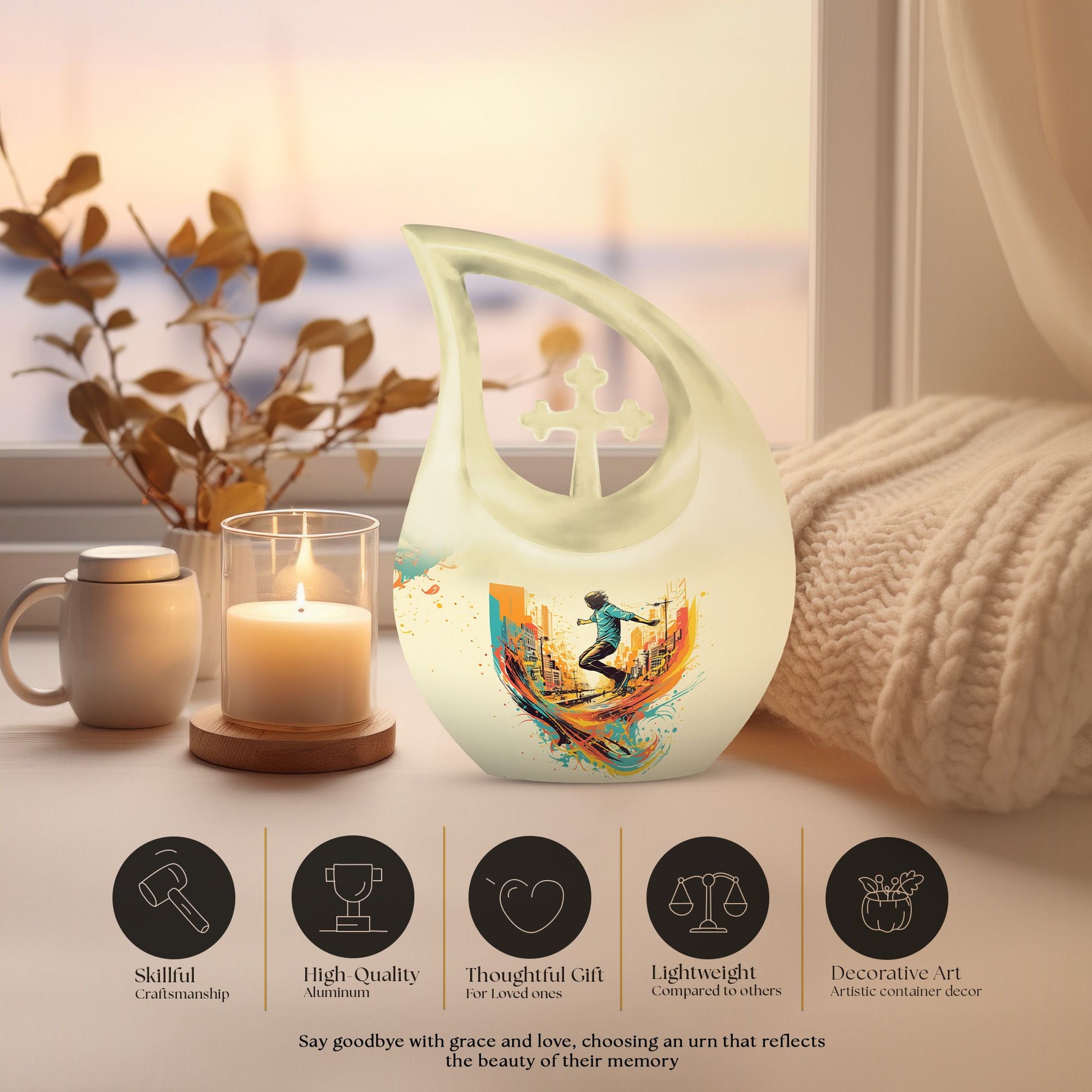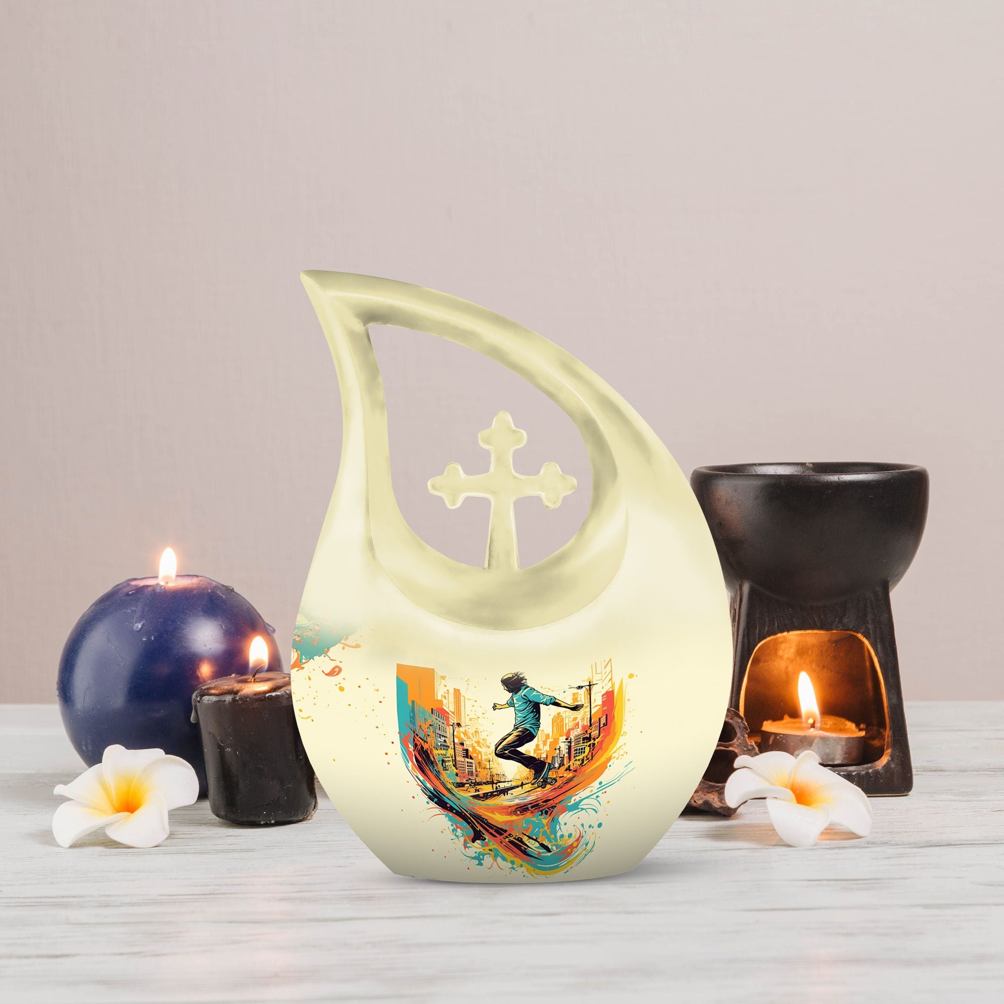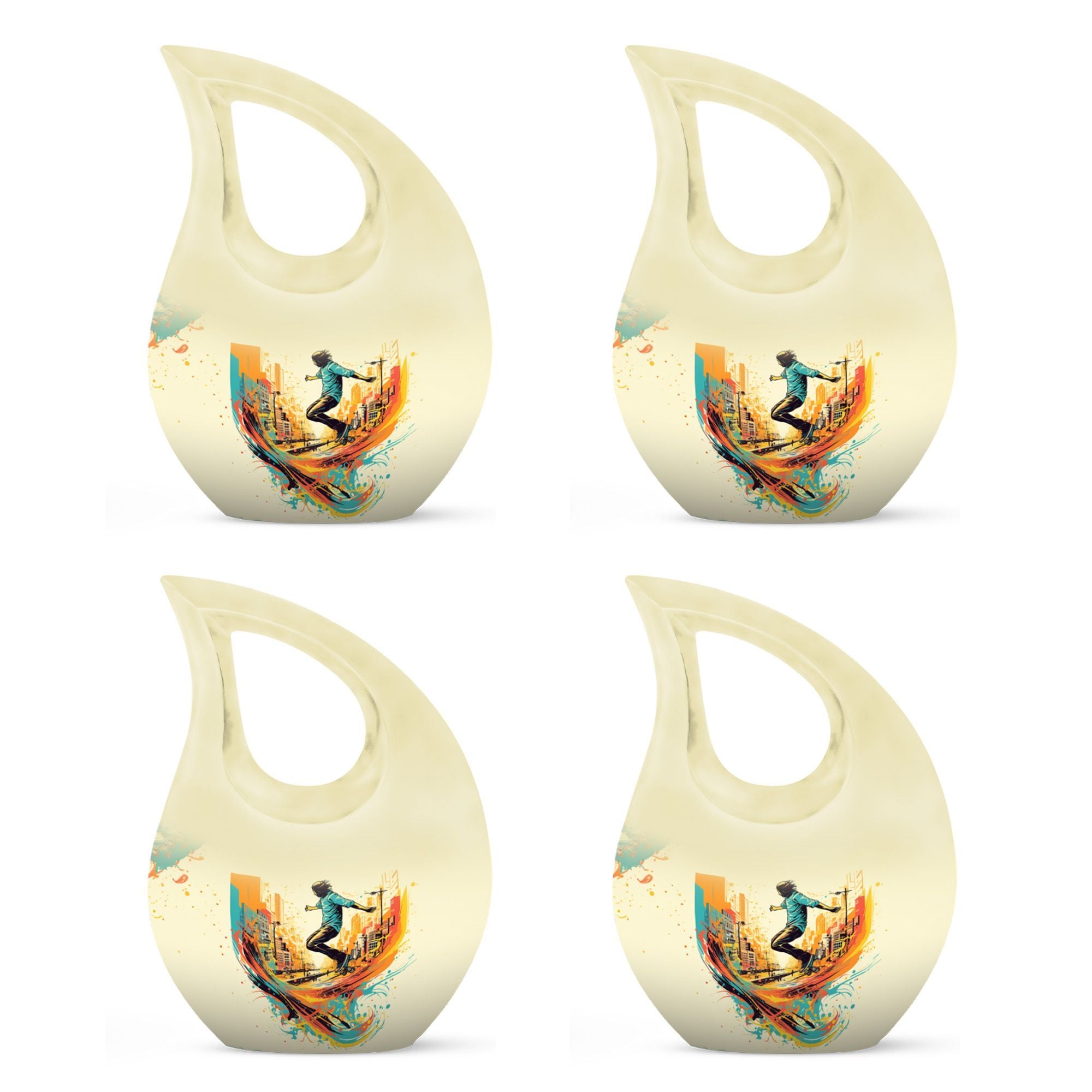 Crafted from premium aluminum, this colorful urn for funeral features a dynamic roller-skating–themed design symbolizing freedom, energy, and artistic expression. With a full 10-inch height and a 200-cubic-inch capacity, it functions beautifully as an urn human ashes large or large urn human ashes option. The secure screw-top lid ensures safe keeping, while its vivid artwork makes it ideal for families seeking a large decorative urn for human ashes, an urn mom ashes large, or an urn large adult memorial. It also supports the needs of families looking for urn for ashes for women, small urn for ashes for women, cremation urns for women, urn for ashes for women small, and matching keepsake urns for women for shared remembrance.