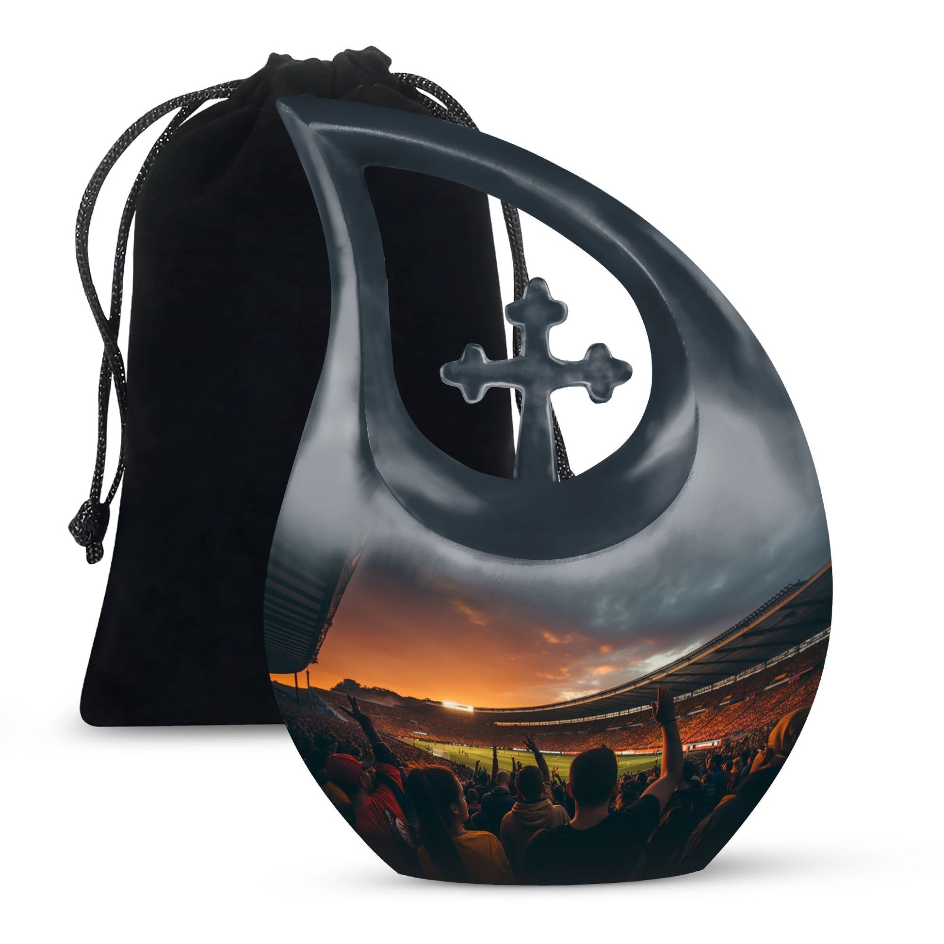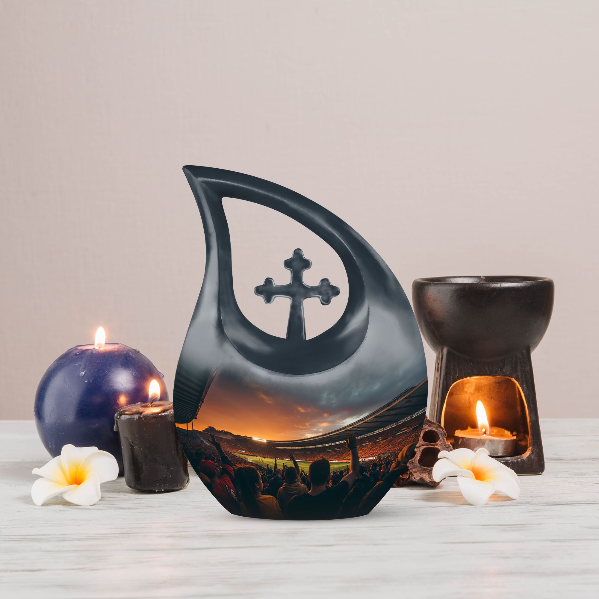 This urn also serves families seeking cremation urn human ash, cremation urns for human ashes adult black, and other adult memorial preferences. Its design symbolizes passion, strength, and cherished memories that continue to echo long after the final whistle.