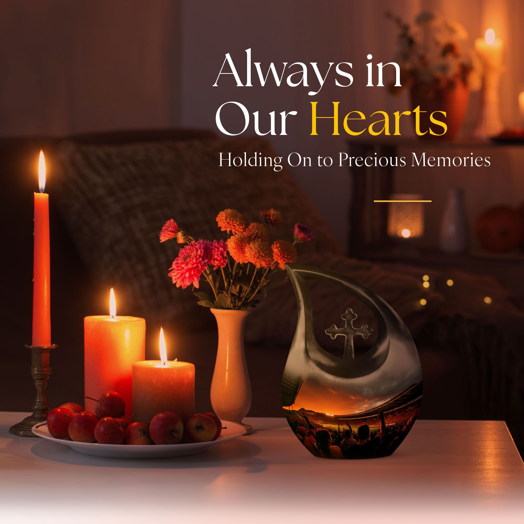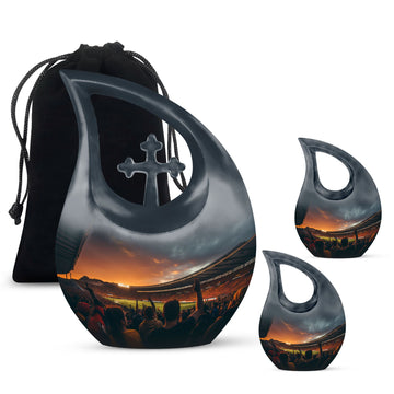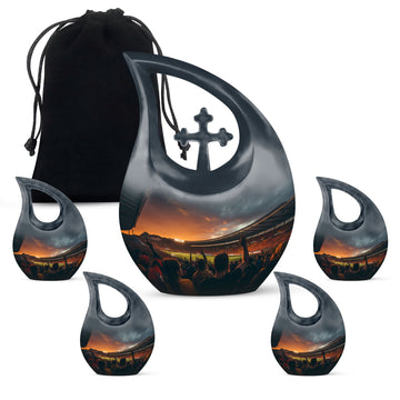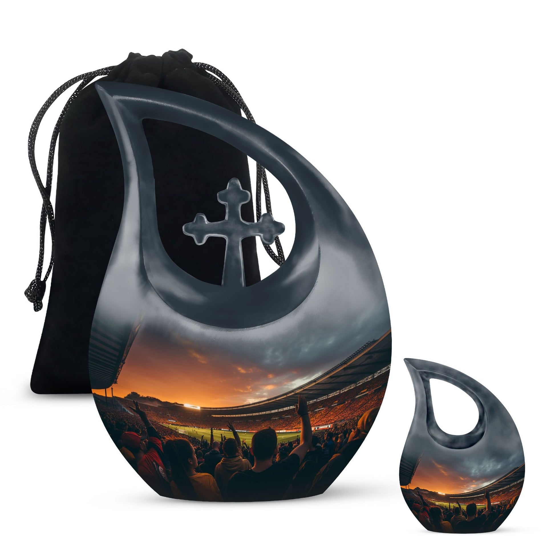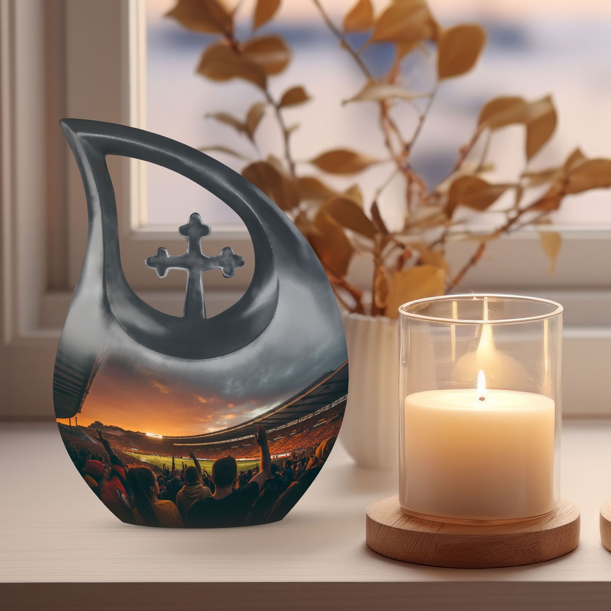 Crafted from durable aluminum, this urn features a powerful stadium-inspired design—symbolizing unity, teamwork, and unforgettable moments shared. With a 10-inch height and a 200-cubic-inch capacity, it is suitable for adult ashes and is compatible with both home memorial display and burial needs. Whether you're looking for a cremation urn for humans, cremation urn ashes, or a versatile option paired with cremation urn for ashes small or cremation urns for adult ashes small, this piece ensures long-lasting security through its screw-top lid.