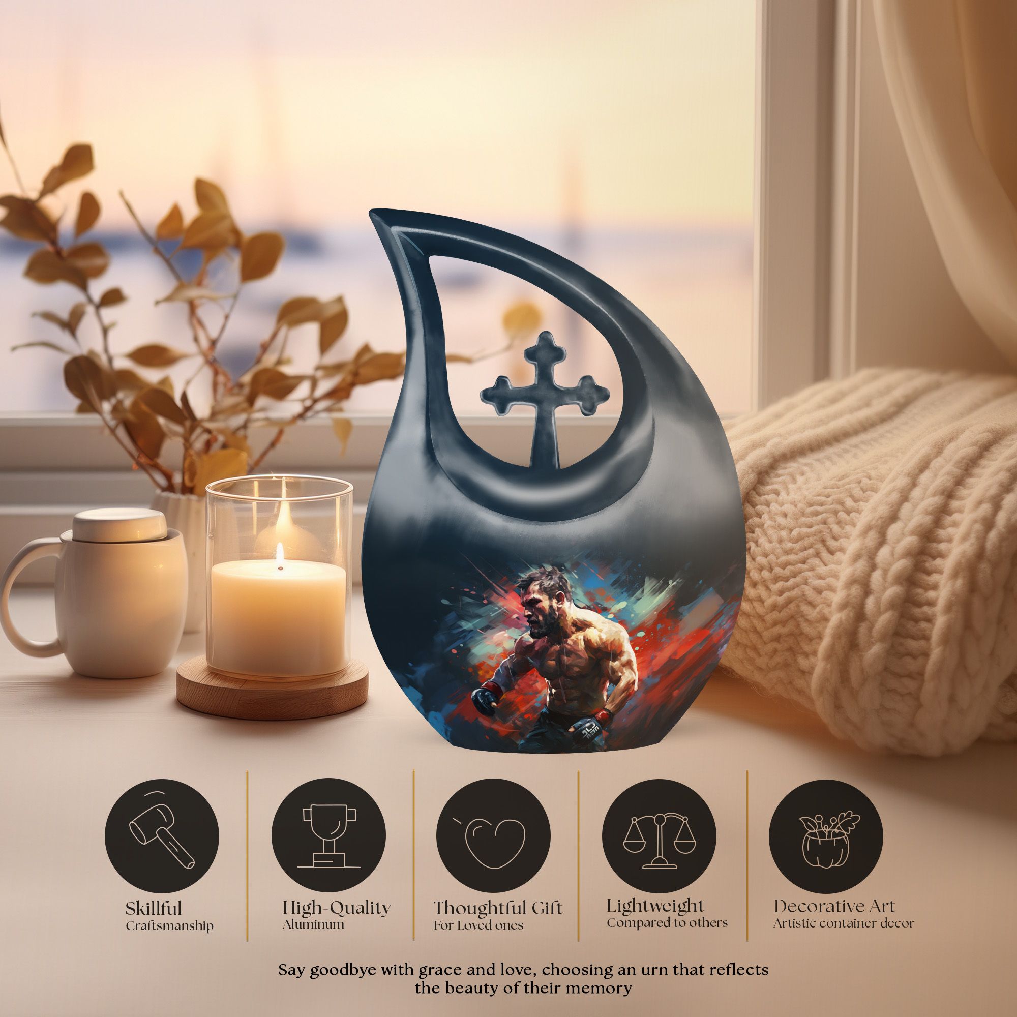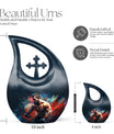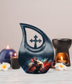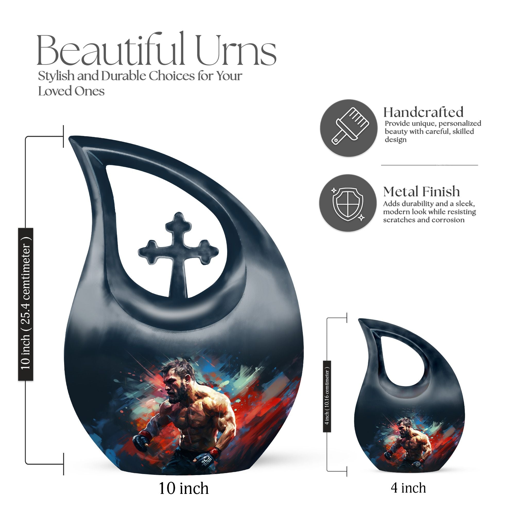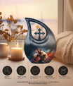 Cherish the memories of an athletic soul with our Sports Urn, impressively designed in a 10-inch aluminium Cross Drop style. This large urn's weight is just 3.3 pounds yet it can securely contain up to 200 cubic inches of ashes. This Biodegradable Urn is a sustainable choice, reducing your environmental impact while paying homage to your loved ones' spirit. It comes with a velvet pouch enhancing safe containment of the ashes. Add a personal touch to it with our customization option; engrave the names, making it an exclusive memorial. This unique urn effortlessly blends elegance and remembrance making it the perfect choice for those seeking memorial urns. Besides sports fans, our urn fits the keywords 'Personalized Urns For Ashes', 'Ashes Container Small', 'Urns For 2 Human Ashes', 'Engraved Urns For Human Ashes'.