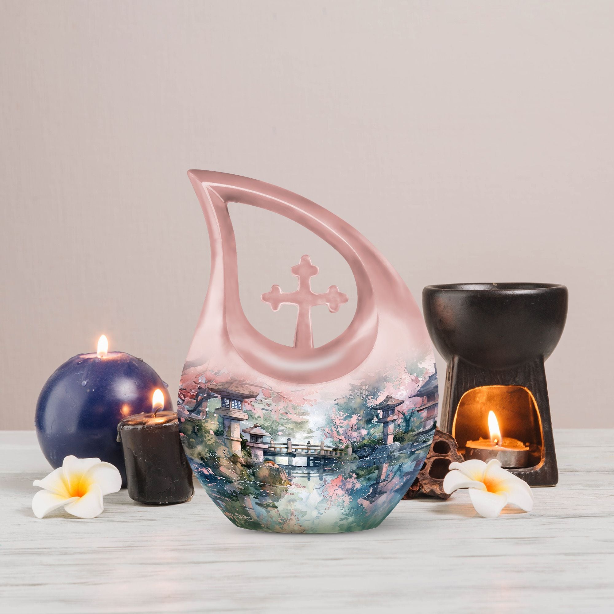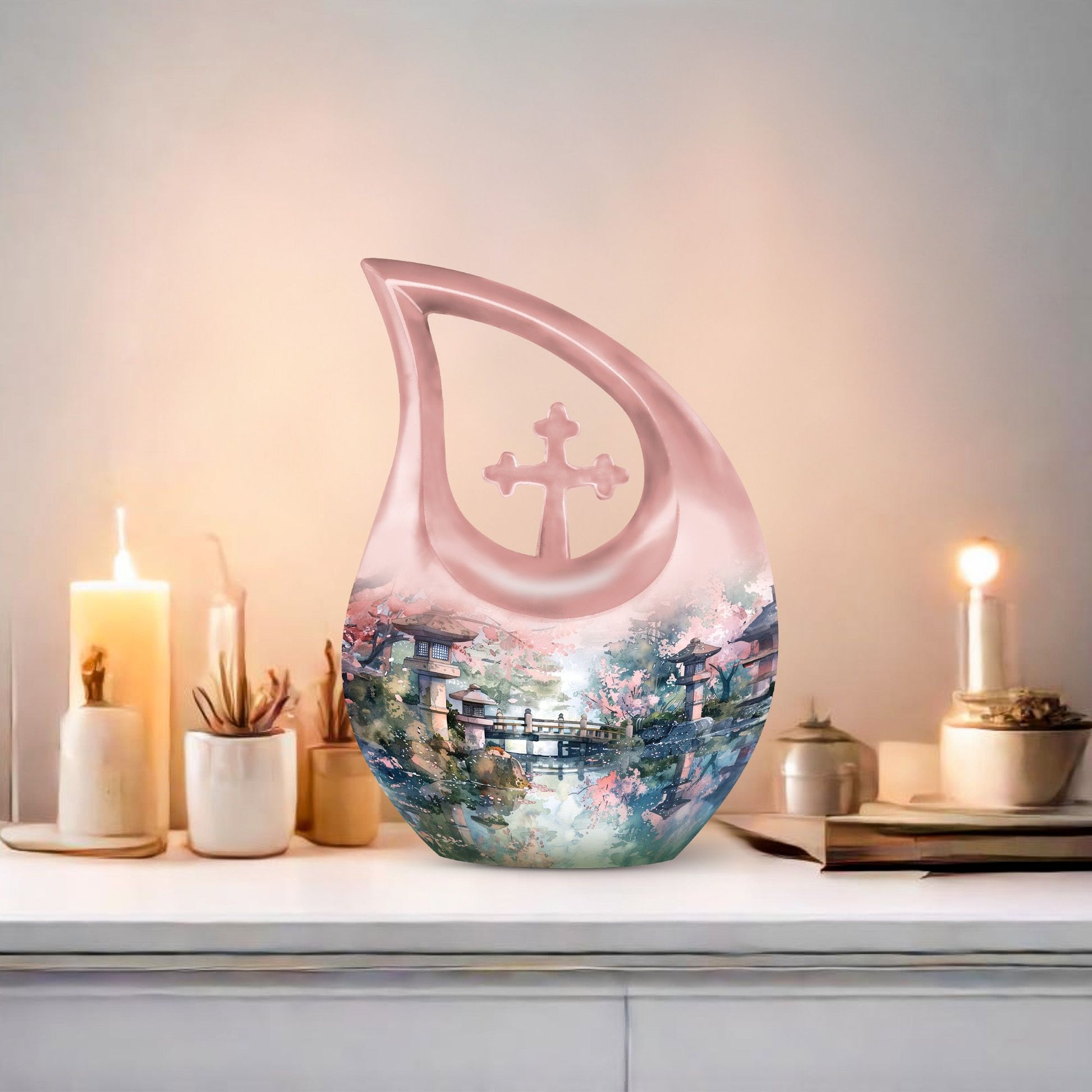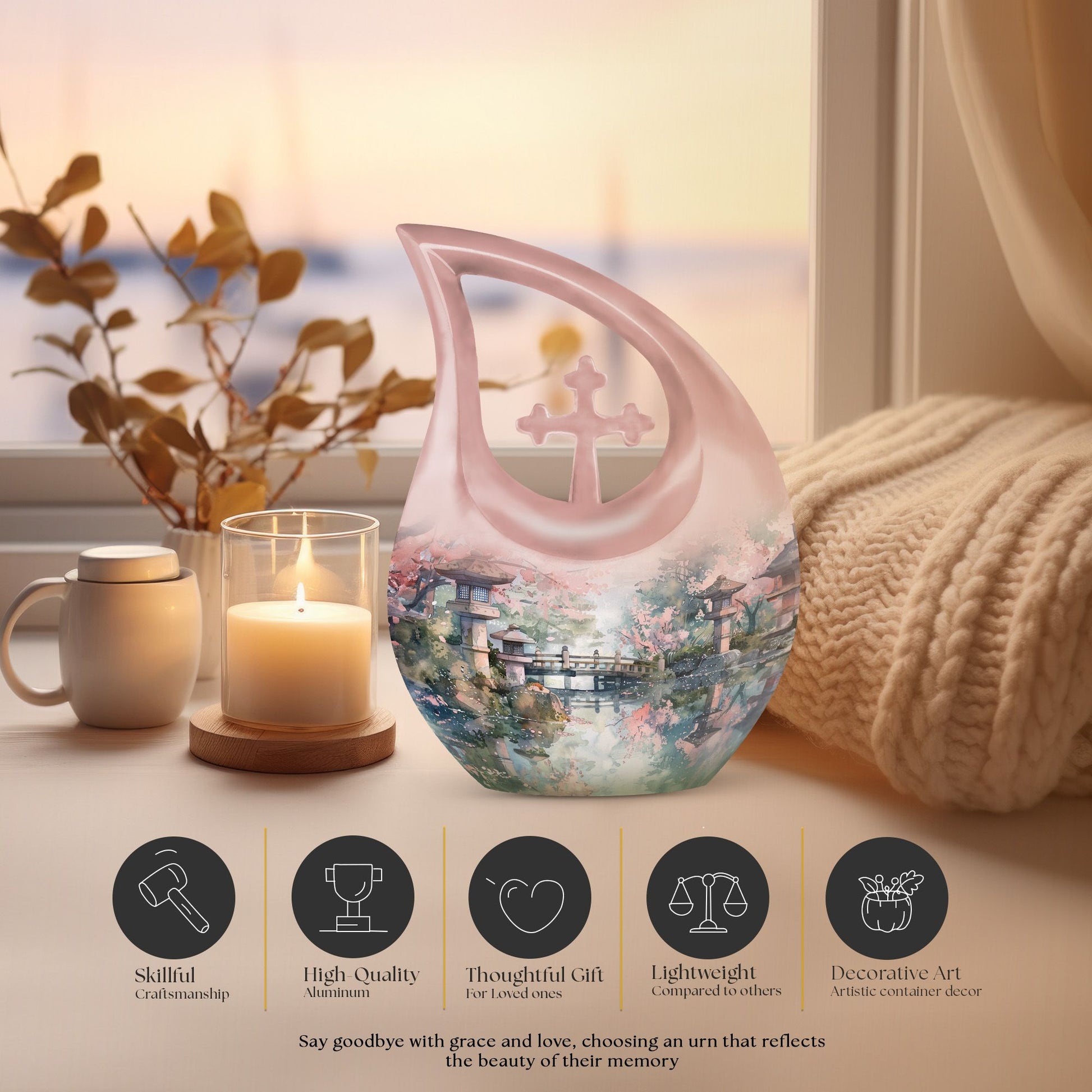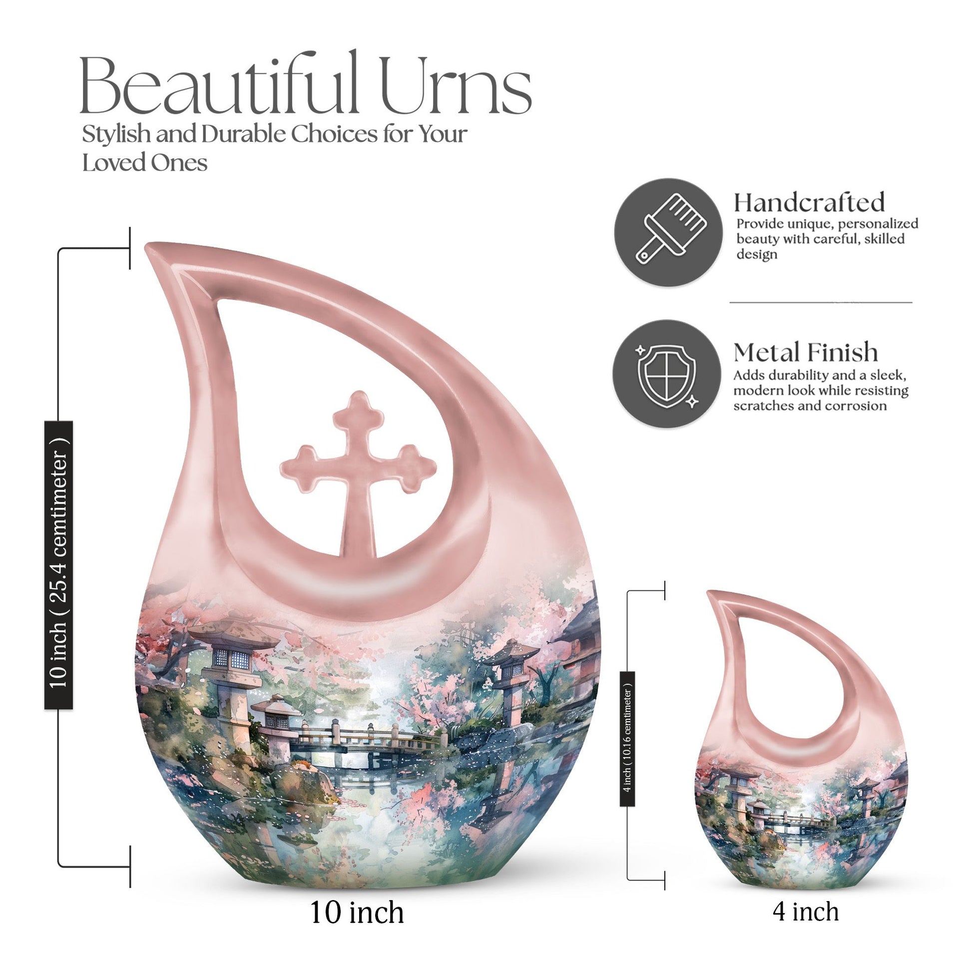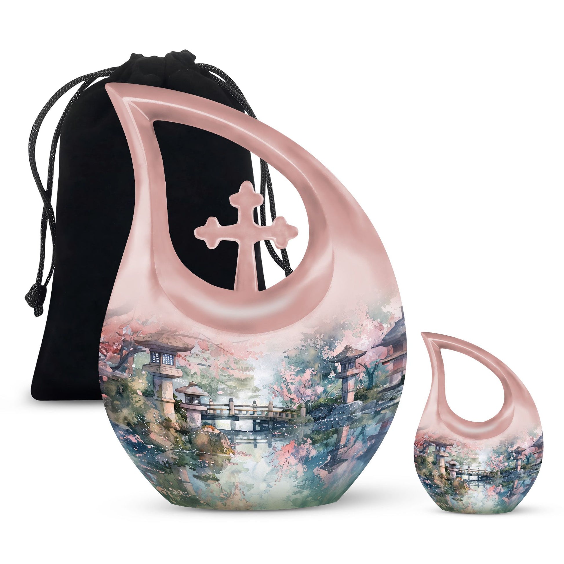 Experience the tranquility of Spring Whispering By with our meticulously crafted Memorial Urn, designed to pay a beautiful tribute to your loved ones. This Large Urn, measuring a generous 10 inches in height, is expertly forged from robust aluminium, creating a durable yet aesthetically pleasing receptacle for cherished memories. Weighing a substantial 3.3 pounds, it offers a notable capacity of 200 cubic inches for containment. This tastefully designed Cross Drop urn is enclosed within a plush velvet pouch, adding a layer of protection and high-quality finish. Offering a personal touch to this eternal piece, we provide the opportunity to engrave names, enabling a special connection to be eternally etched. Explore our range of custom urns for human ashes to pick the one that echoes your sentiments the most. Our carefully curated urns are a gentle whisper of spring in the memory of those who have left us. Keywords: memorial urns, small urns for ashes, urns online, designer cremation urns.