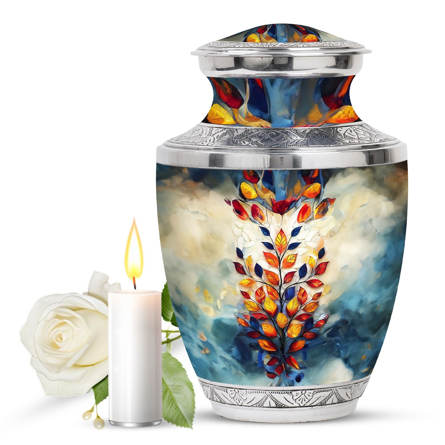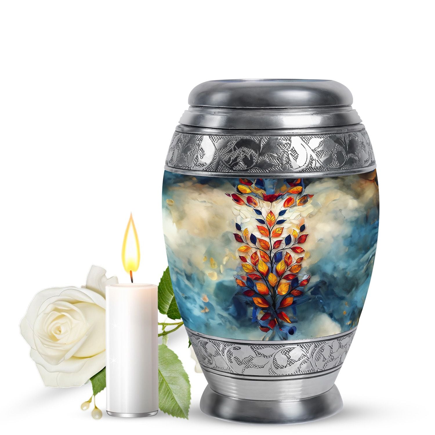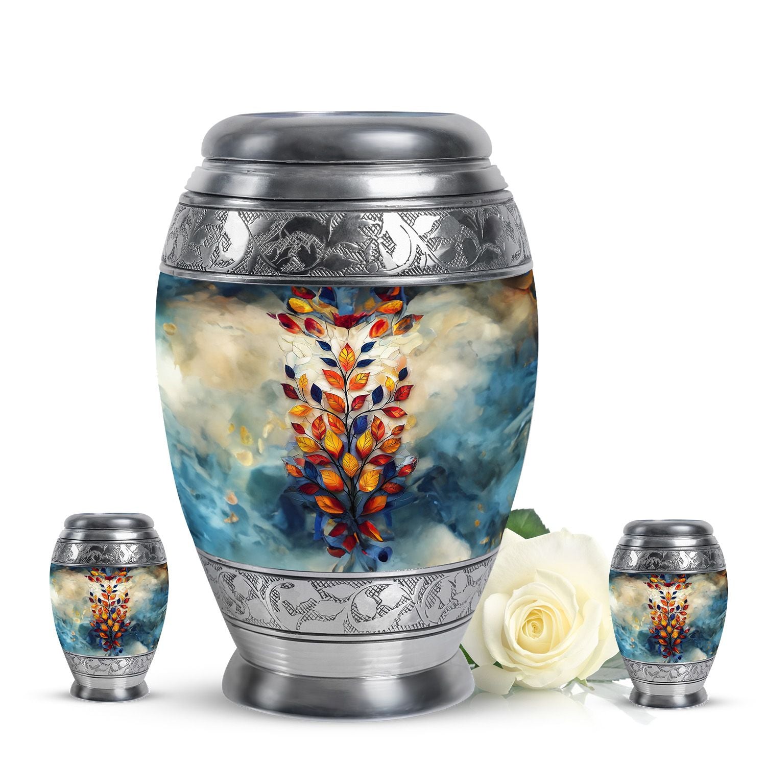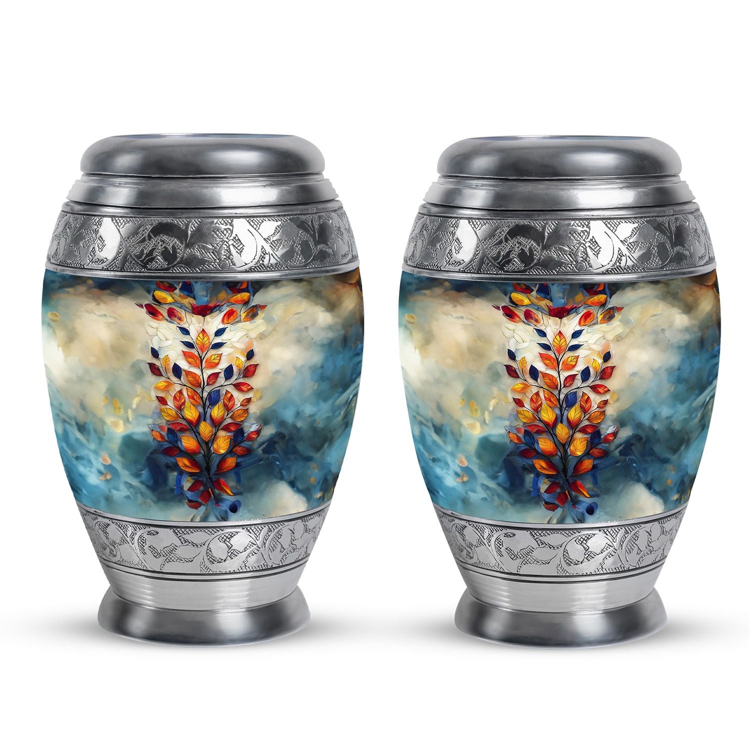 Crafted with durable aluminum and adorned with a stained glass-inspired design, these large cremation urns combine strength with elegance. The secure screw-top lids ensure ashes are kept safe while the radiant finish makes each piece a display-worthy memorial. Whether chosen as a large urn for ashes for women, urns for ashes adult male large, or large urn for human ashes, this set provides both functionality and heartfelt symbolism.