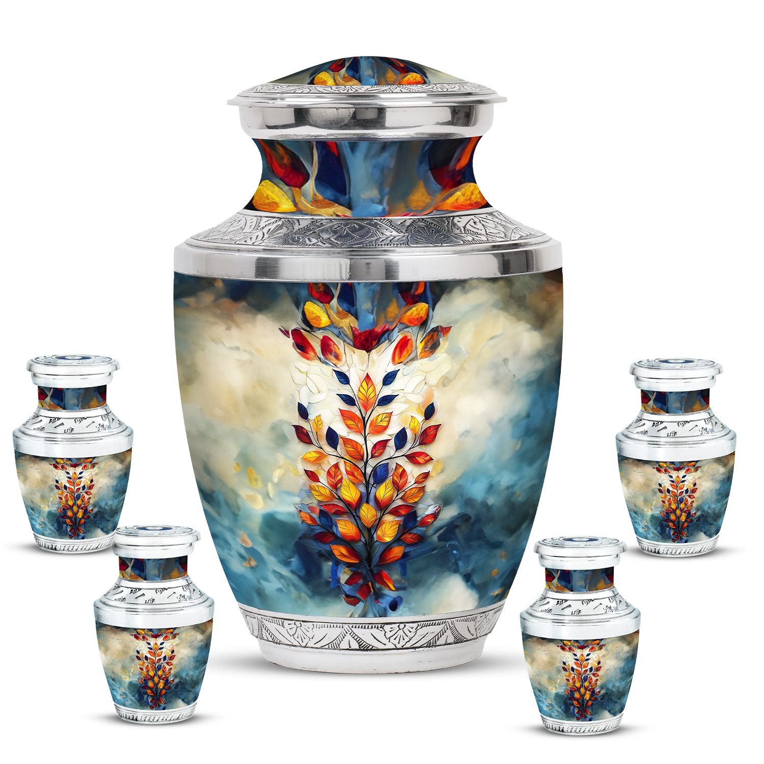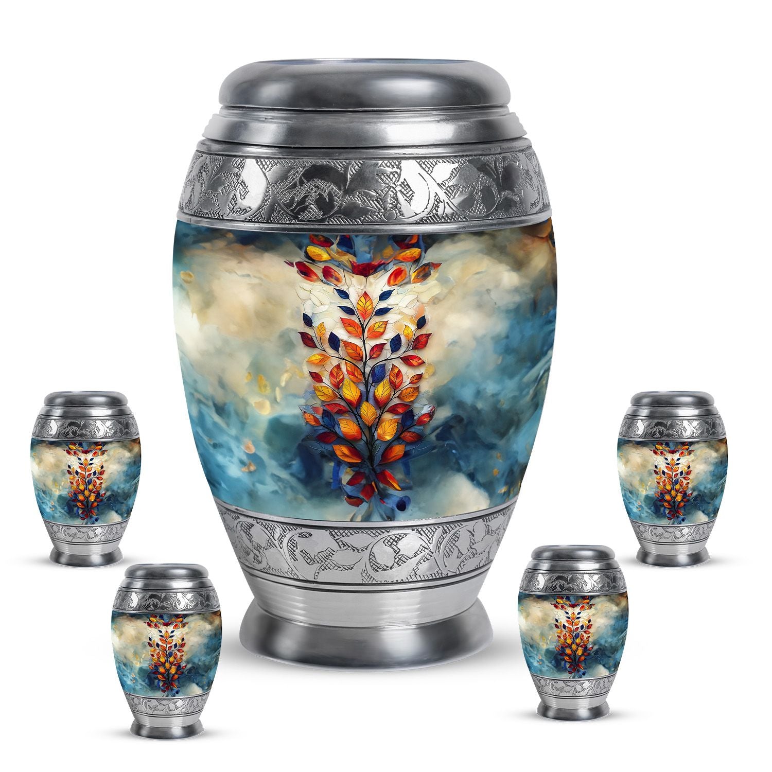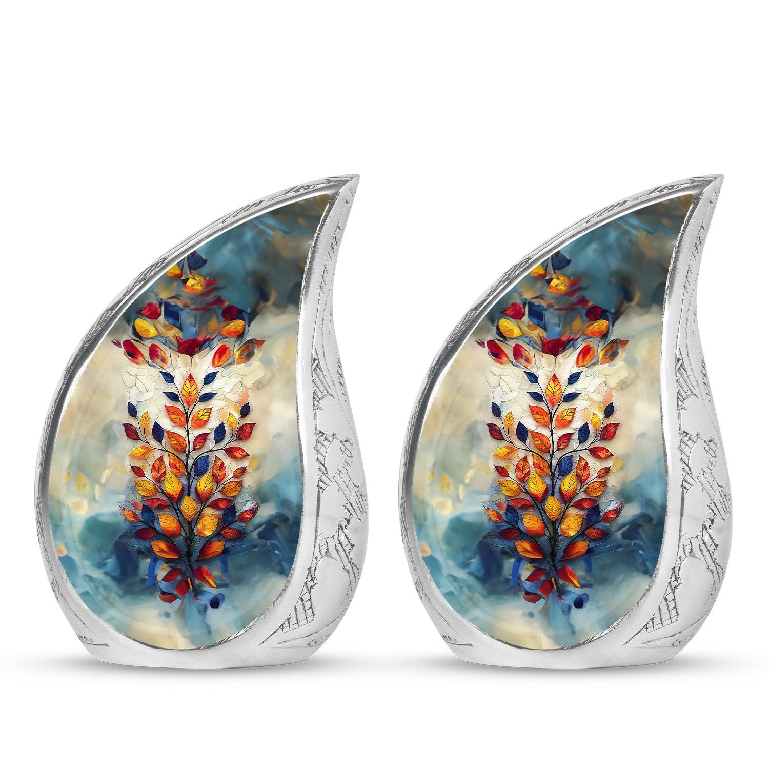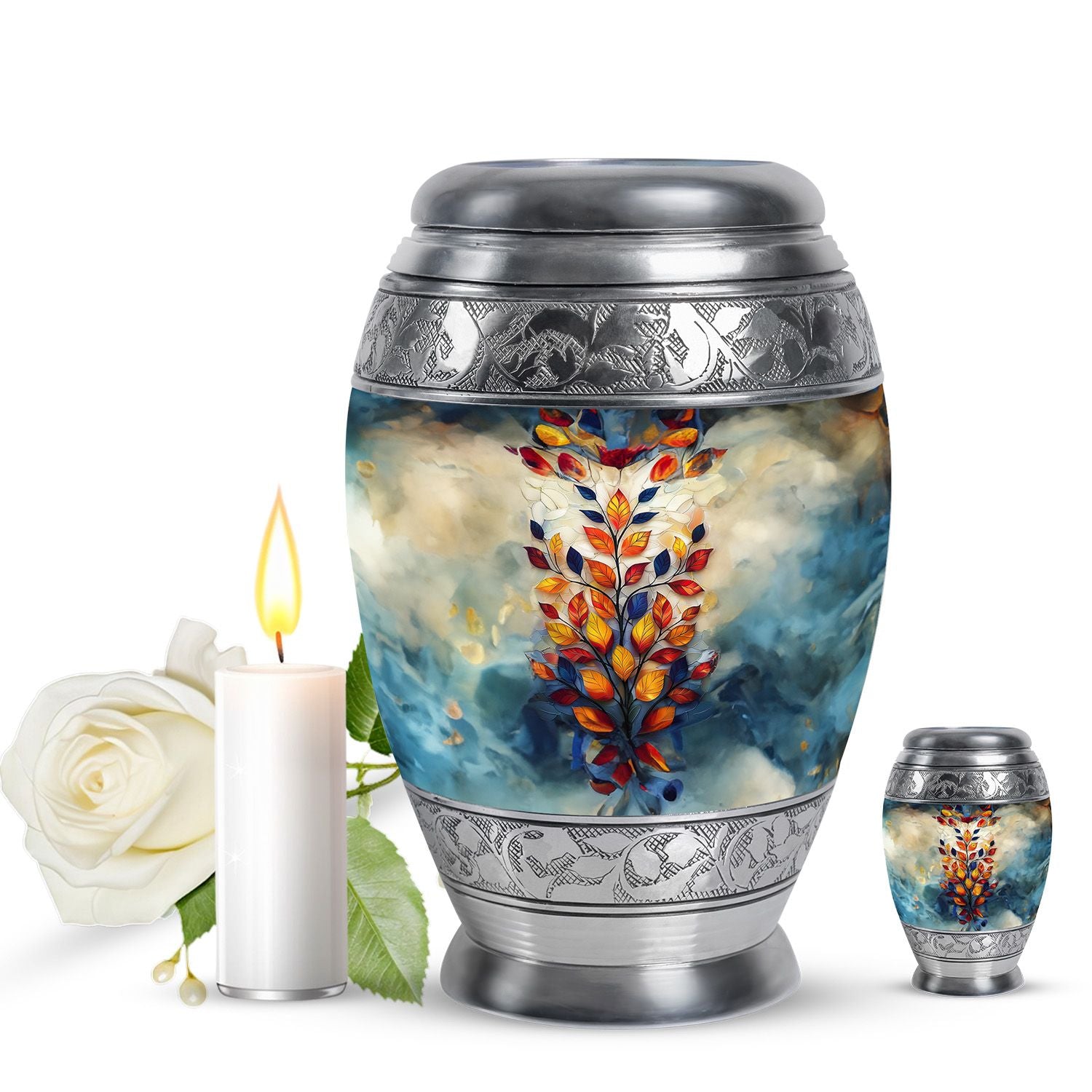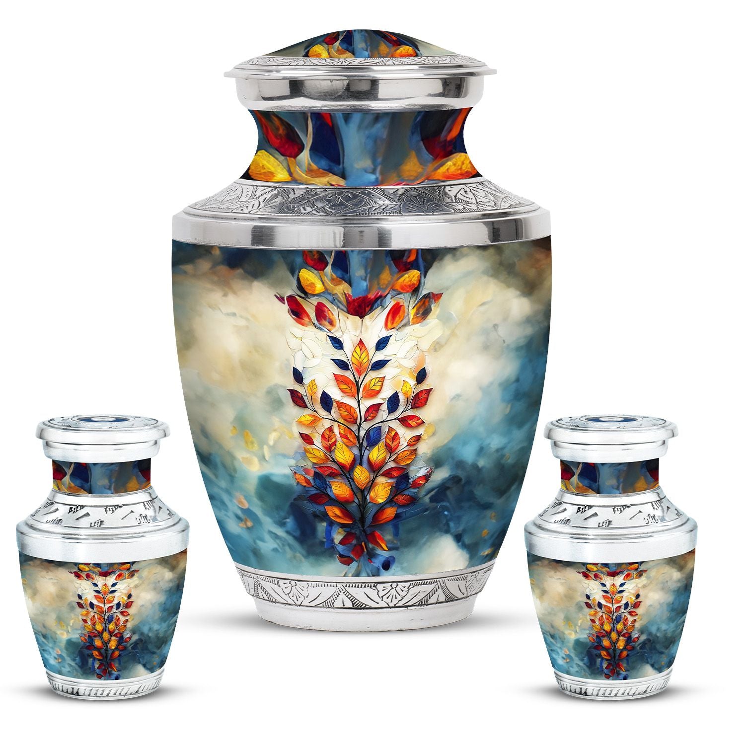 Crafted with durable aluminum and adorned with a stained glass-inspired design, these large cremation urns combine strength with elegance. The secure screw-top lids ensure ashes are kept safe while the radiant finish makes each piece a display-worthy memorial. Whether chosen as a large urn for ashes for women, urns for ashes adult male large, or large urn for human ashes, this set provides both functionality and heartfelt symbolism.