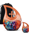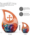 Crafted with meticulous detail, this adult cremation urn features a radiant stained-glass pattern that glows with hues of amber, blue, and gold. Made from high-quality aluminum, it’s both durable and refined, ideal for home display or ceremony use. Available as part of a cremation urns set or cremation ashes urns combo, it pairs beautifully with matching cremation mini urn keepsakes for family members to share in remembrance.