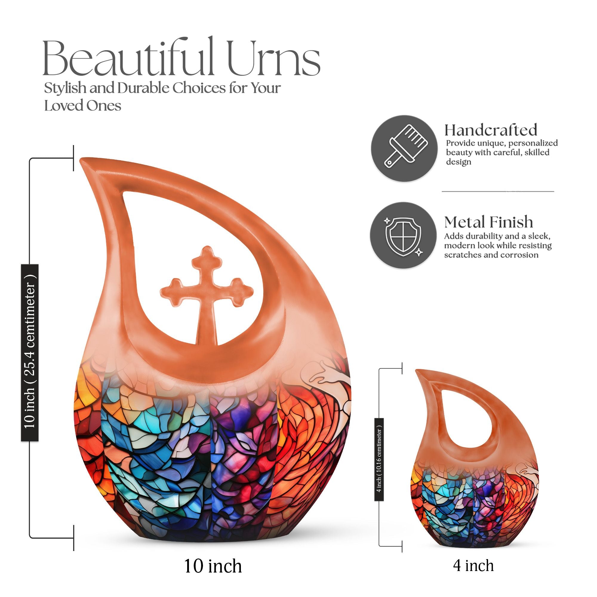 Honor a life filled with warmth, color, and compassion with the Stained Glass Cremation Urn for Human Ashes. This exquisite piece symbolizes love’s everlasting light, offering comfort and remembrance. Perfect as a cremation urn for adult or part of a cremation urns for adults collection, it serves as a timeless memorial that celebrates beauty, spirit, and peace.