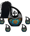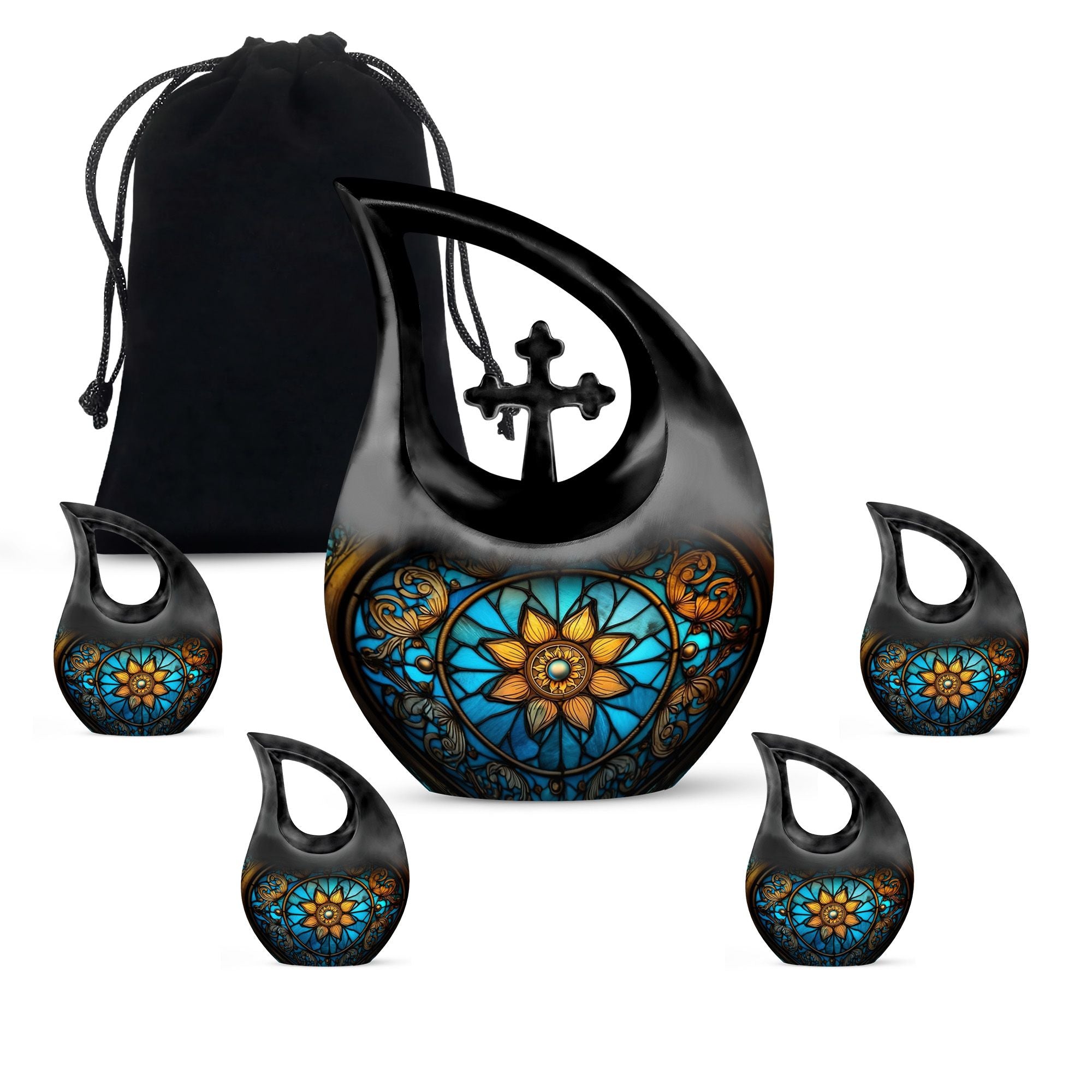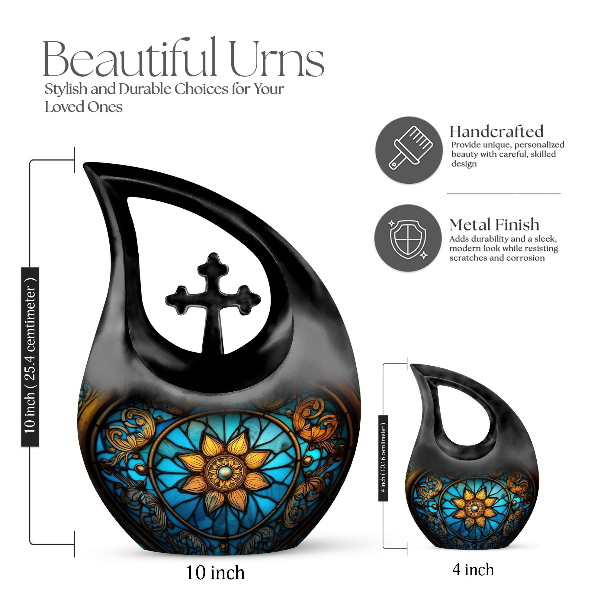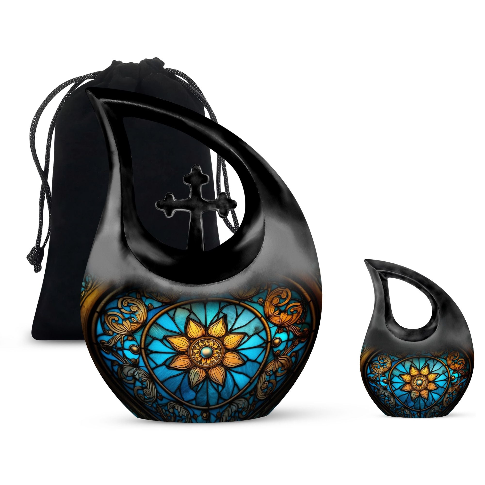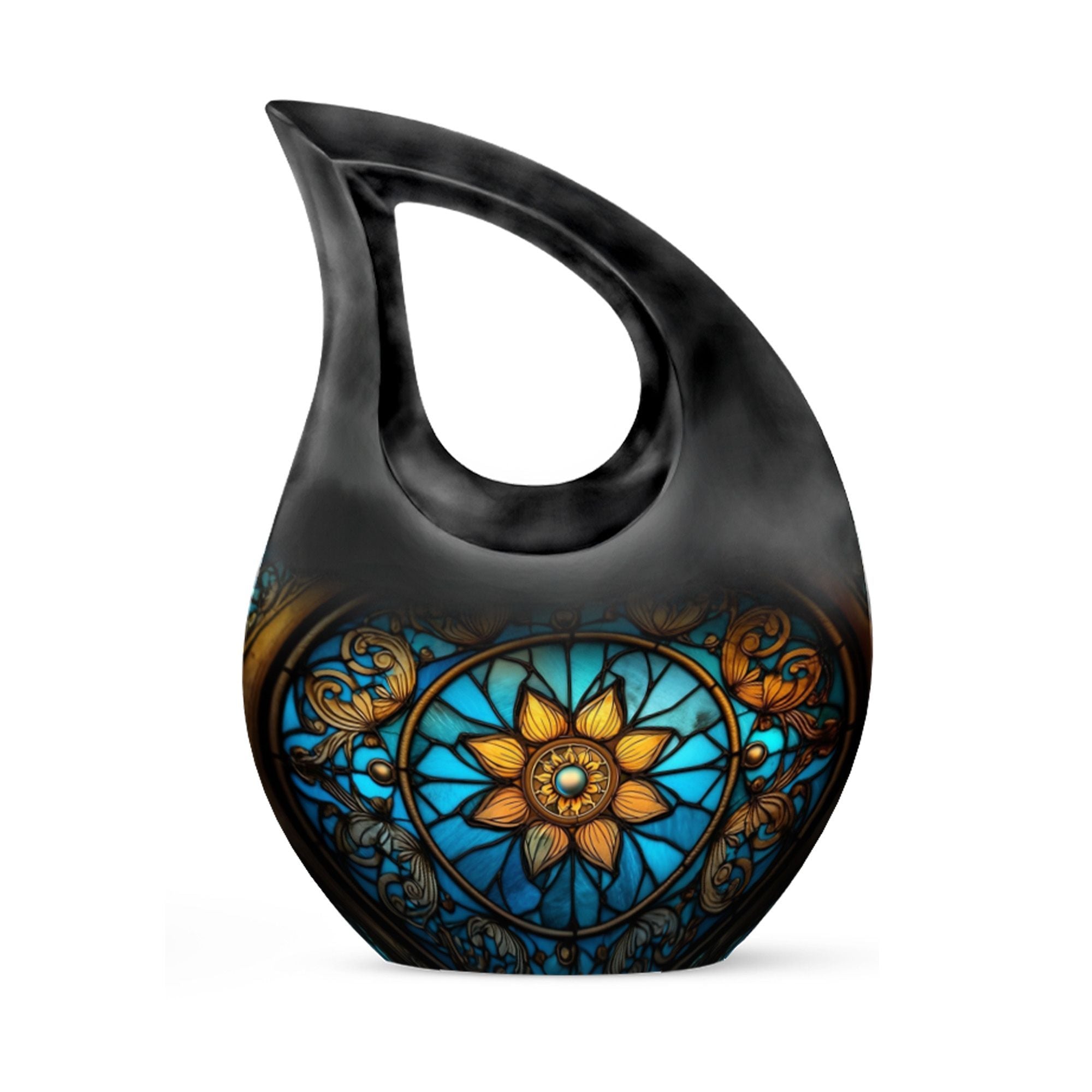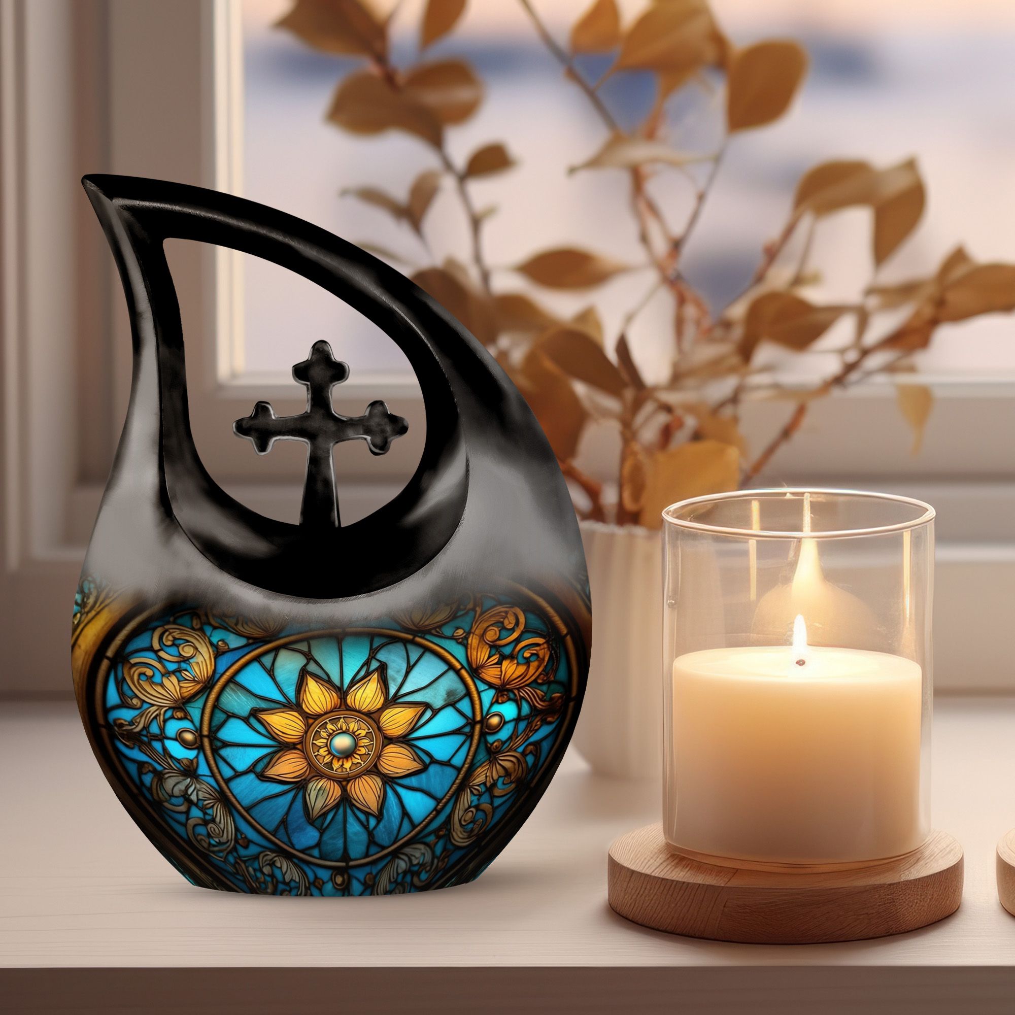 Crafted with luminous stained-glass–inspired artistry, this adult funeral urn balances beauty with lasting strength. Its secure construction makes it ideal for adult funeral urns displayed at home, in a memorial niche, or as urns for burial in ground. A timeless choice for those seeking unique urns for human ashes or unique urns for ashes, this piece offers both elegance and dependable protection. Its spacious interior ensures it meets the needs of families looking for a high-quality adult funeral urn.