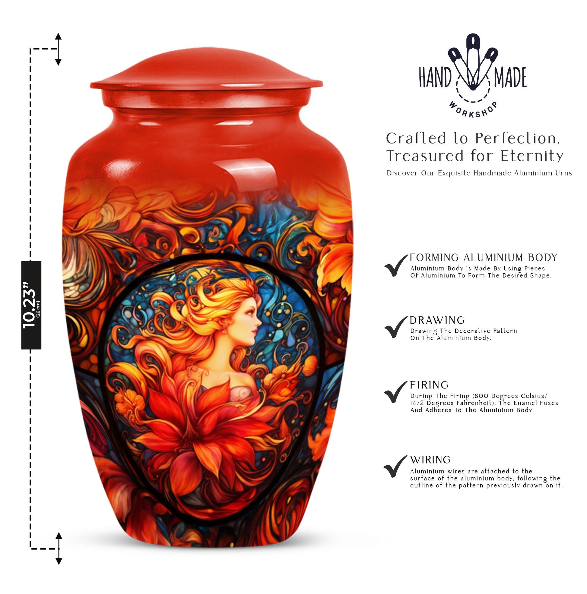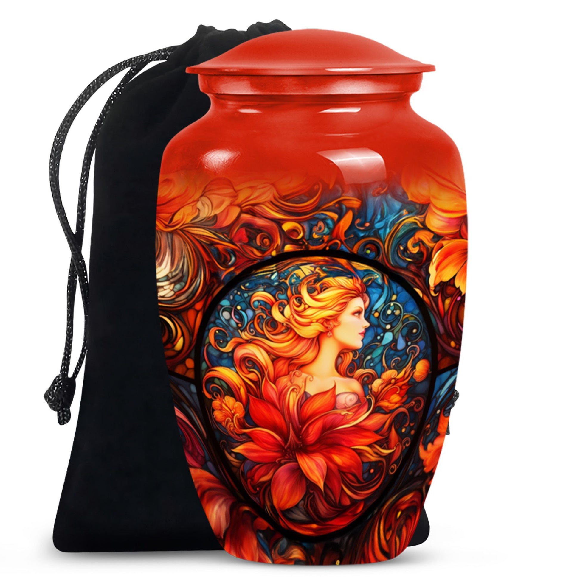 Handcrafted with care, this urn features stained glass-inspired detailing that radiates beauty and light, symbolizing the lasting spirit of your loved one. Its durable aluminum build ensures strength and longevity, making it suitable as an urn for burial in ground. With a secure screw-top lid, it provides peace of mind while serving as one of the most reliable burial urns for human ashes. Whether chosen for display or for cremation urns for burial, this urn balances elegance with practicality.