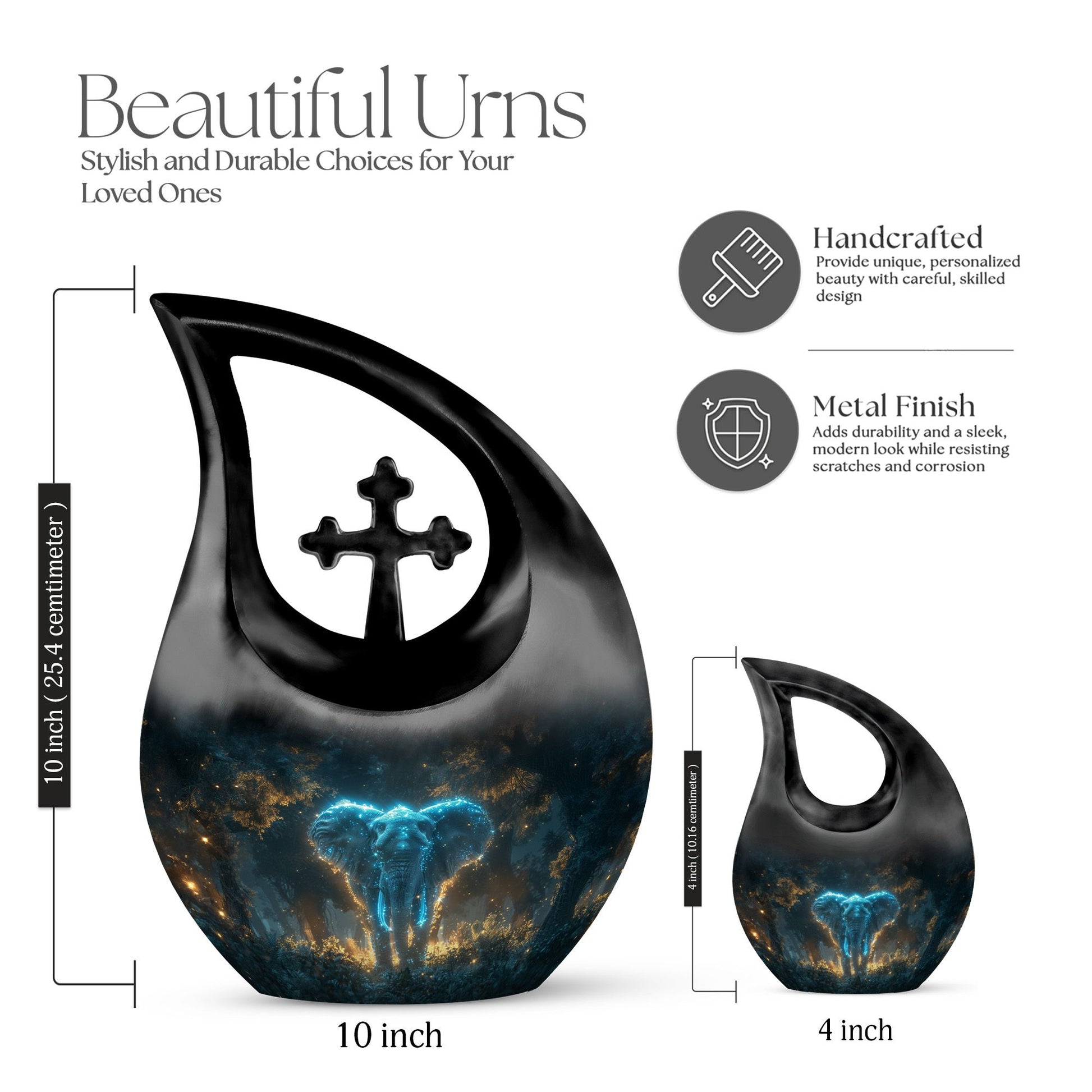 Introducing the awe-inspiring 'Stardust Forest Giant Urn,' a remarkable item in the field of memorial but simple urns for human ashes. Standing dignified at 10 inches, this symbol of regard for your loved ones is majestically crafted from durable aluminium. Its weight of 3.3 pounds reflects its high-quality composition and the respect it commands. The prominent Stardust Forest Giant motif serves as a generous tribute, and its Cross Drop configuration infuses an additional touch of tranquility and solemnity. With a considerable capacity of 200 cubic inches, this large urn firmly accommodates the cremation remains, ensuring your loved ones rest in peace with dignity. We understand the essence of personal touch, and hence, offer customization options where names can be elegantly engraved on the urn. The urn arrives with a classy velvet pouch, facilitating the careful containment of the ashes. Appreciate the memories and honour your dearly departed with this meticulous piece. Kindly note, 'Cremation Urns For Sale, Urns For Mom' are standout terms denoting our collection.