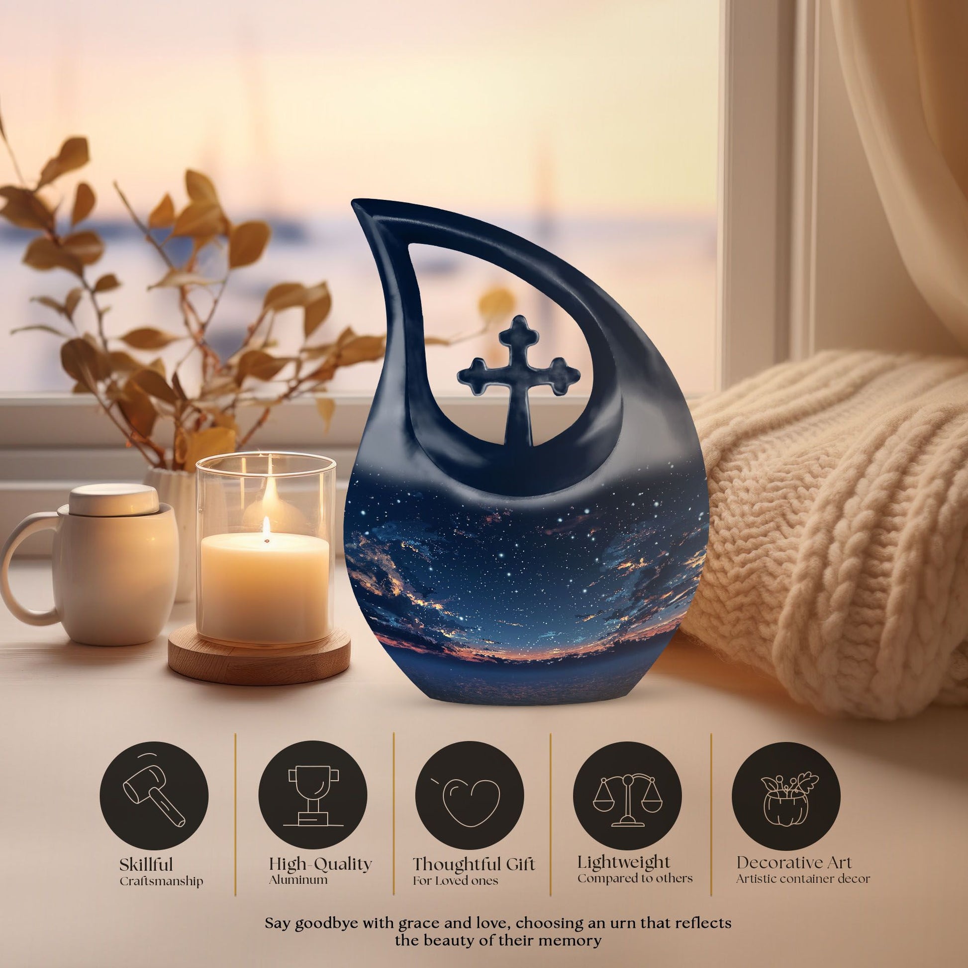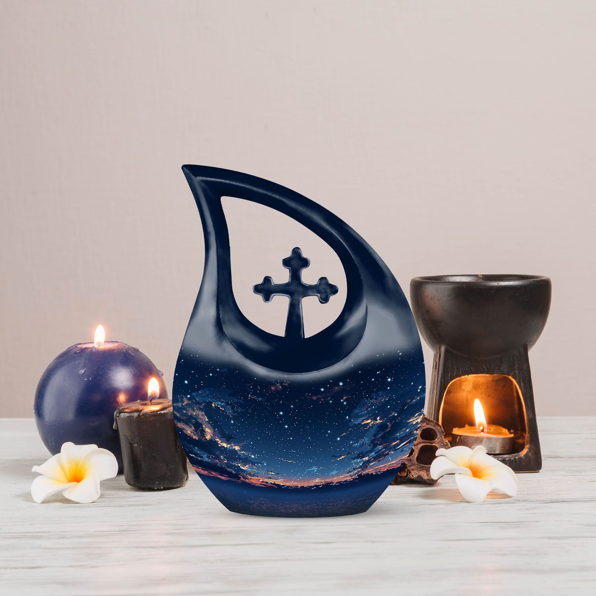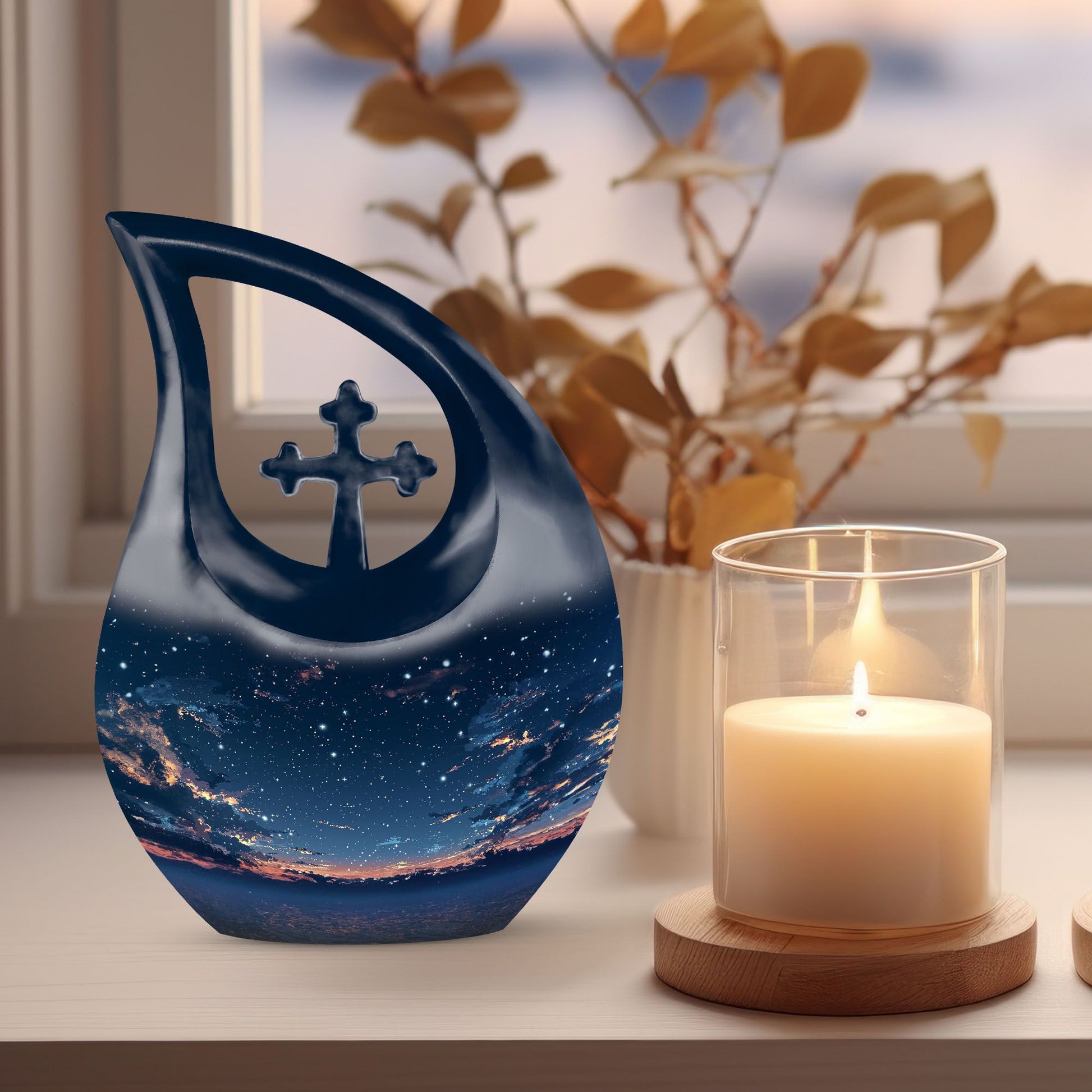 Honor cherished memories with this Starry Night Cremation Urn, thoughtfully designed to bring comfort and serenity while holding your loved one’s ashes. This piece offers a peaceful resting place and works beautifully as an urn mom ashes large, cremation urns for women, or a dignified memorial choice for men.