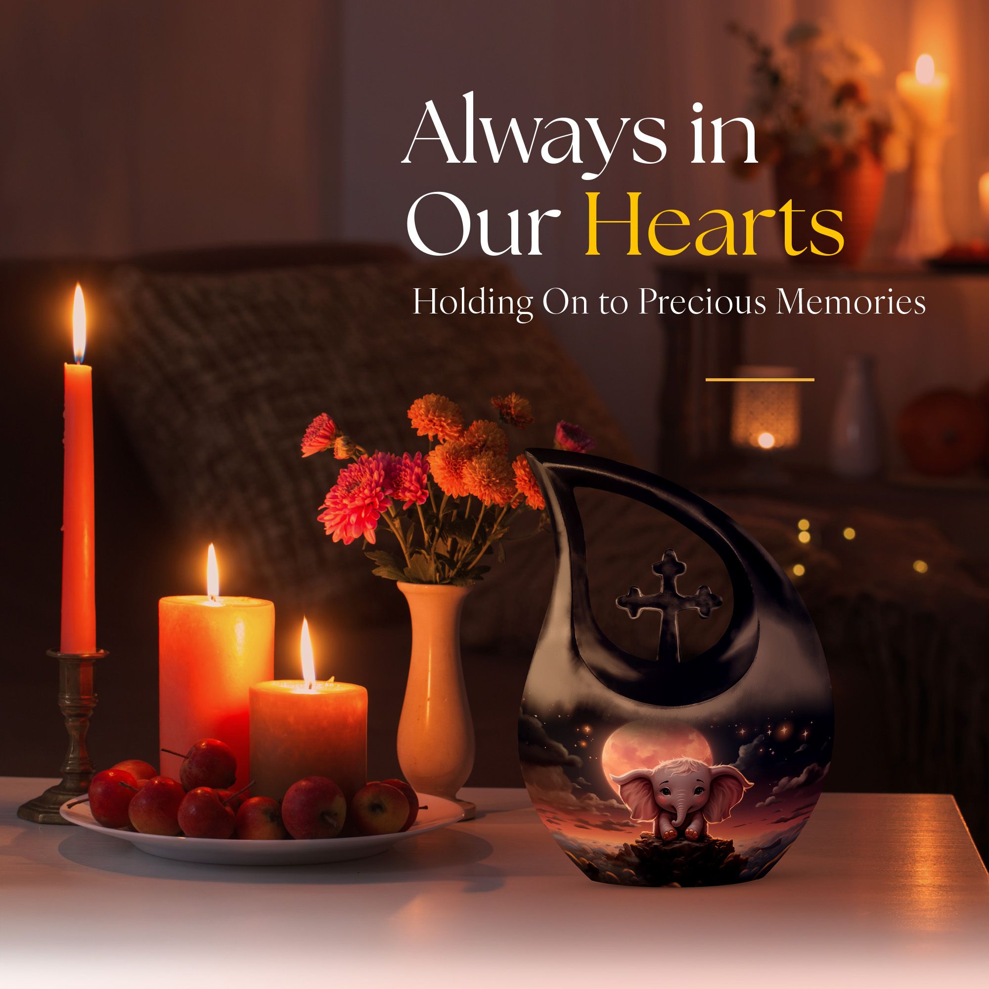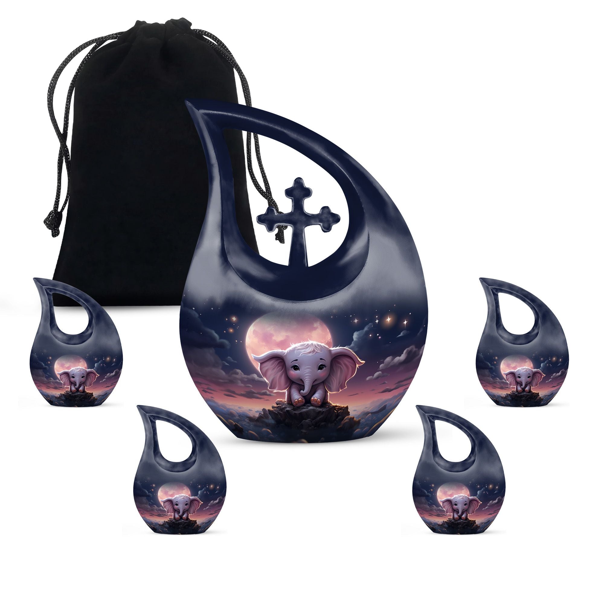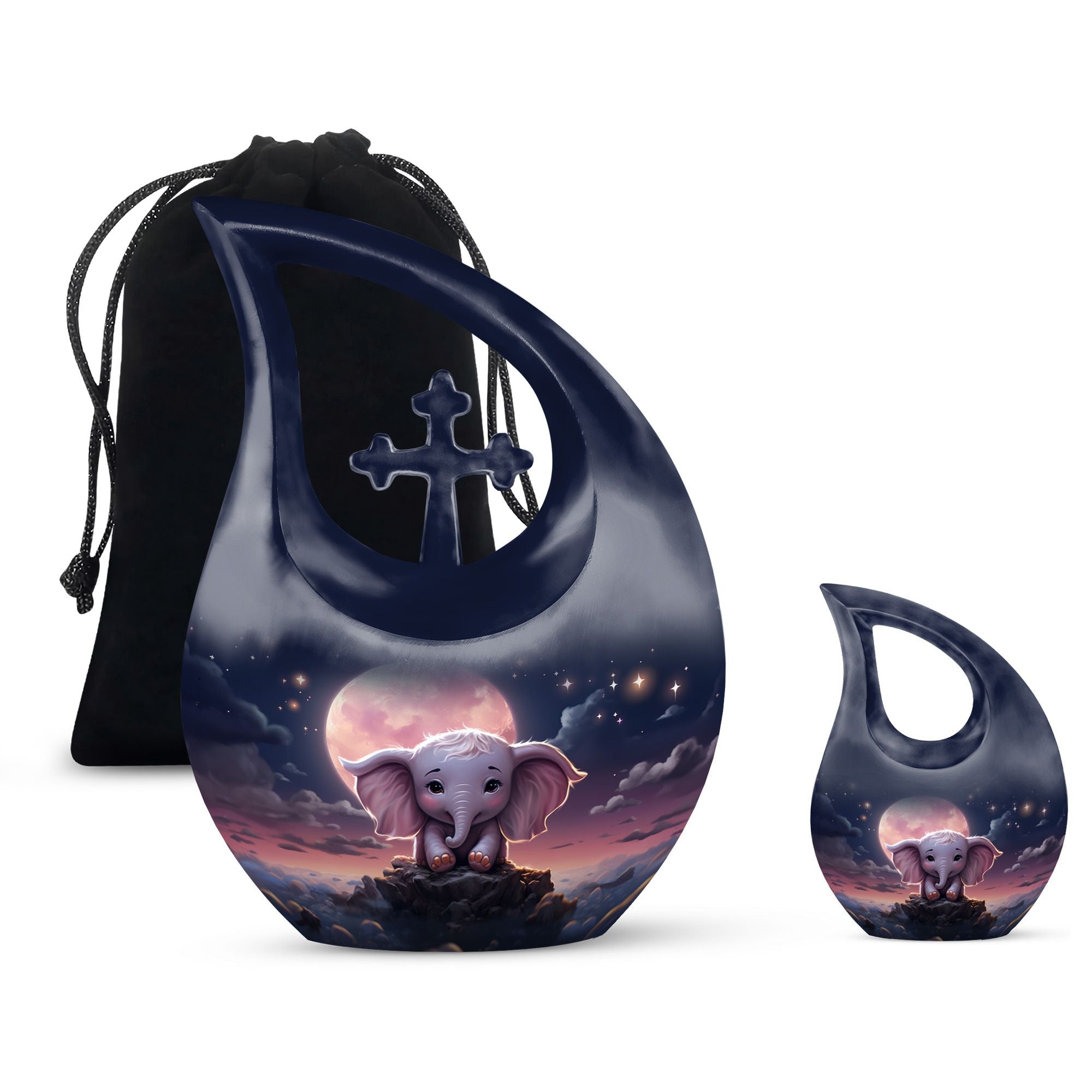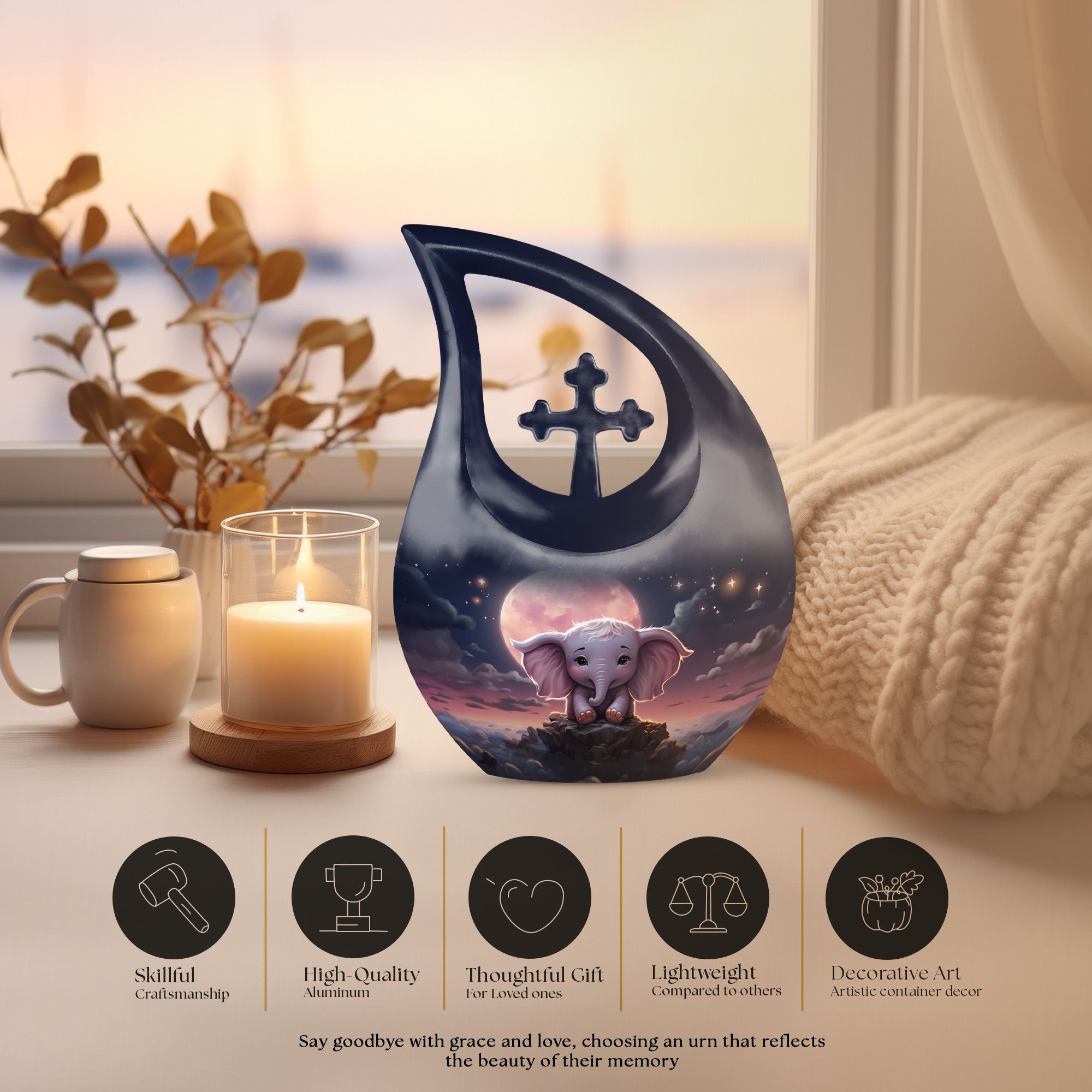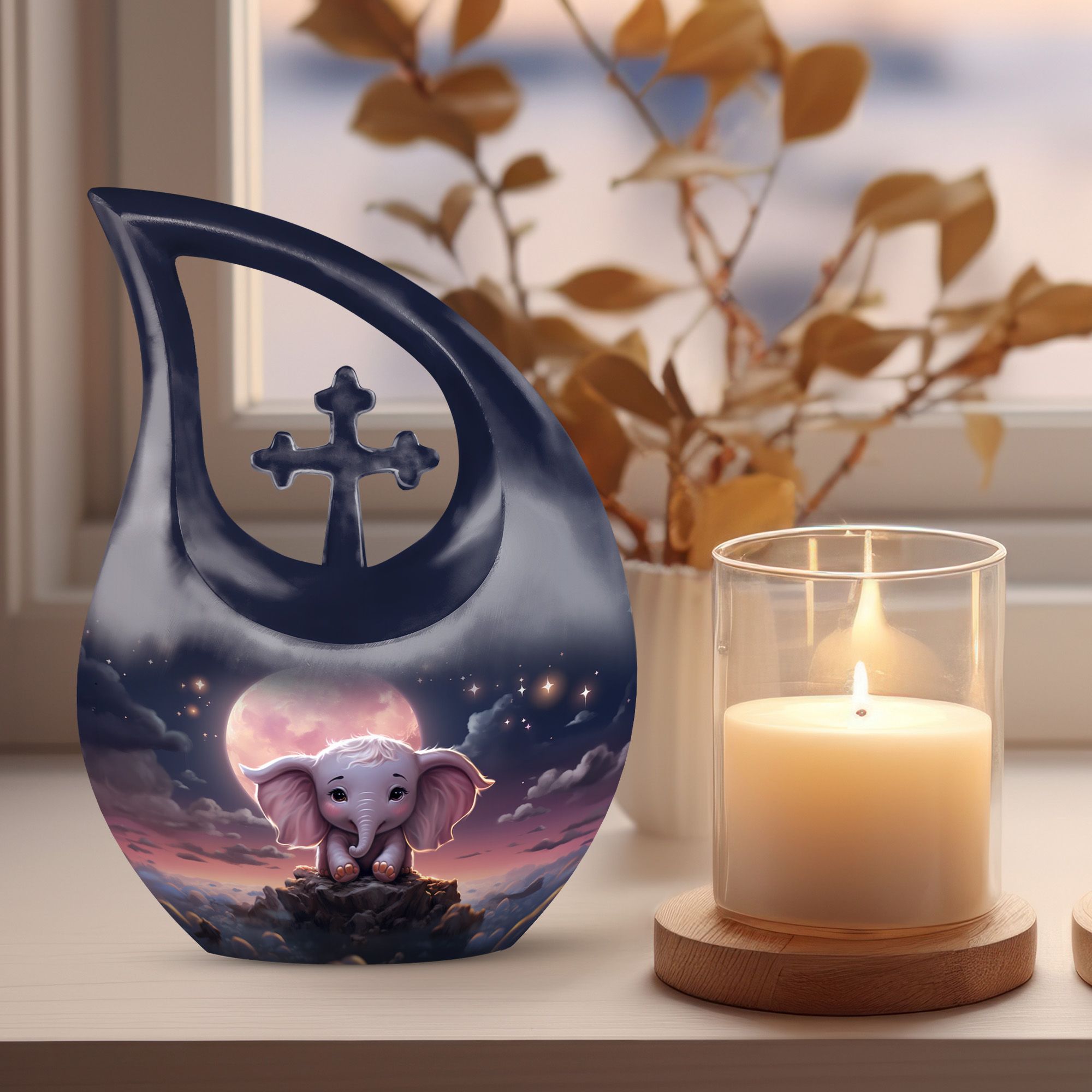 Experience the serene embrace of the Starry Night Dreamer Urn, an exquisite symbol of tranquility and enduring spiritual bond. This distinguished memorial urn, measuring a majestic 10 inches in height, is adorned with the tranquil Cross Drop theme, painting a sacred respite to heed the call of the everlasting journey. Crafted meticulously from robust Aluminium, this large urn weighs 3.3 pounds and has a capacity of 200 cubic inches, can comfortably hold the ashes of your beloved. The urn comes with an additional velvet pouch, offering a dignified containment of ashes. Personalize your tribute with the custom option of engraved names, transforming this urn into a unique memorial. Ideal for adults and seniors, this urn seamlessly fits into the Religious & Ceremonial Memorial Ceremony Supplies category. Primary keywords related to this product include 'Starry Night Dreamer Urn', 'Companion Urns', and other secondary keywords are 'Keepsake Cremation Urns', 'Religious Urns', 'Urns that can be buried', 'Funeral Urns for Sale'. This urn crafts a visual narrative of sublime peace and resilience, honoring your loved one in an unspoken language of reverence.