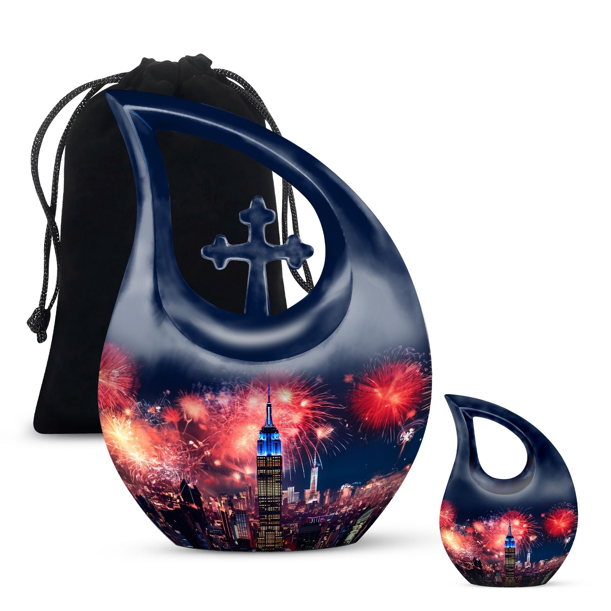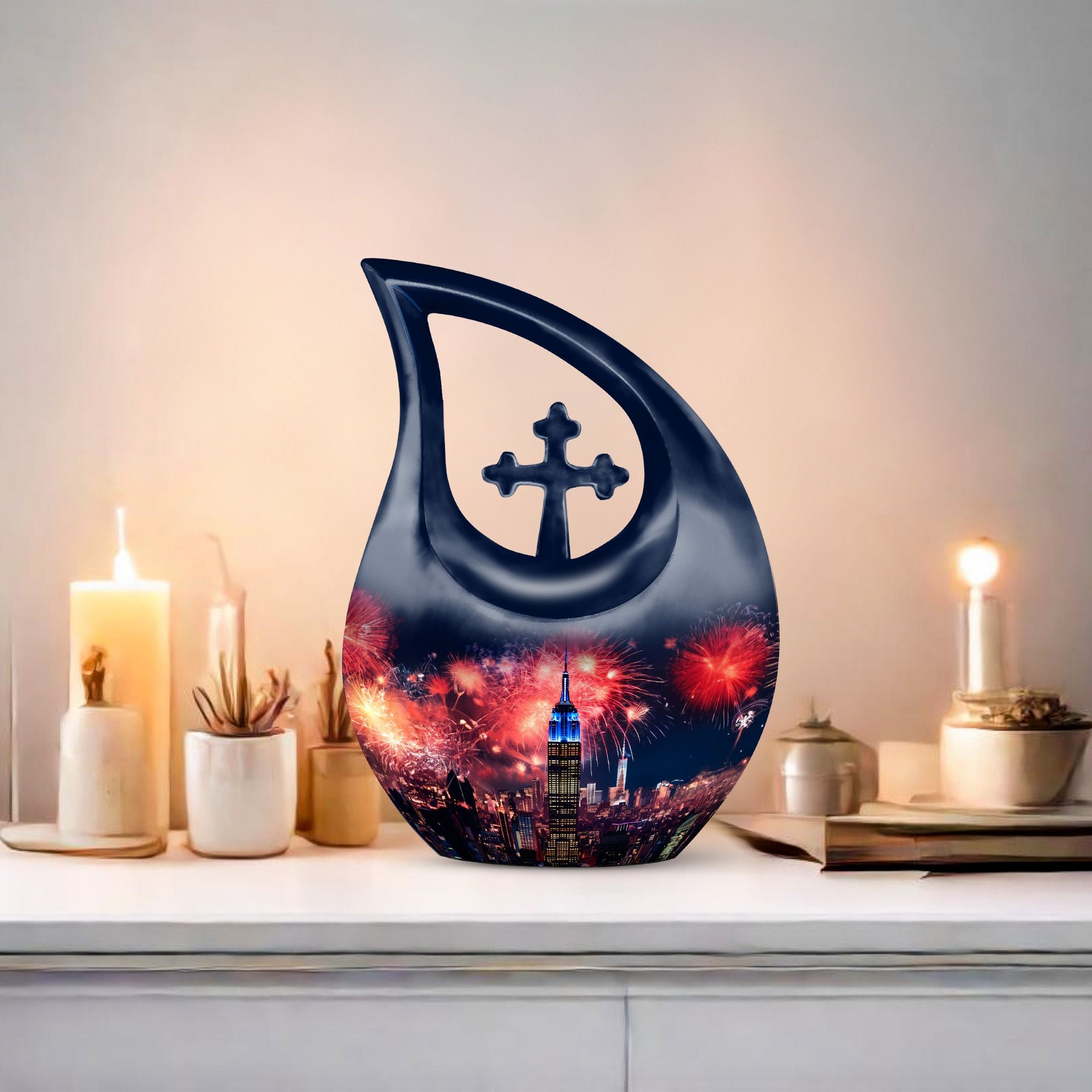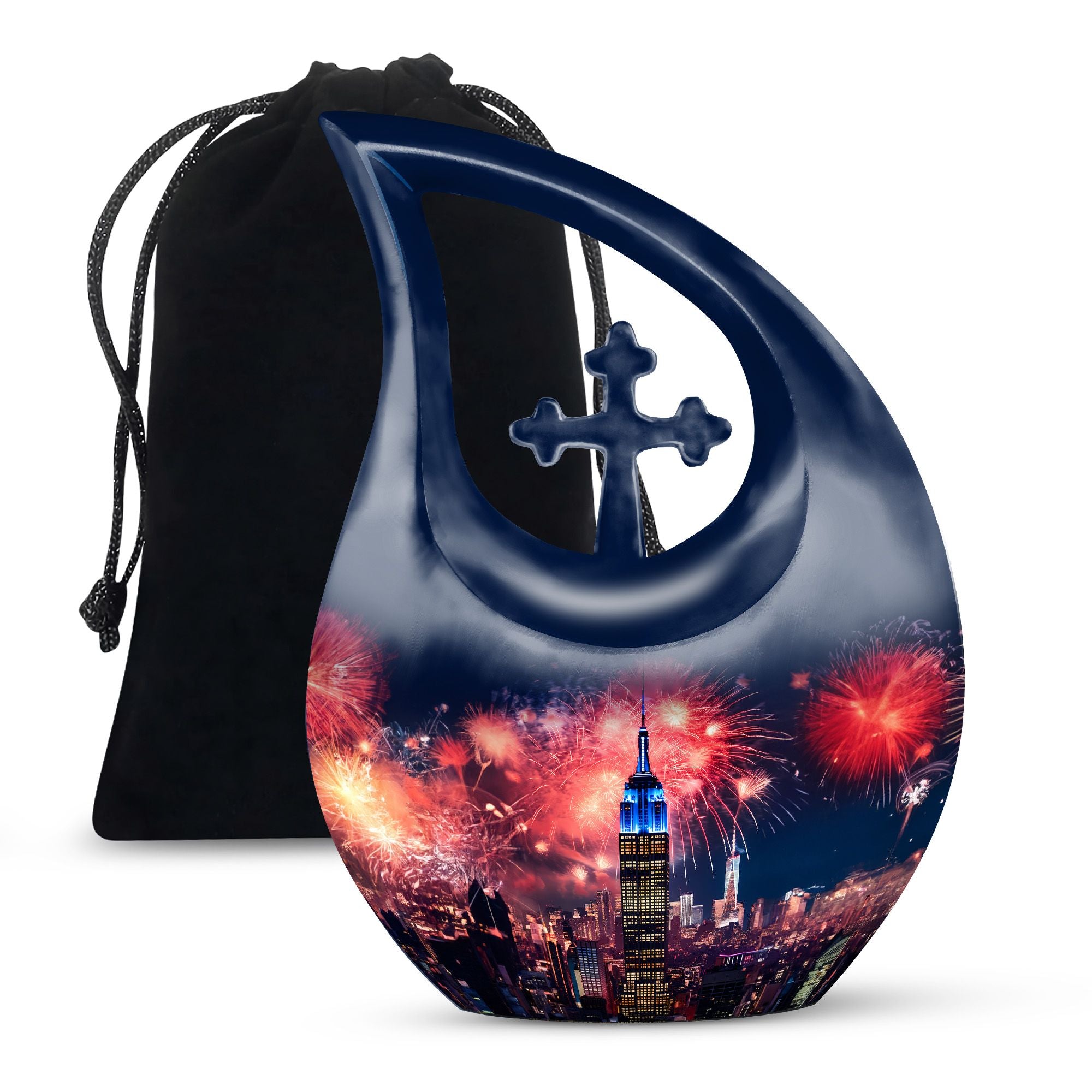 Honor your loved one’s memory with this breathtaking Fireworks Inspired New York Skyline Scenic Urn, a symbol of life, celebration, and everlasting peace. The glowing fireworks over New York’s skyline represent the joy and brilliance of a beautiful soul remembered forever. Crafted to embody dignity and grace, this urn offers comfort and beauty for those seeking funeral keepsake urns or unique urns for ashes that celebrate life’s most cherished moments.