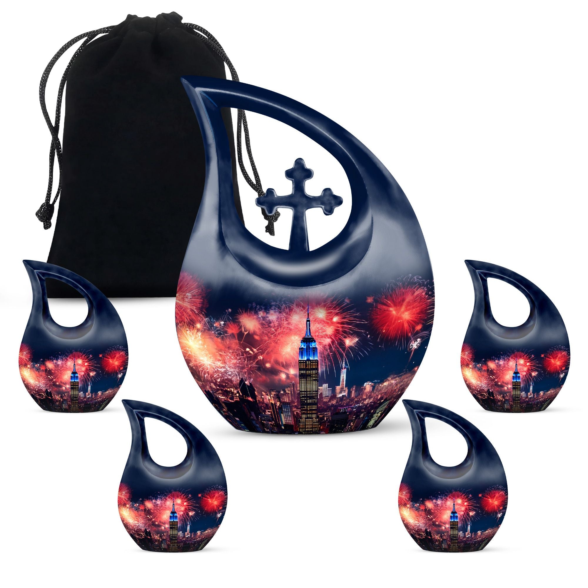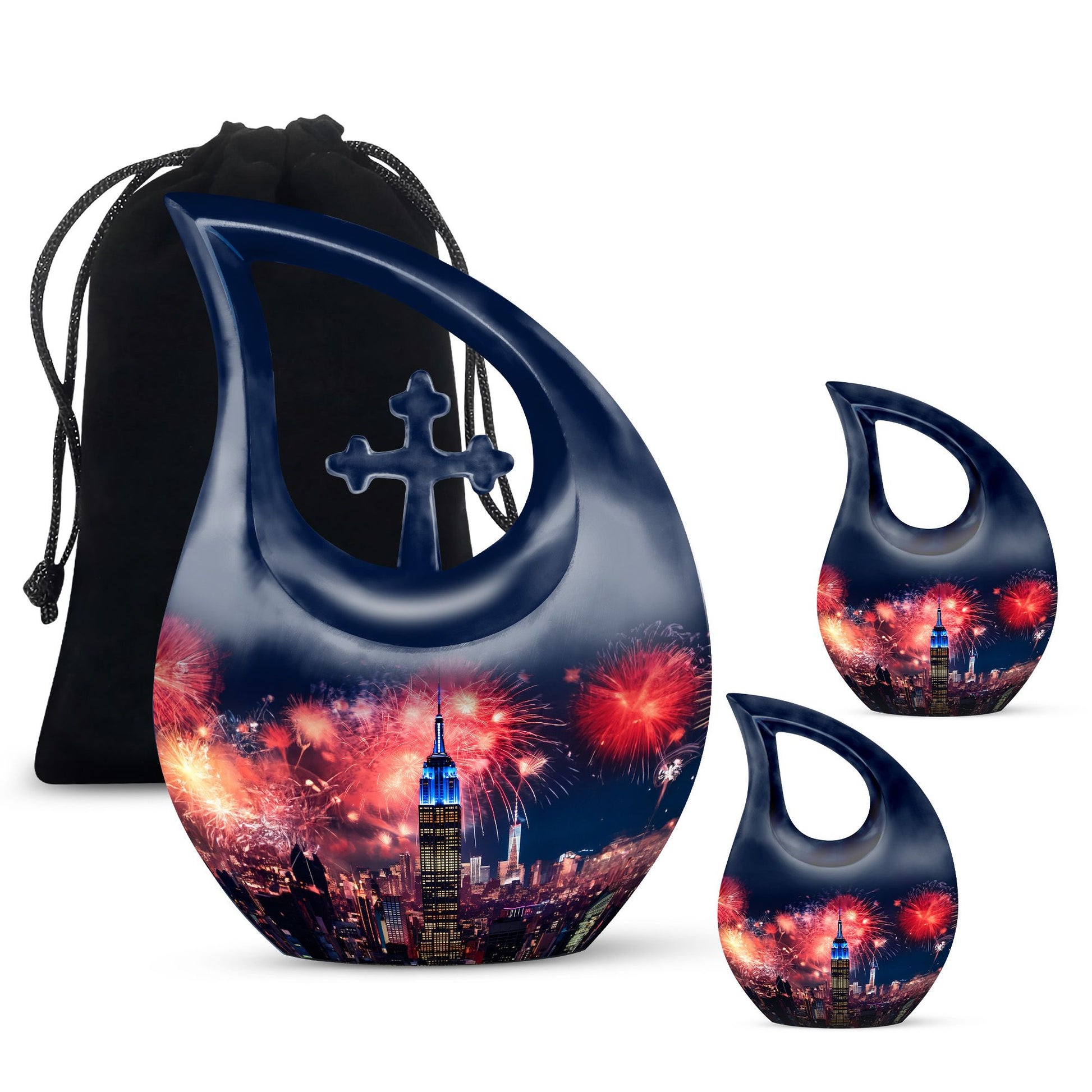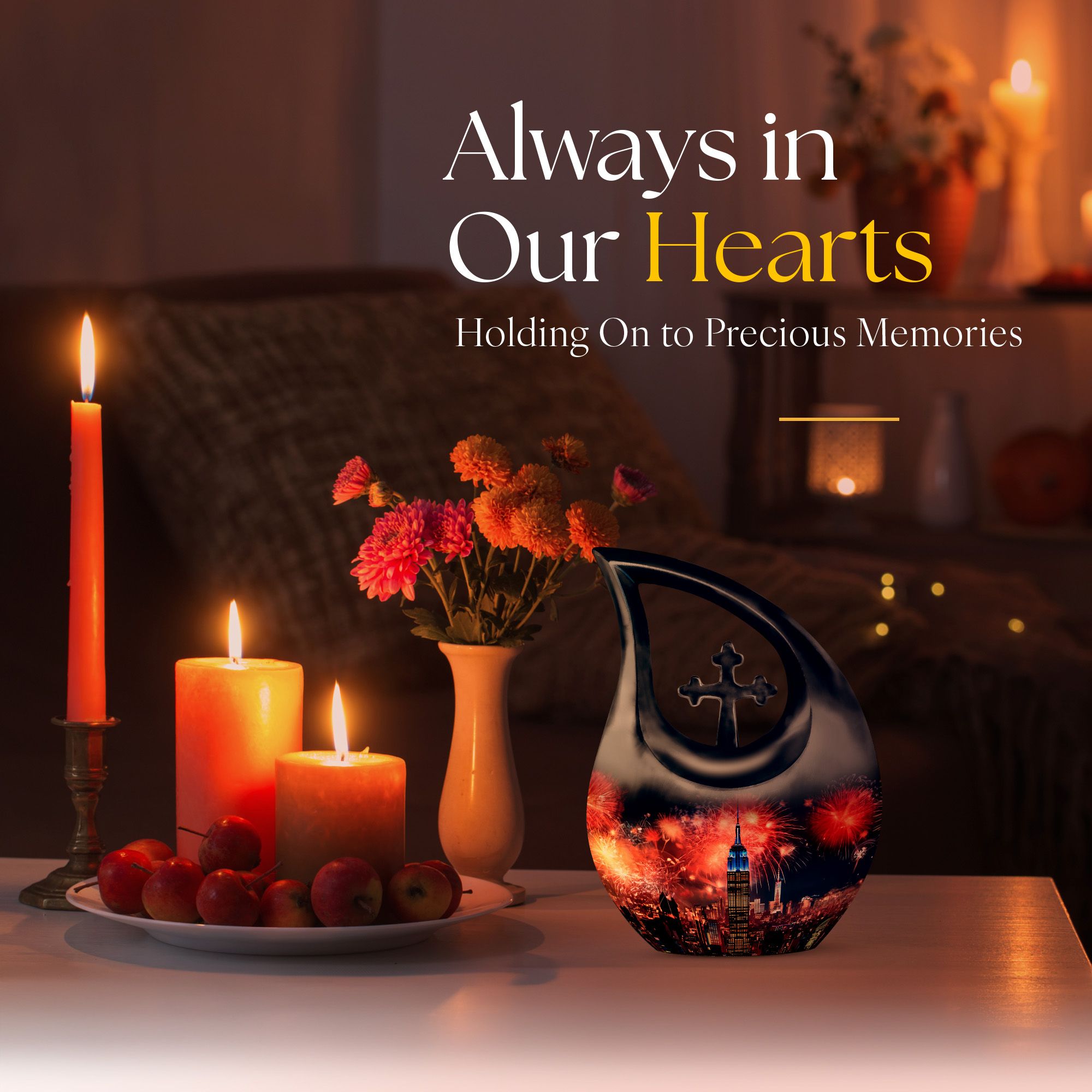 Honor your loved one’s memory with this breathtaking Fireworks Inspired New York Skyline Scenic Urn, a symbol of life, celebration, and everlasting peace. The glowing fireworks over New York’s skyline represent the joy and brilliance of a beautiful soul remembered forever. Crafted to embody dignity and grace, this urn offers comfort and beauty for those seeking funeral keepsake urns or unique urns for ashes that celebrate life’s most cherished moments.