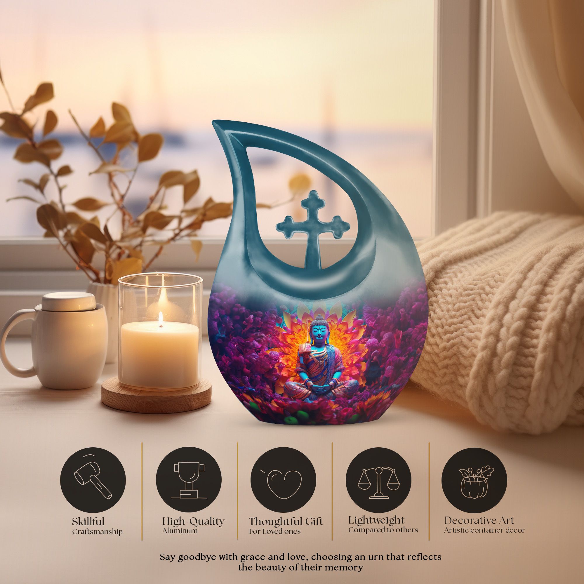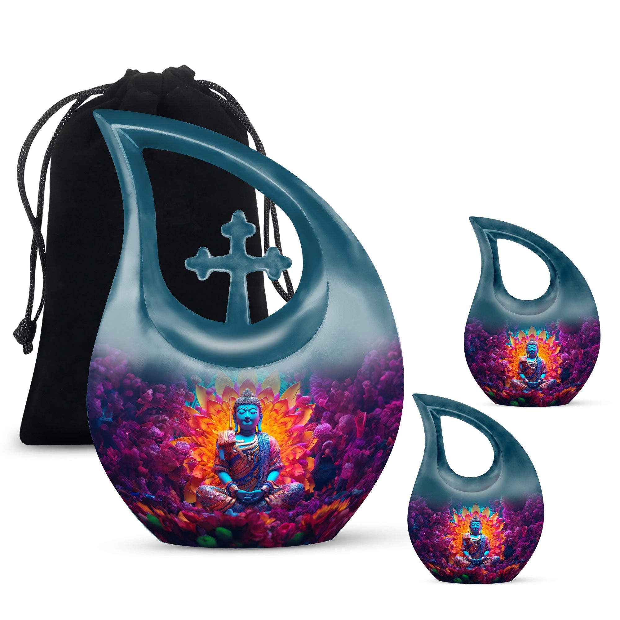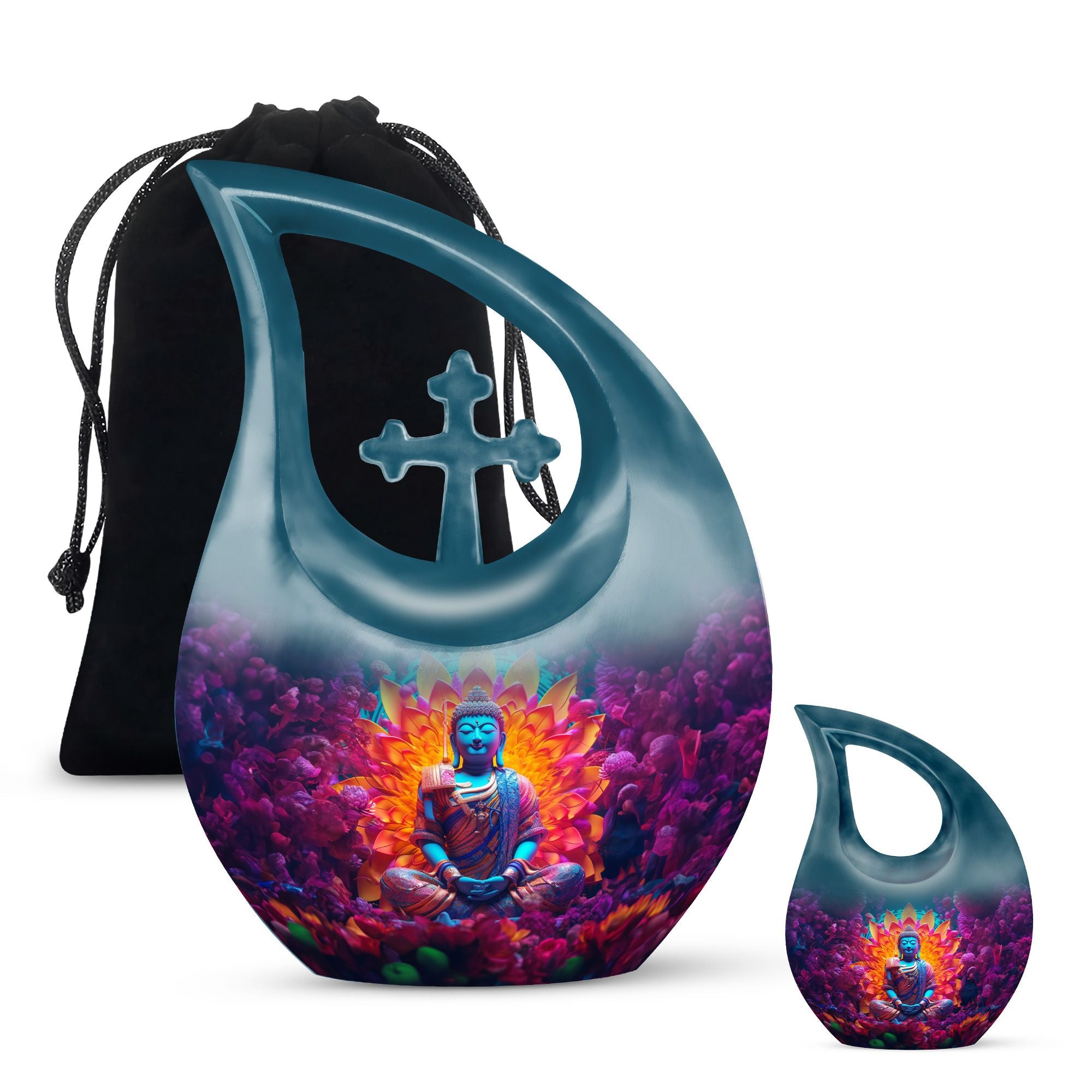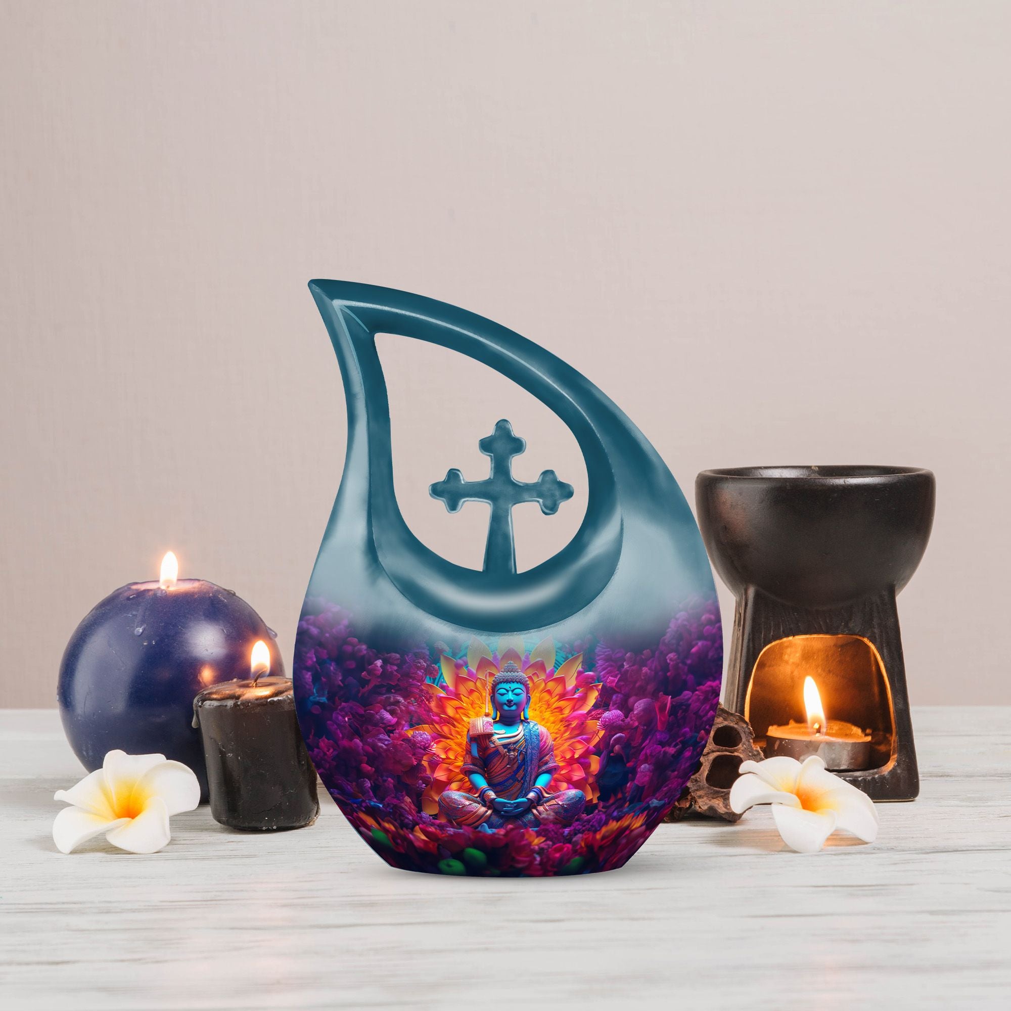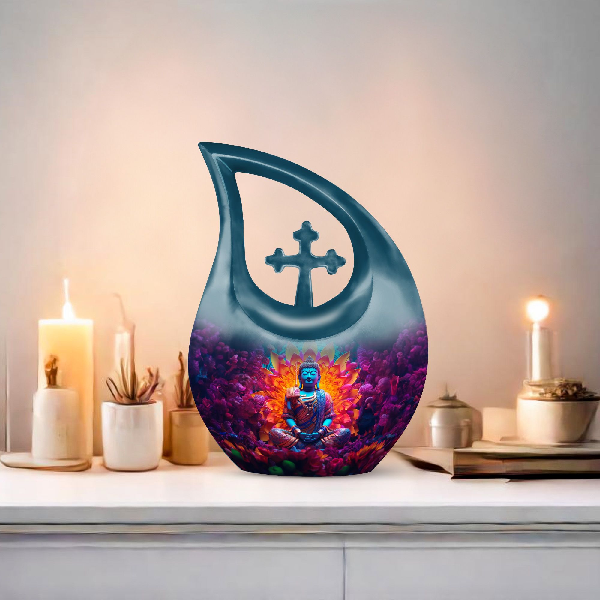 Honoring a loved one’s life becomes a sacred experience with this Blue Statue Buddha Themed Urn, crafted to bring peace, calm, and remembrance to any space. Designed with compassion, this piece offers families a meaningful way to safeguard memories while providing a dignified resting place for their loved one through high-quality cremation urns large and funeral urns for human ashes adult selections.