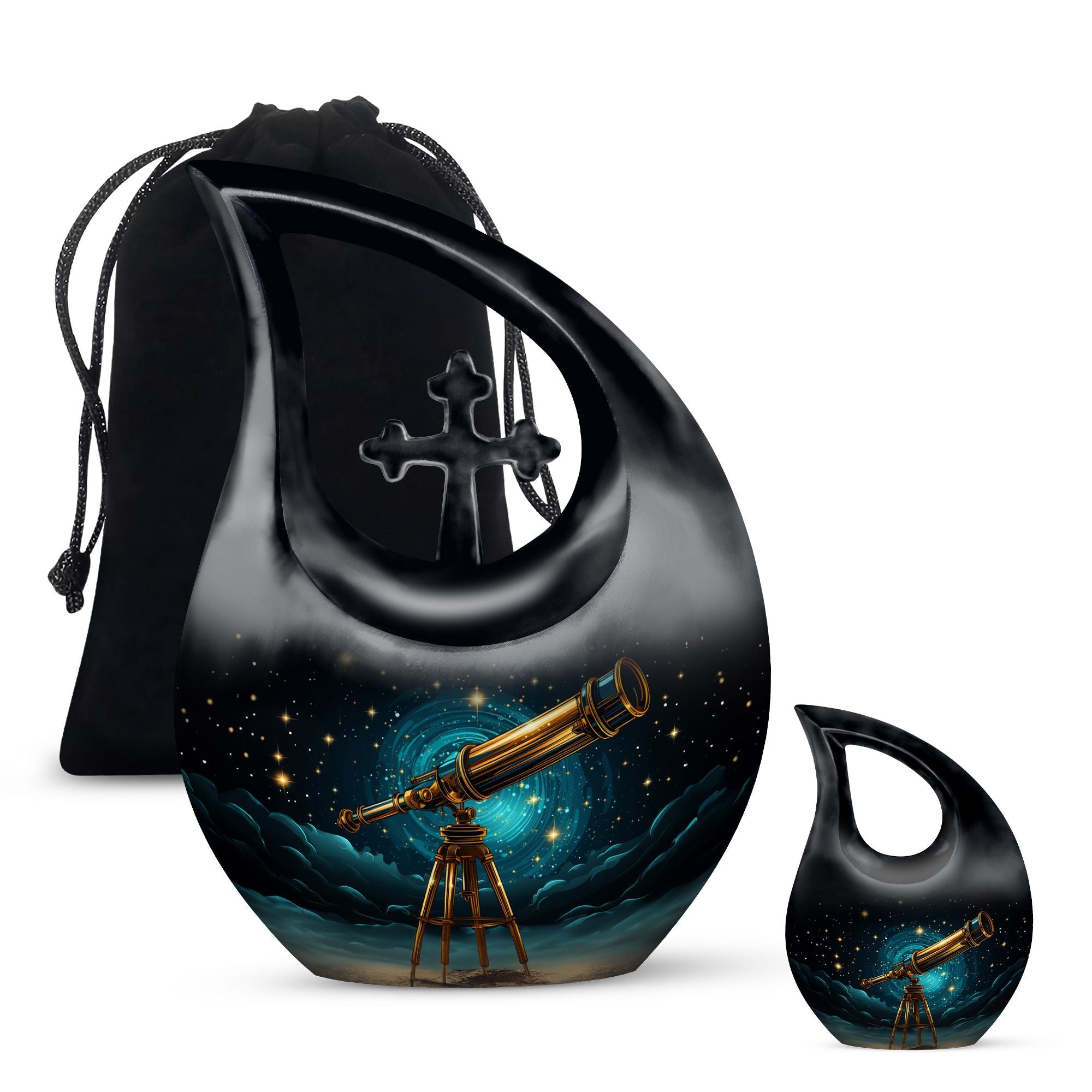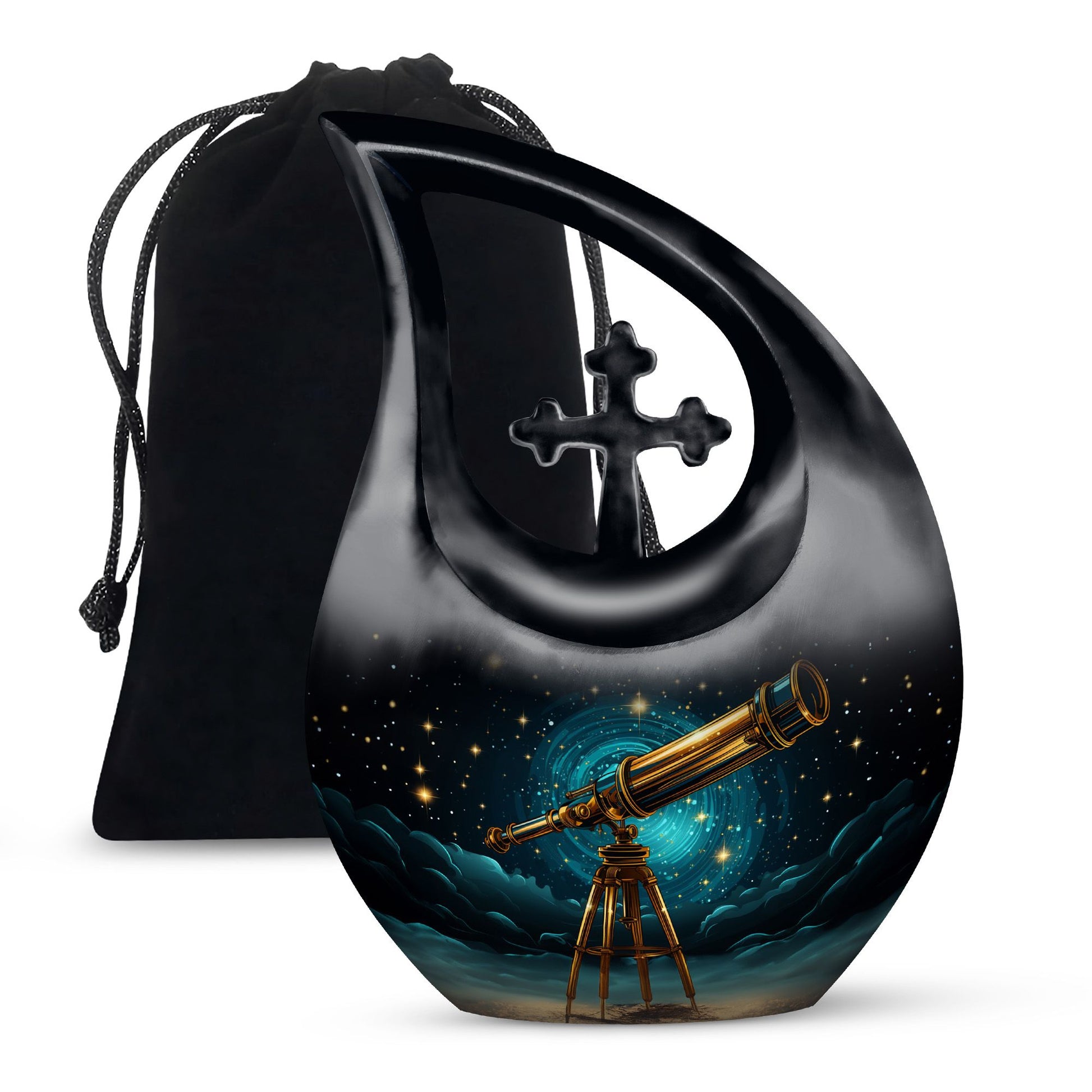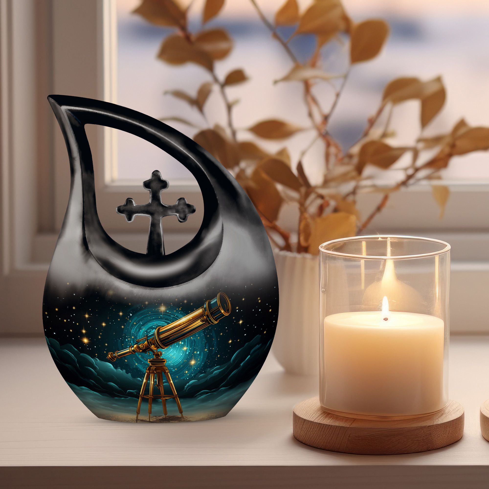 This telescope cremation urn for ashes offers a meaningful and celestial tribute for those who found wonder in the stars. Designed for both men and women, it brings comfort to families seeking cremation urns for ashes for men, a dignified cremation urn for adults, or a symbolic memorial that reflects exploration, curiosity, and peace.