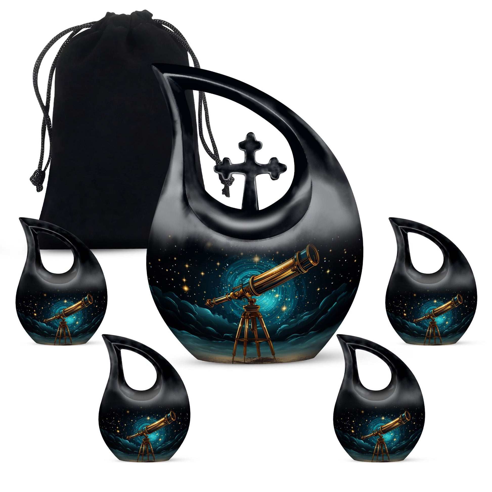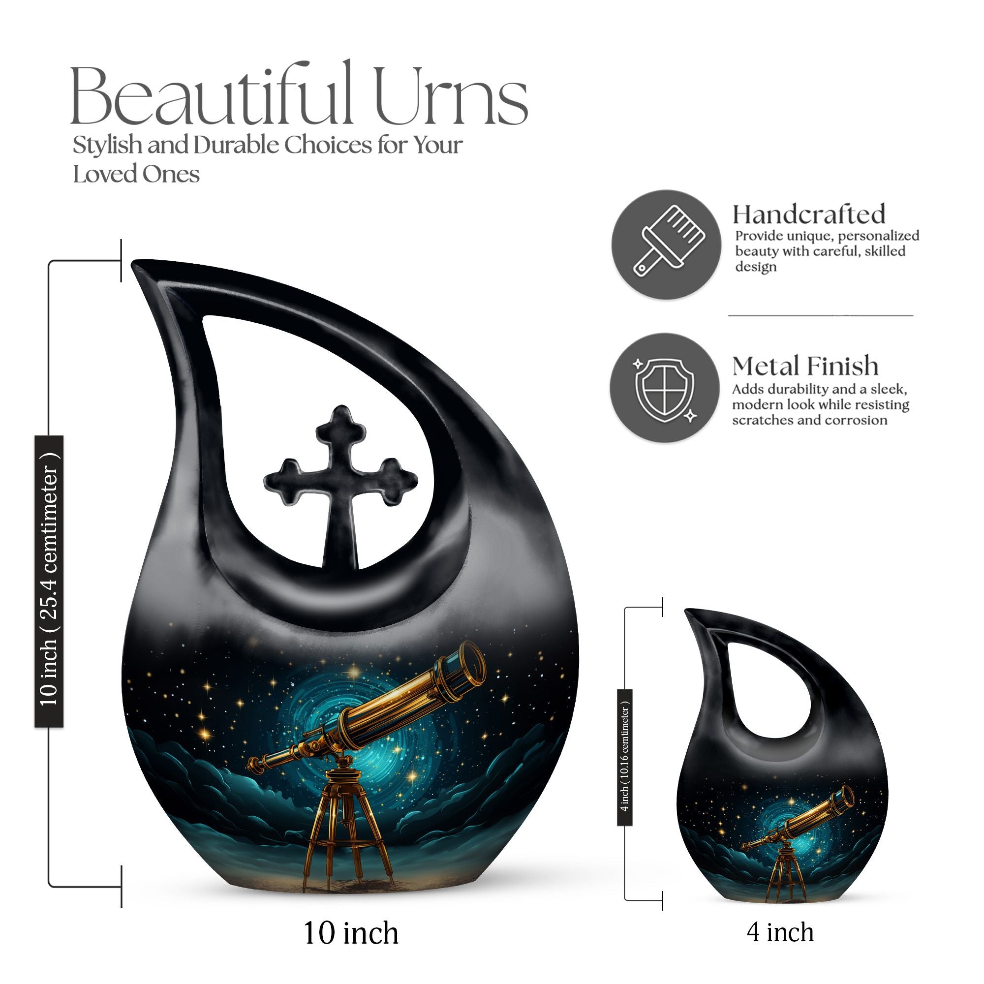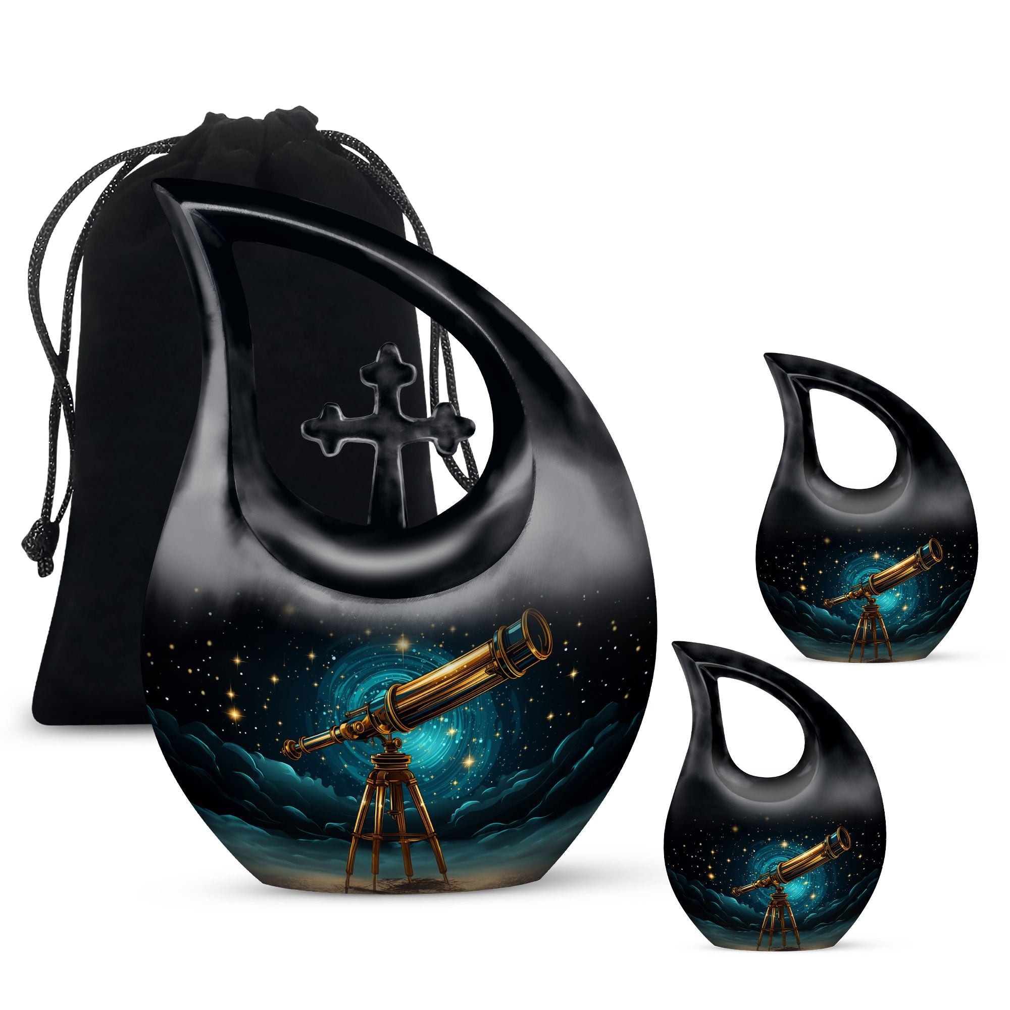 This telescope cremation urn for ashes offers a meaningful and celestial tribute for those who found wonder in the stars. Designed for both men and women, it brings comfort to families seeking cremation urns for ashes for men, a dignified cremation urn for adults, or a symbolic memorial that reflects exploration, curiosity, and peace.