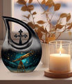 Crafted from durable aluminium, this urn features a beautifully detailed telescope and night-sky design, symbolizing guidance, discovery, and eternal presence. Its polished finish adds elegance, making it a meaningful choice for those needing cremation urns for adult ashes, urns for cremation ashes, or versatile options like cremation ashes keepsakes. The secure screw-top lid ensures safe preservation, while the 10-inch size offers ample capacity. Coordinating smaller options—such as a cremation urn small, urns for cremation ashes small, or small urns for cremation ashes—allow families to share ashes or keep a small portion close.