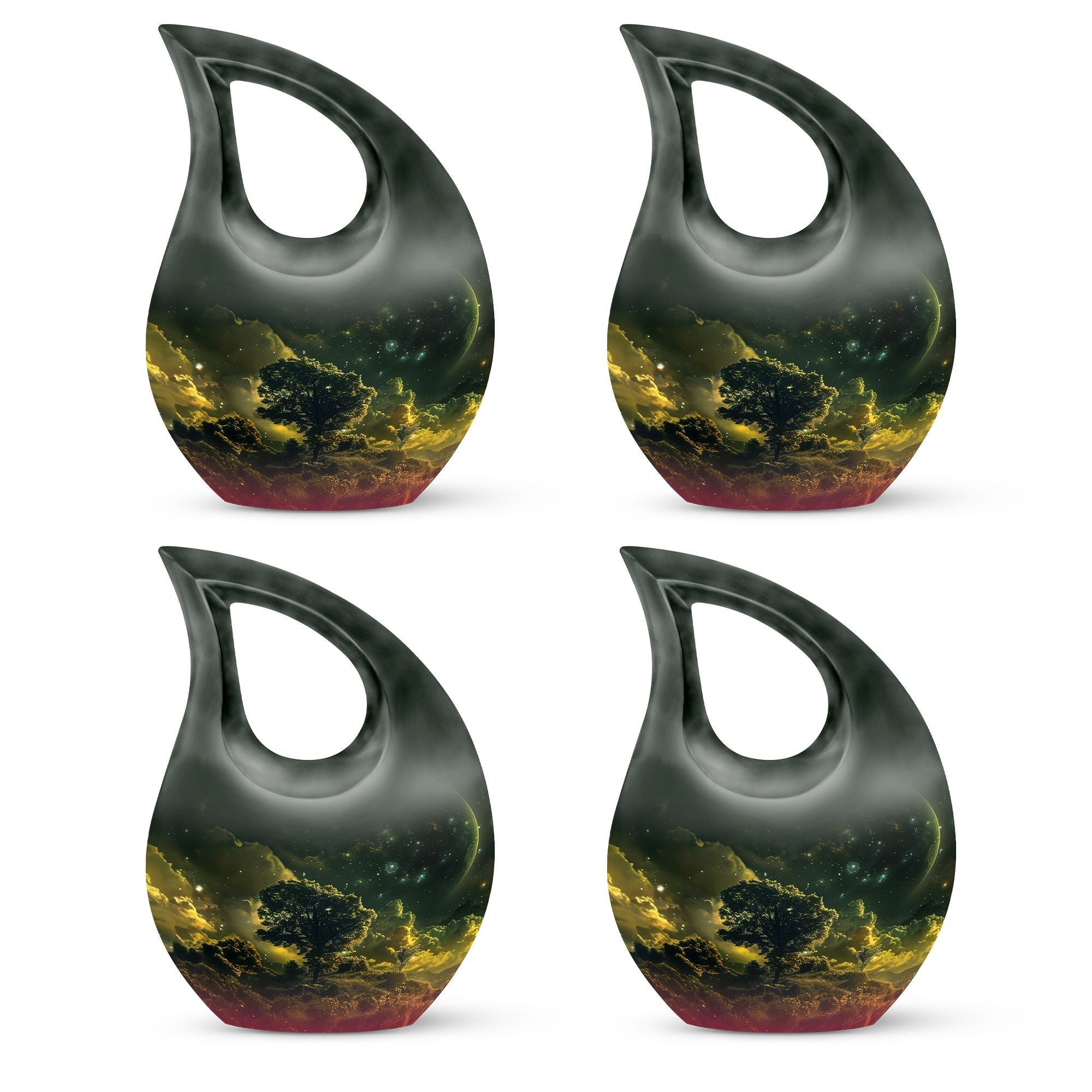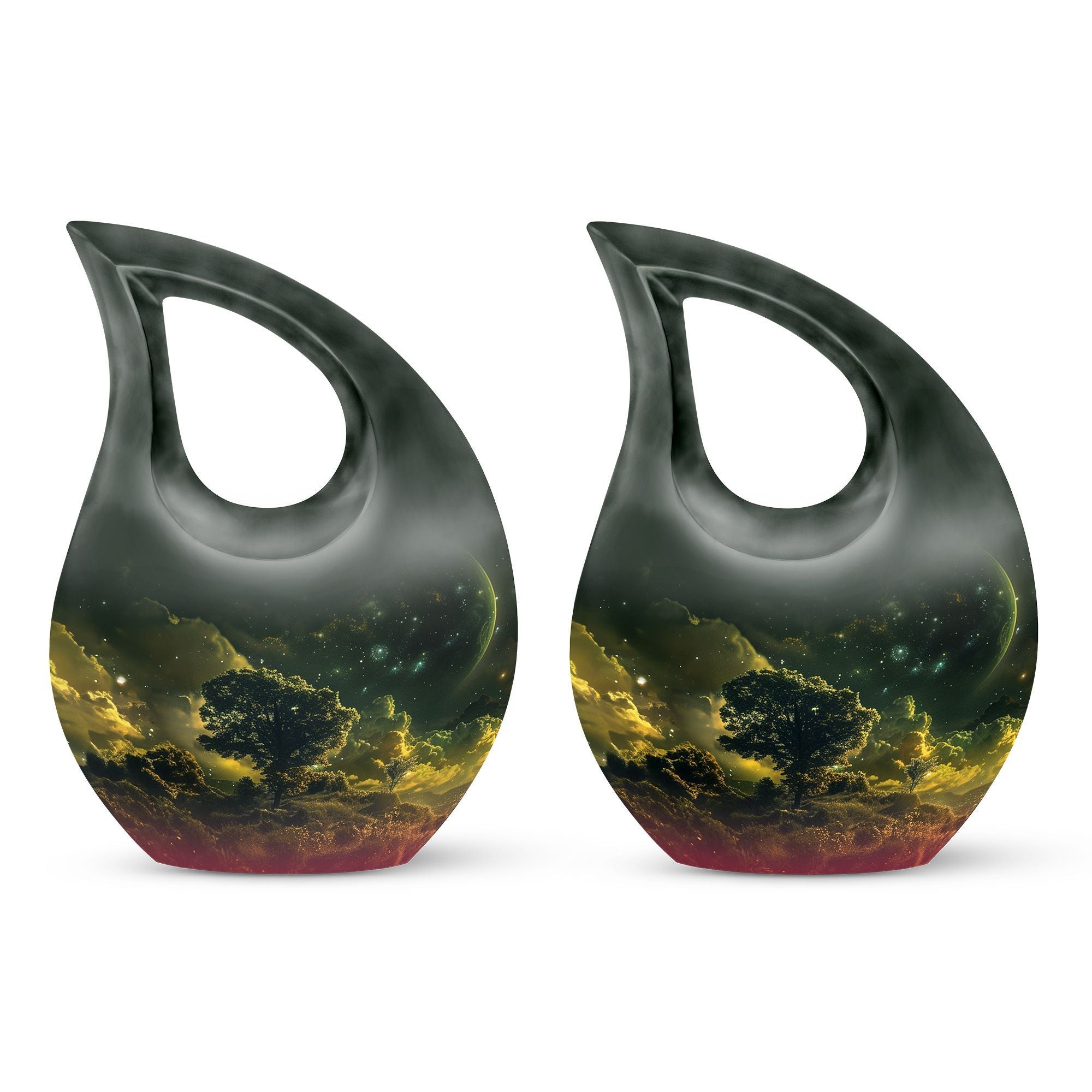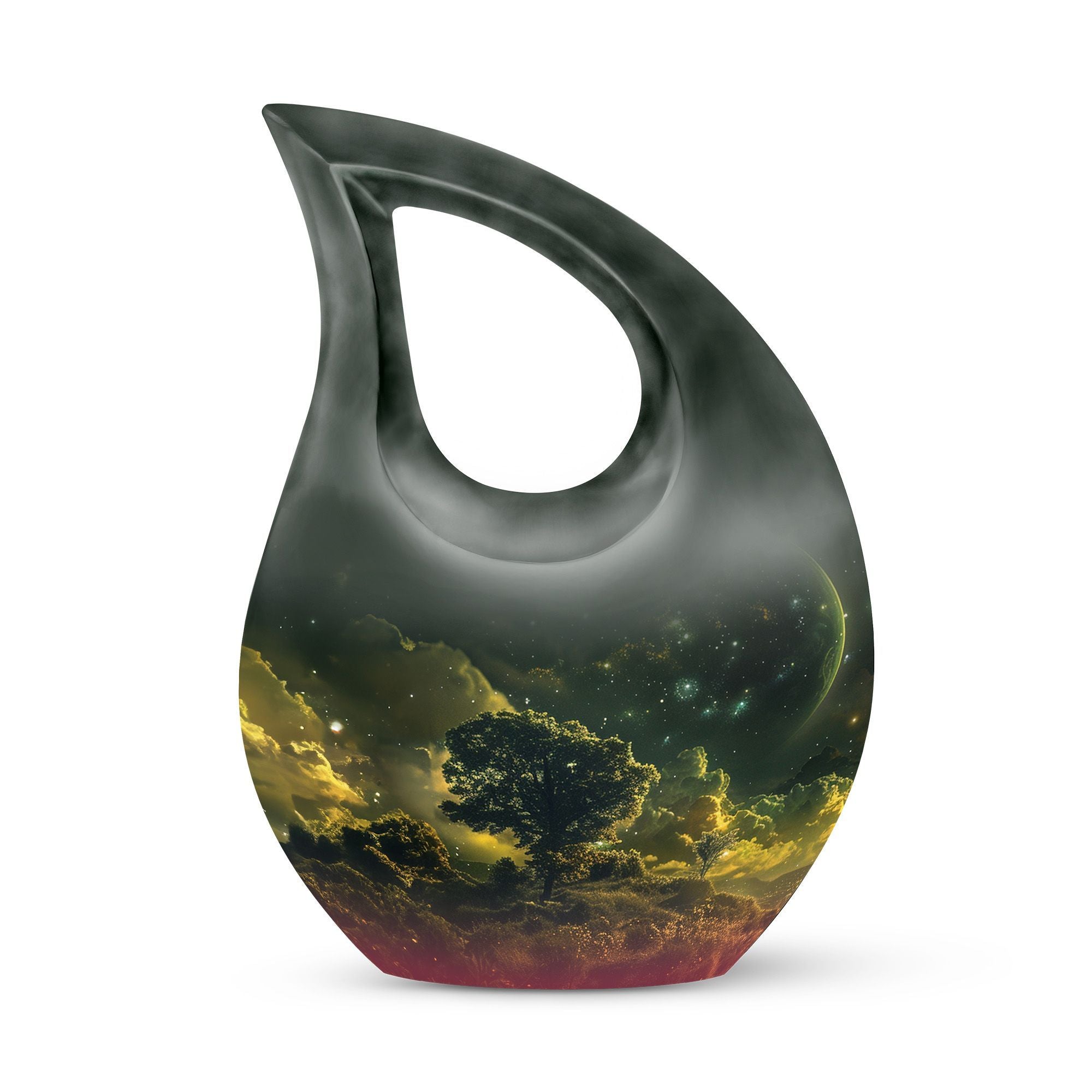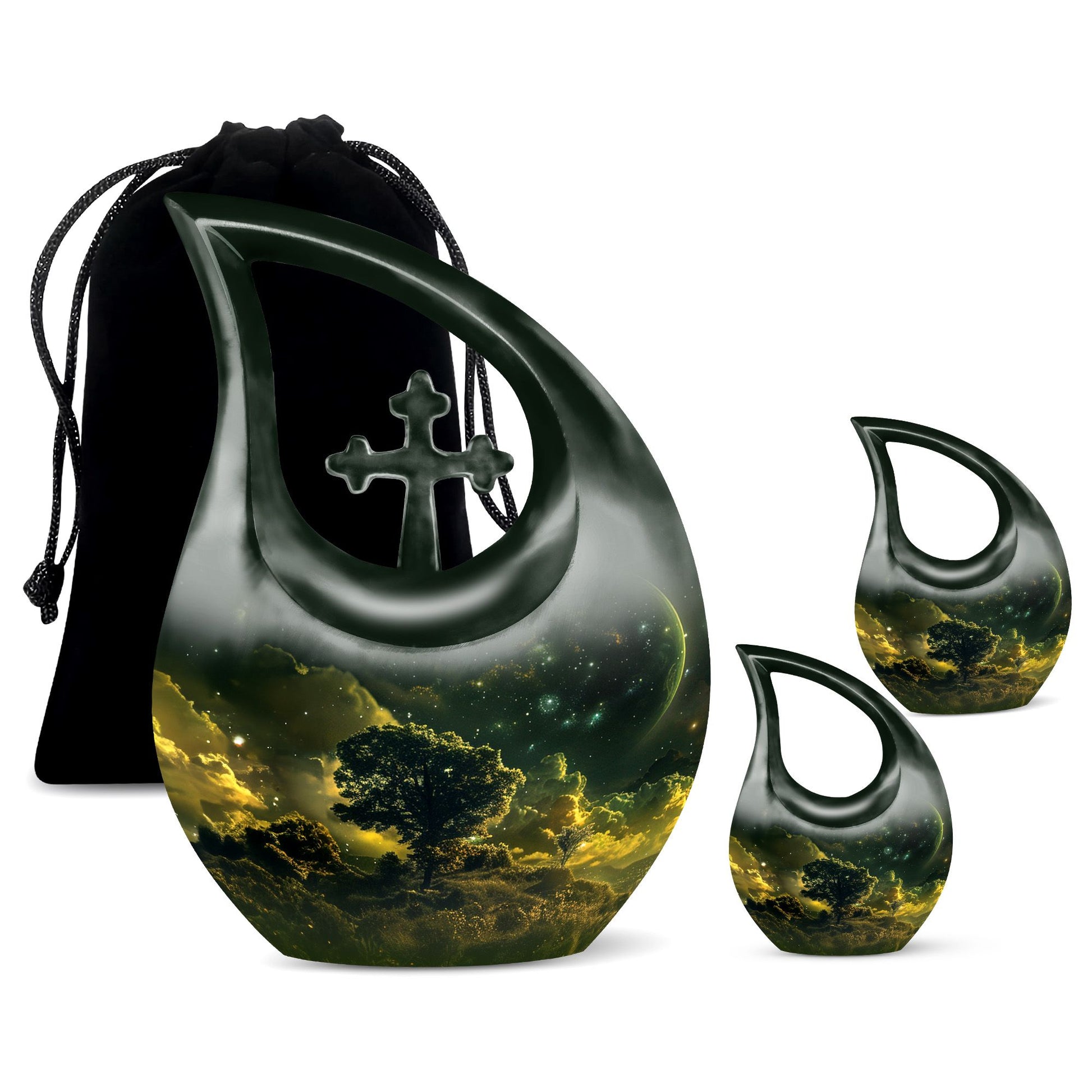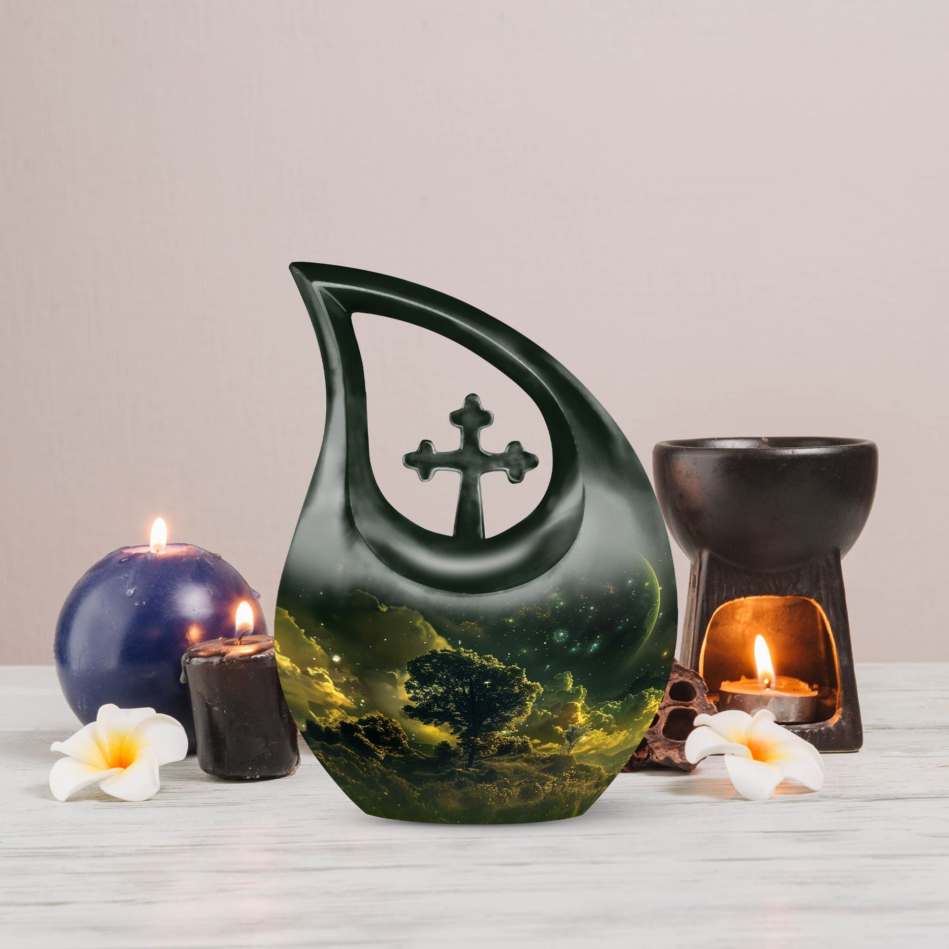 Experience tranquility and peace with our Stellar Serenity Urn, a vital addition to your personal urn collection. Crafted from premium-quality, 10-Inch-tall aluminium, this urn showcases a harmonious balance between durability and aesthetics. The urn displays a unique 'Cross Drop' theme, promoting serene memories and reflections. Weighing around 3.3 pounds, it can conveniently accommodate 200 cubic inches worth of ashes, aiding in grace-filled memorials. The urn comes with a soft and luxurious velvet pouch ensuring undisturbed containment of ashes, adding a touch of elegance to your memorial ceremony supplies. As a part of your personalized experience, this urn can be customised by engraving the names. Whether you are seeking for 'Urns To Put Ashes In', 'Companion Cremation Urns', 'Large Urns For Ashes', or 'Small Decorative Urns For Ashes', our Stellar Serenity Urn stands up to your needs, attracting all with its originality and sublime character.