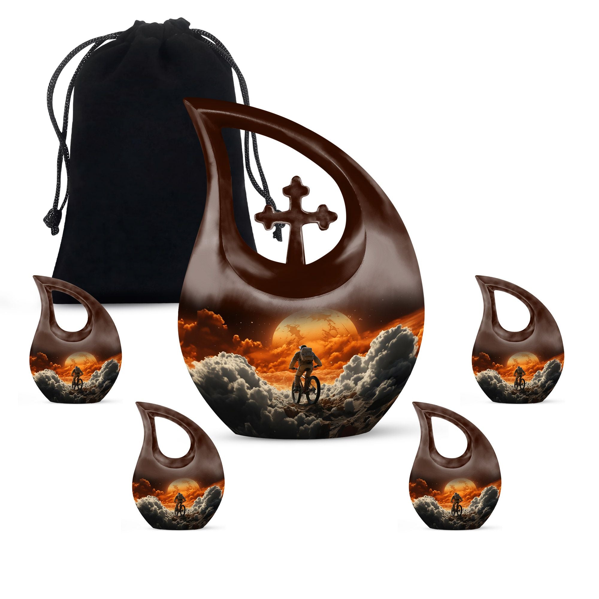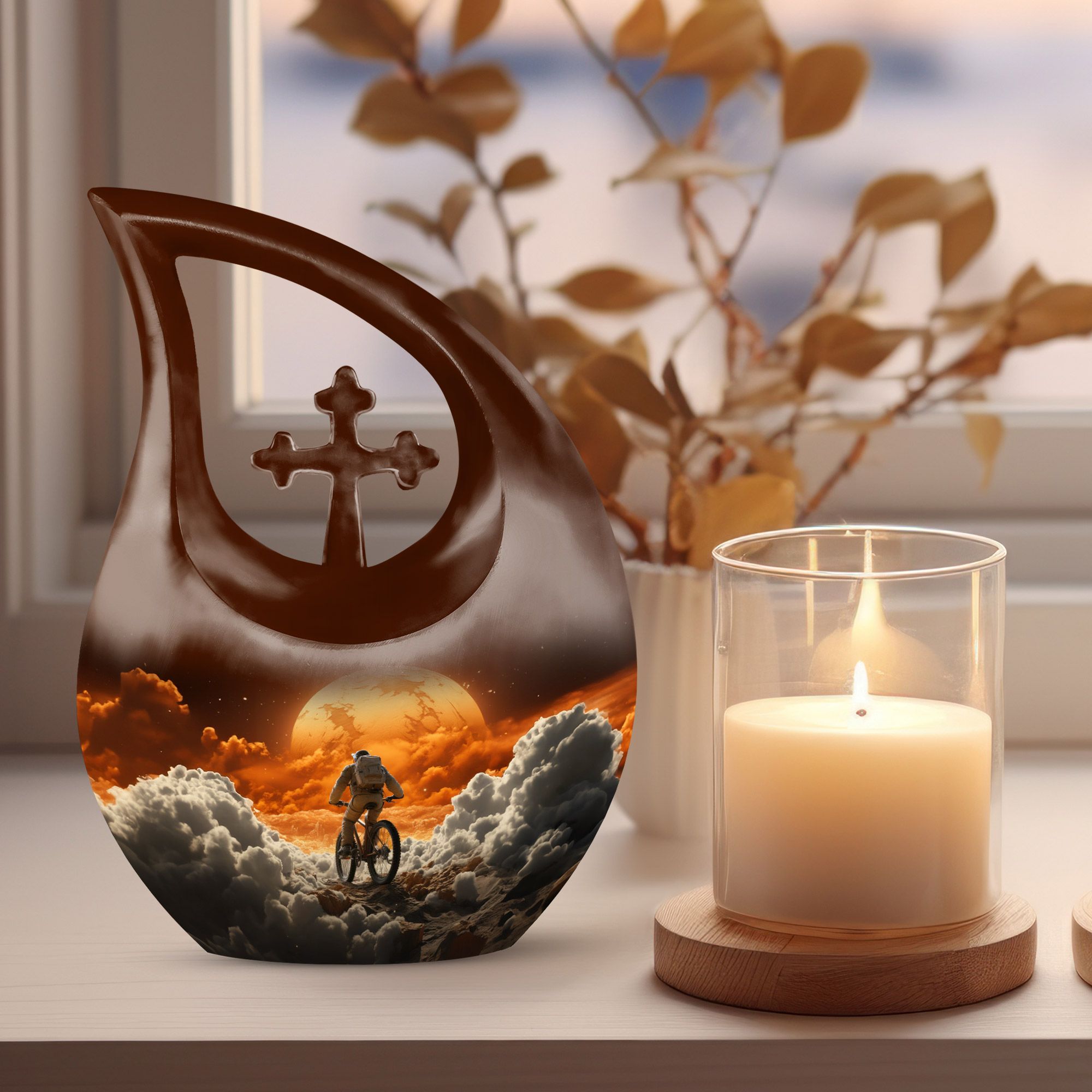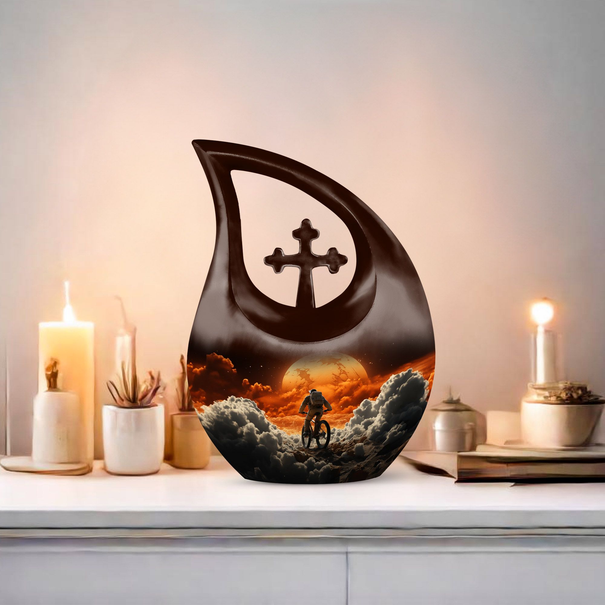 Honor a loved one who embraced the joy of the open road with our Sunset Ride Memorial Urn, a touching tribute designed for those whose spirit was fueled by adventure and motion. This cyclist theme cremation urn for human ashes beautifully captures the essence of a life lived with passion, courage, and love. Perfect for families seeking urns for human ashes adult large or a dignified large urn mom ashes memorial, it symbolizes life’s beautiful journey continuing beyond the horizon.