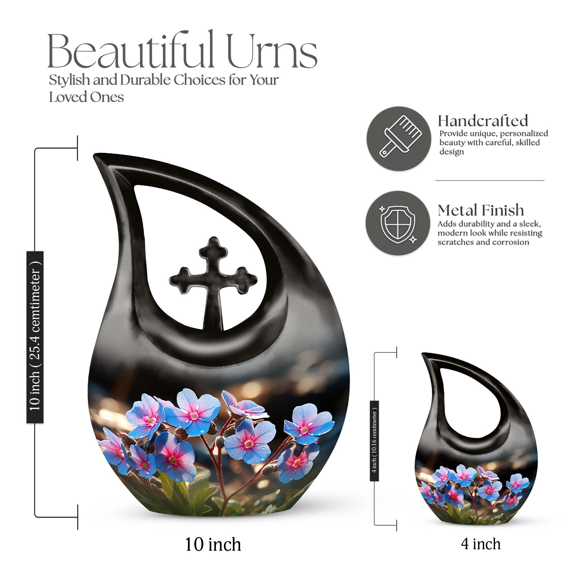Celebrate timeless love and remembrance with the Blue Blossoms Urn Combo, an exquisite large and keepsake urn set designed to bring peace and comfort to families. The soft blue floral motif symbolizes serenity and eternal connection, making this set ideal as an urn for women ashes or a dignified urn for men & women memorial choice.