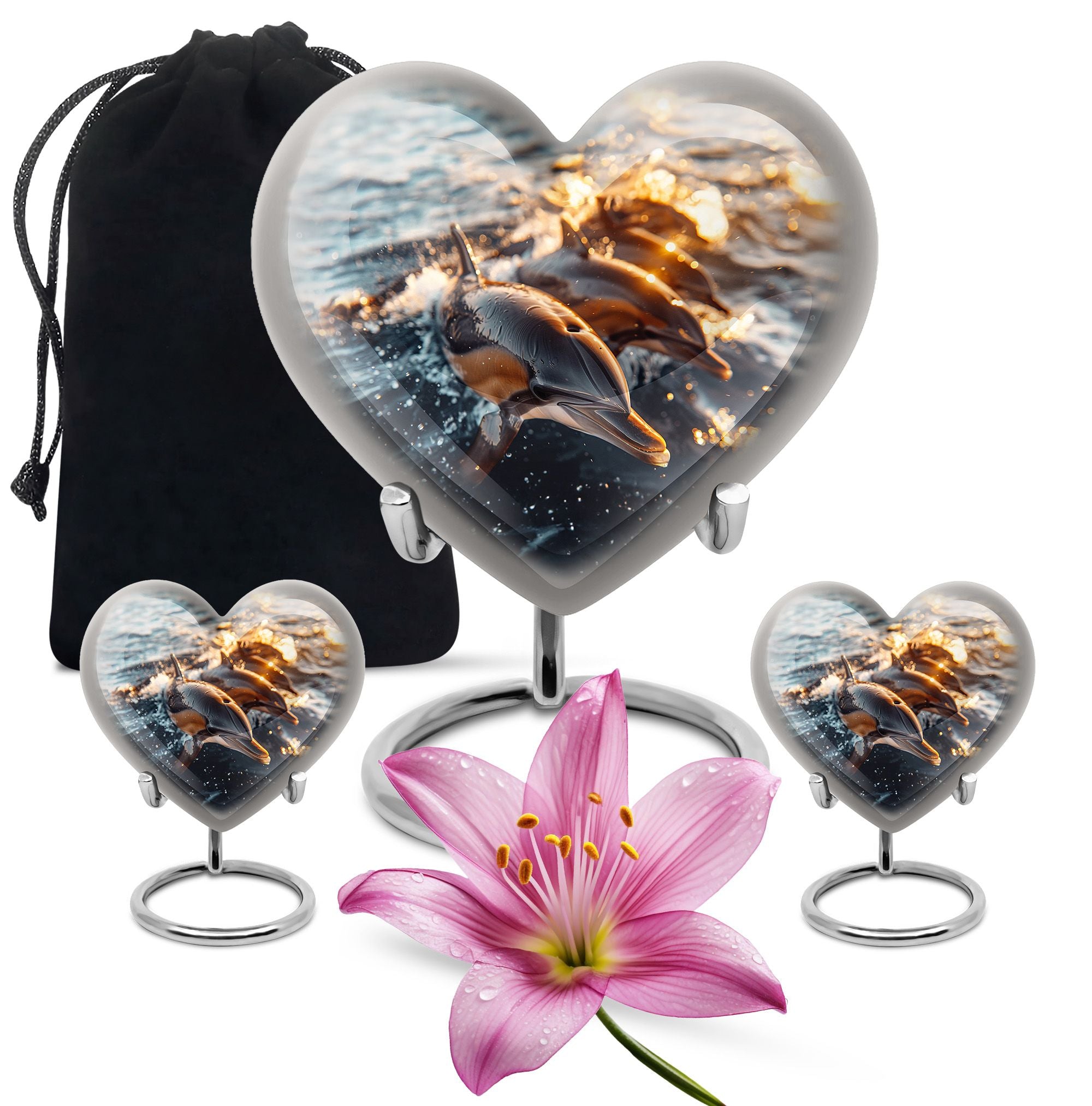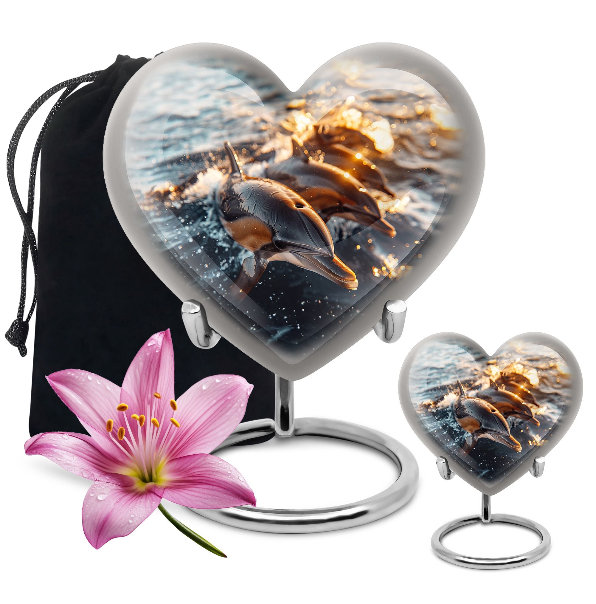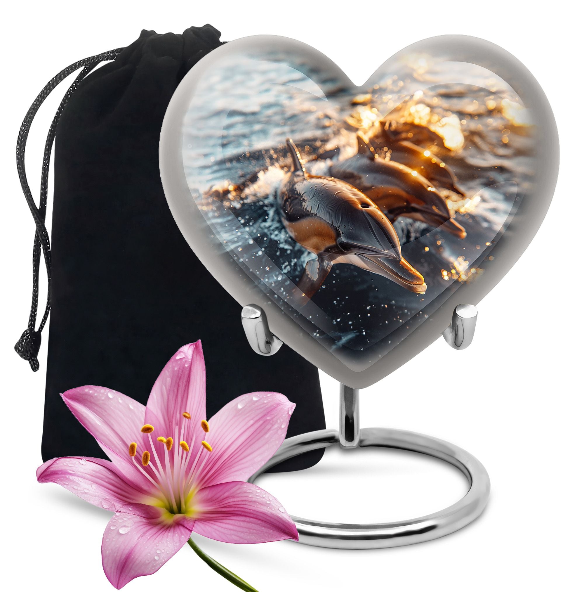 The Sunset Dolphin Urn is a serene and heartfelt tribute, capturing the beauty of the ocean and the symbolism of dolphins as guides of peace, love, and eternal journeys. Thoughtfully designed, it is suitable as urns for human ashes adult female or small urn for ashes adult male, making it a versatile memorial urn for families. Whether chosen as urns for ashes adult male or an urn for ashes adult female, this piece brings dignity and comfort to remembrance.