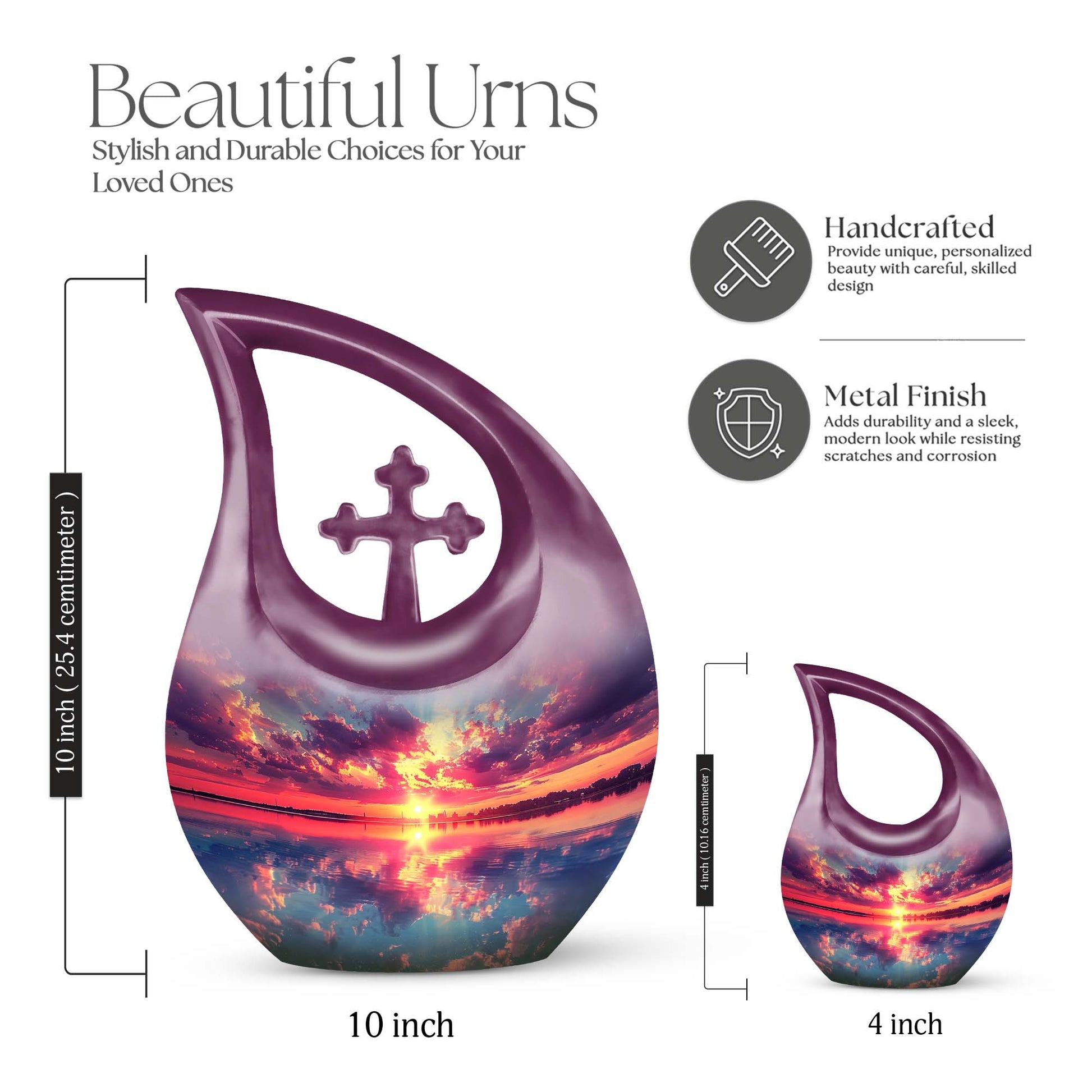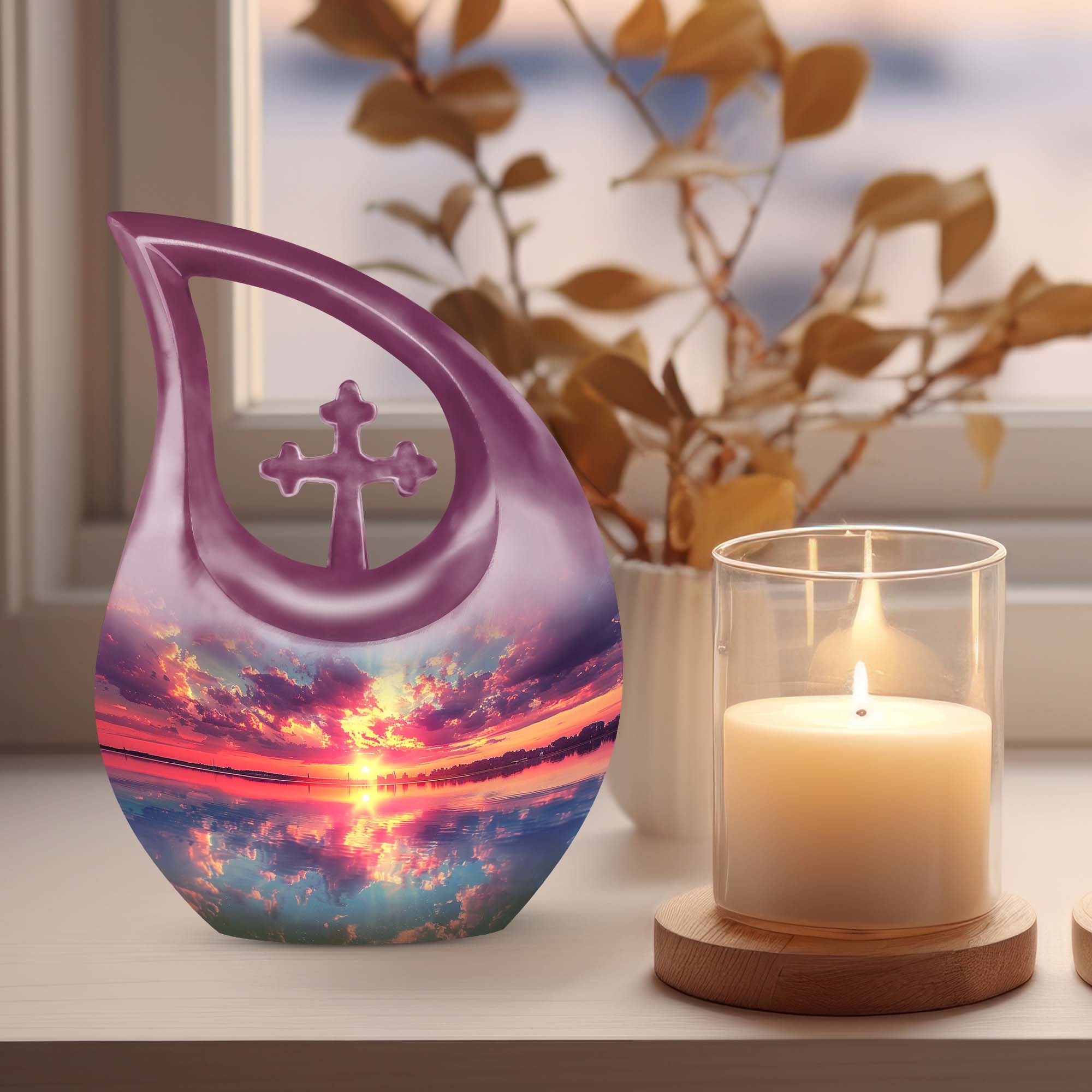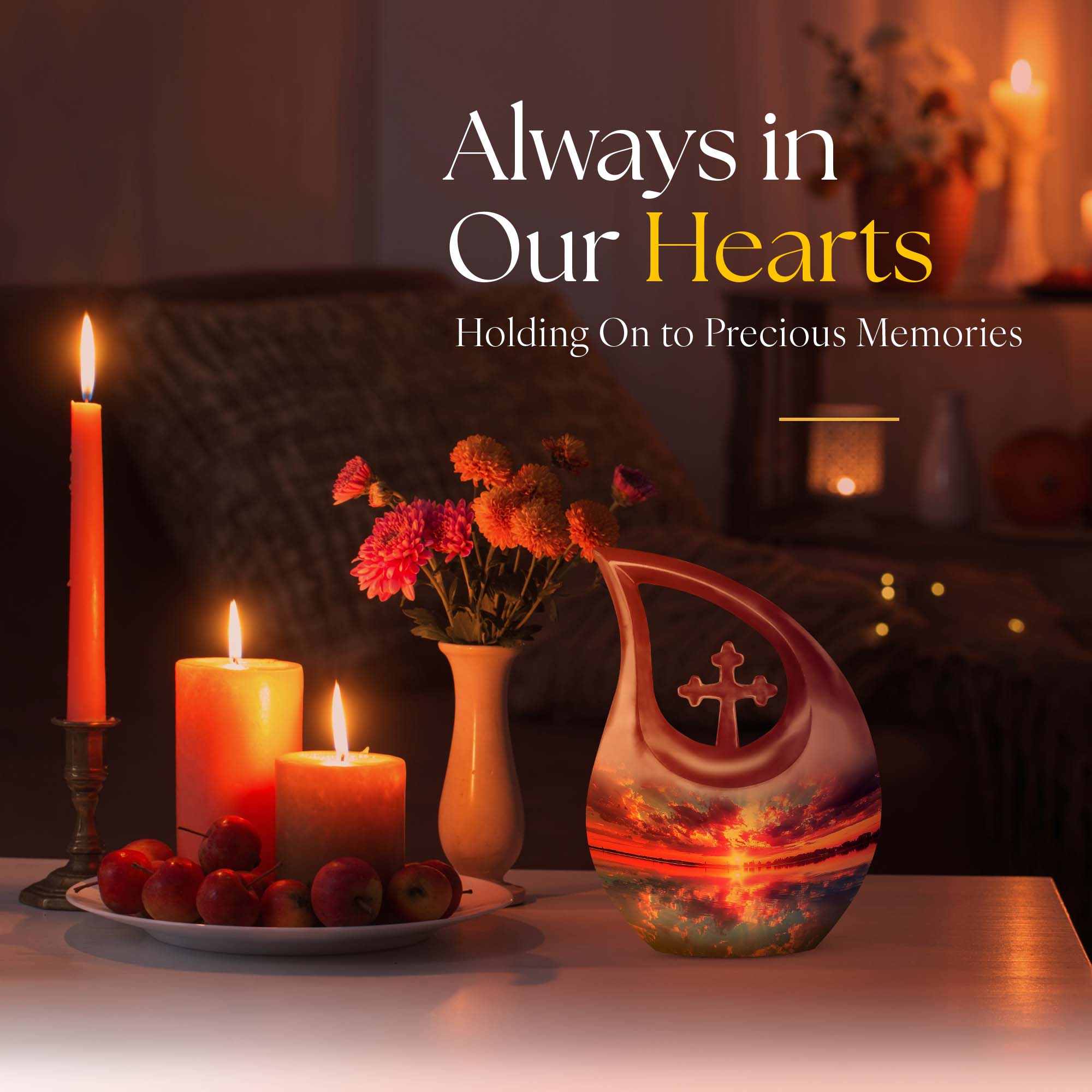 Each urn represents more than a container—it’s a lasting tribute to a cherished life. The cremation urn large design and radiant sunset tones symbolize love, hope, and eternal peace, offering a beautiful reminder that the memories of our loved ones never fade.