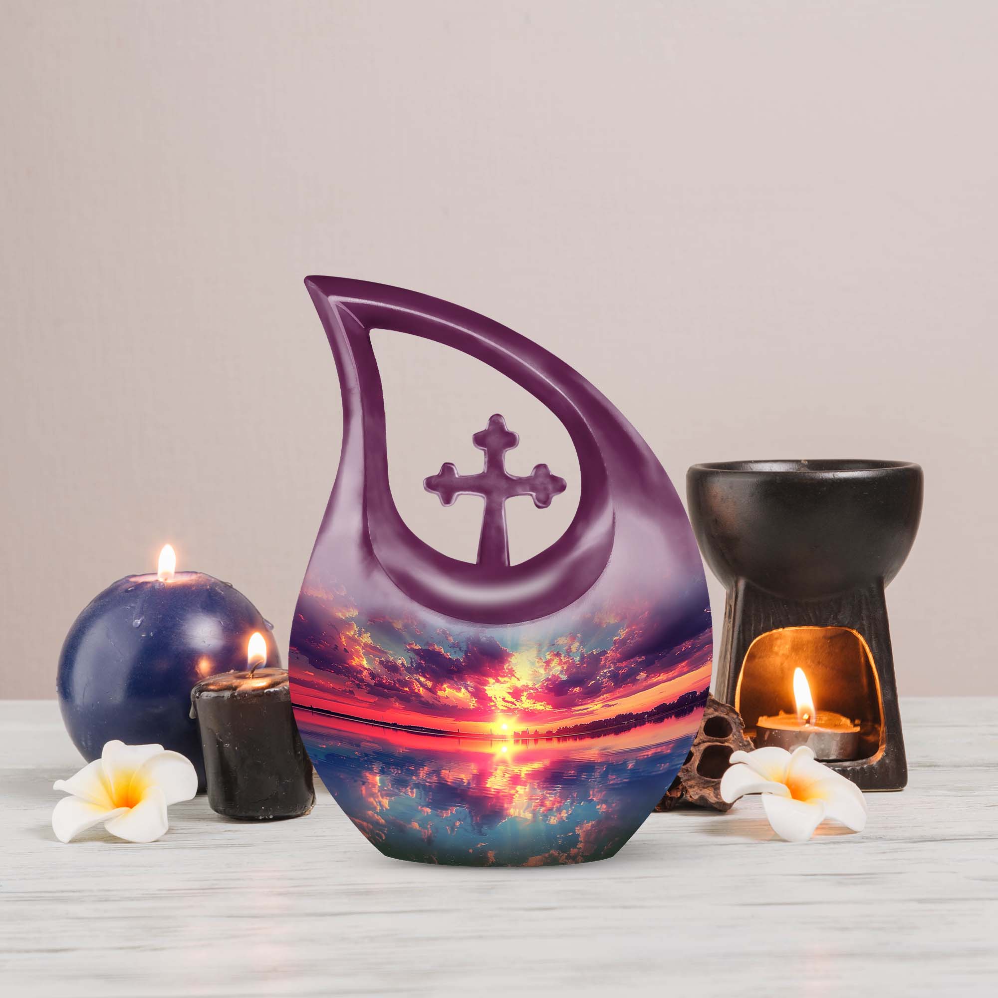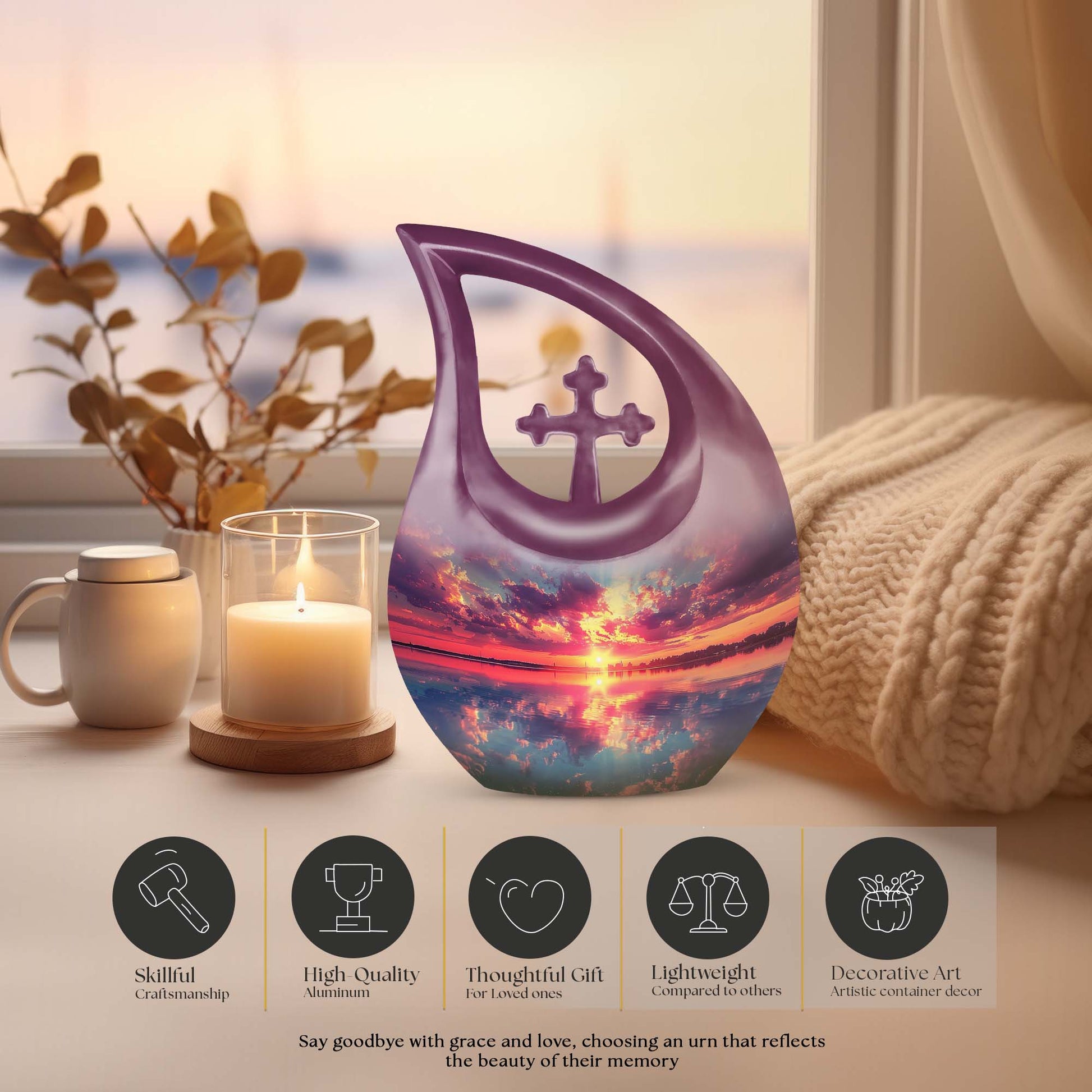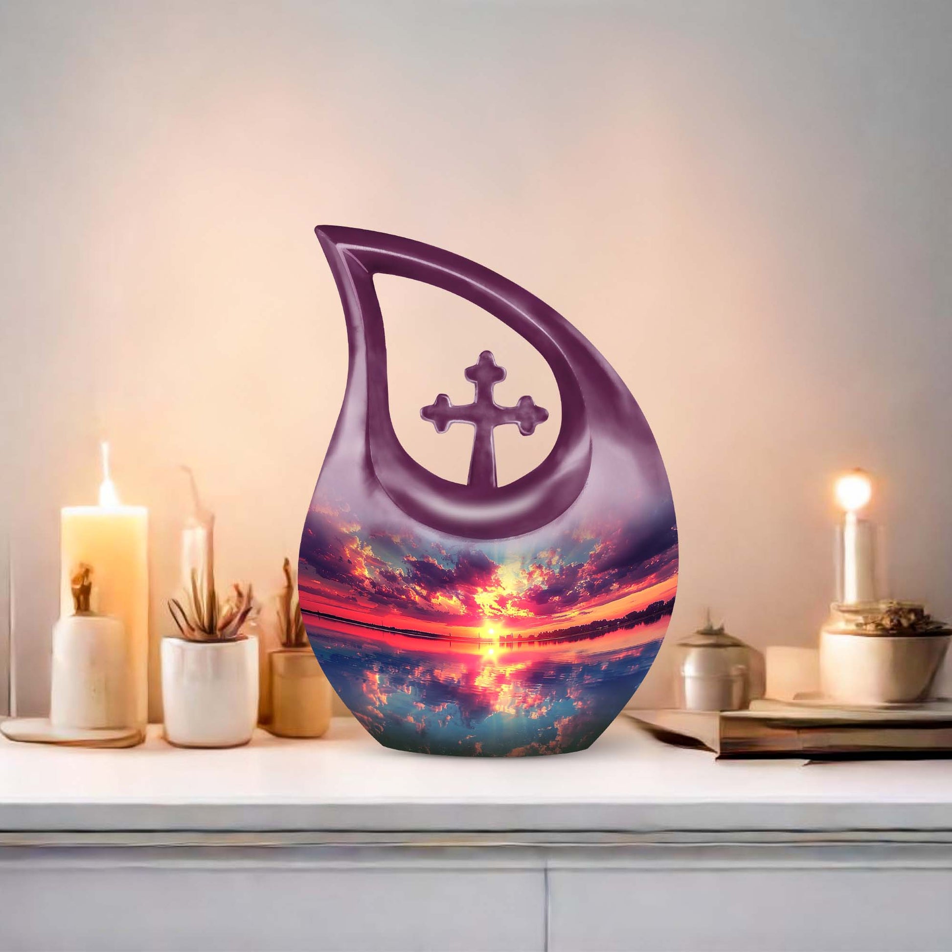 Each urn represents more than a container—it’s a lasting tribute to a cherished life. The cremation urn large design and radiant sunset tones symbolize love, hope, and eternal peace, offering a beautiful reminder that the memories of our loved ones never fade.