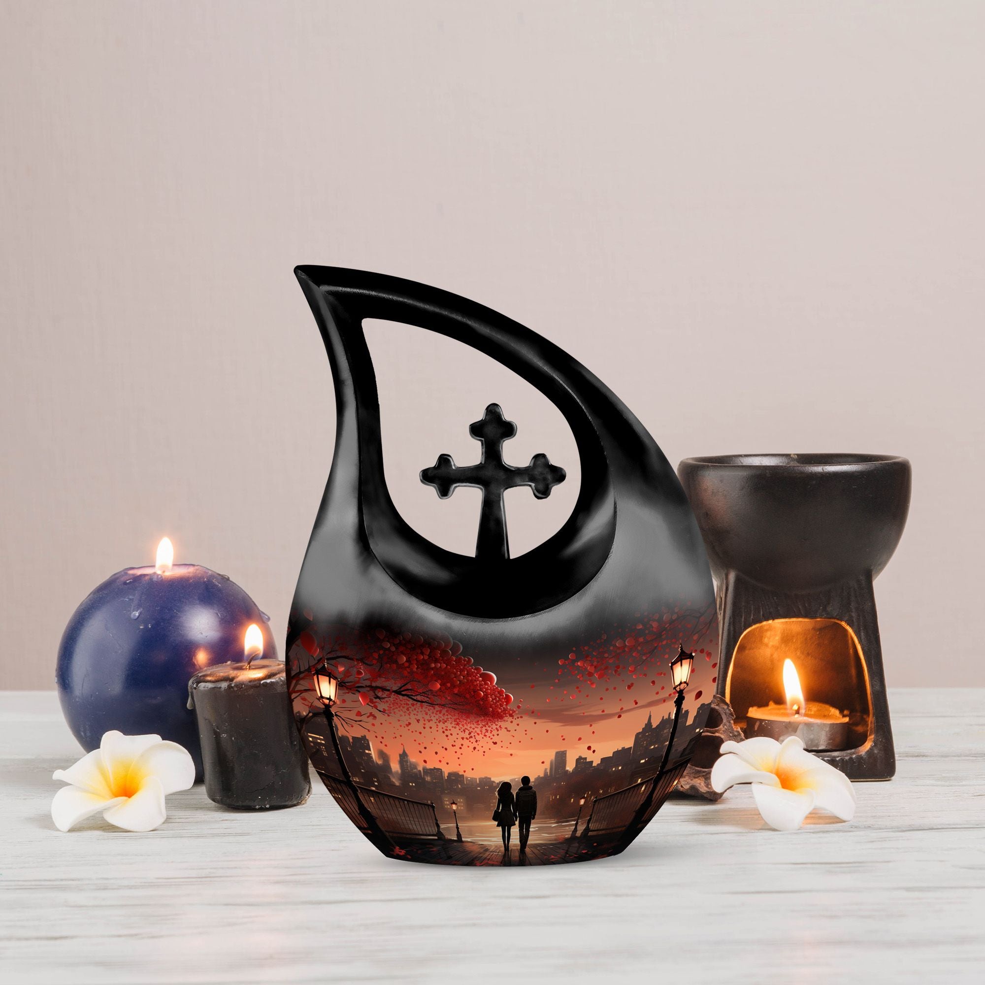 The Couple Walking Themed Urn for Funeral – Urn Memorial for Lovers offers a touching tribute to two souls forever connected. With its serene sunset walkway design, this memorial piece is perfect for families seeking urns for ashes adult female mother or dignified cremation urns for human ashes adult male. The imagery reflects devotion, companionship, and memories that continue beyond time.