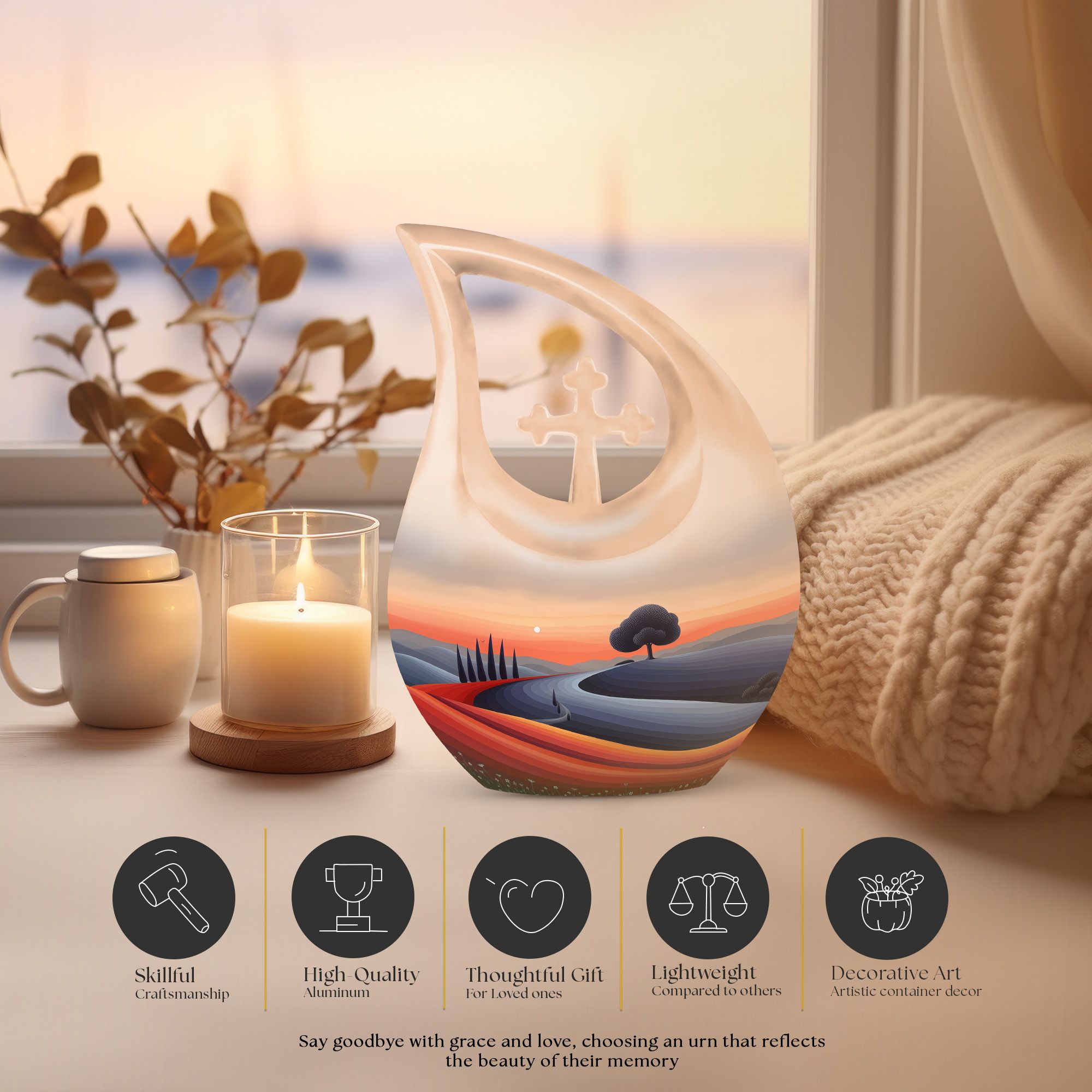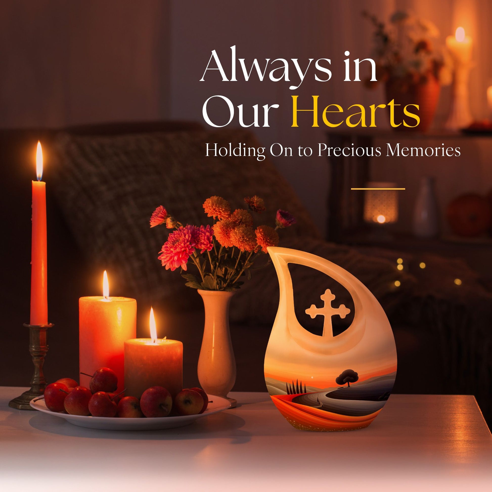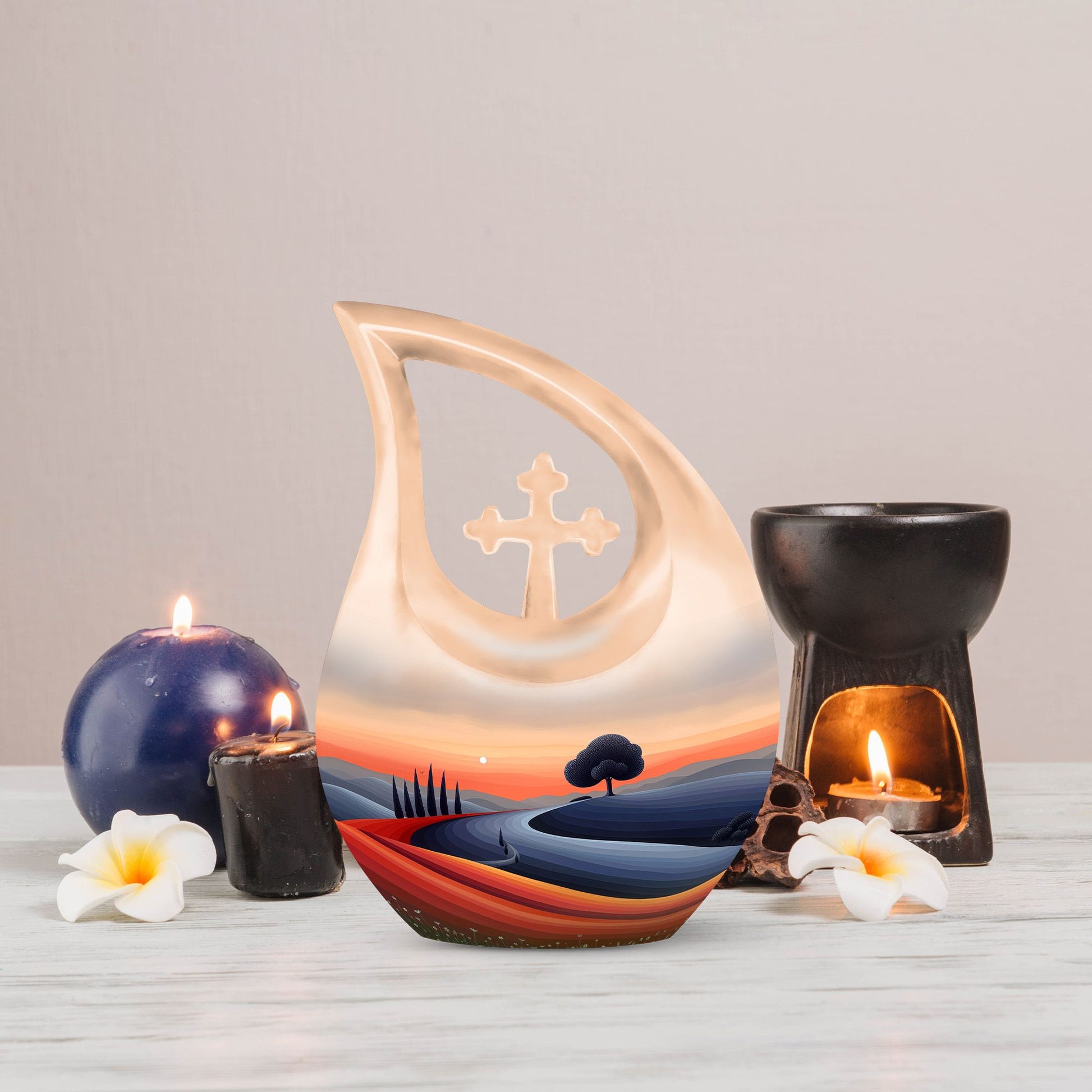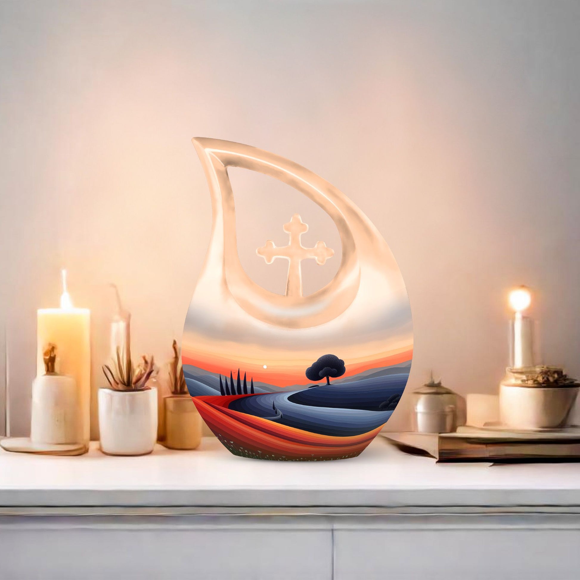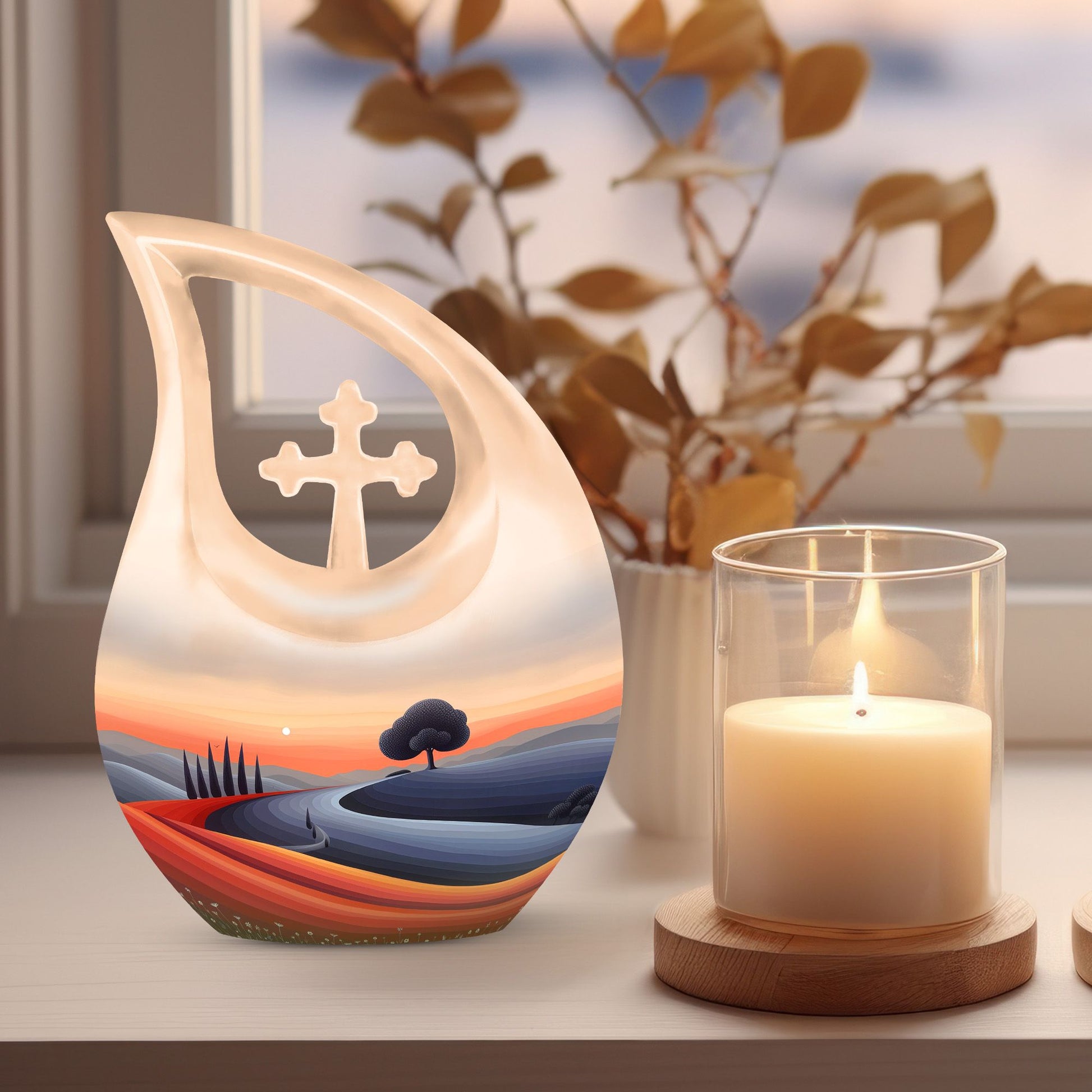 The Sunset Serenade Harmony Urn is a beautifully crafted cremation urn, designed to honor precious memories with elegance and serenity. Inspired by the peaceful hues of a sunset, this urn symbolizes eternal rest and harmony. Made from high-quality materials, the Precious Memories Urn provides a dignified and lasting tribute for your loved one’s ashes. Its graceful design offers a sense of calm and reflection, making it a meaningful addition to any memorial space. This urn serves as a timeless vessel, preserving the memory of your loved one with warmth and grace.