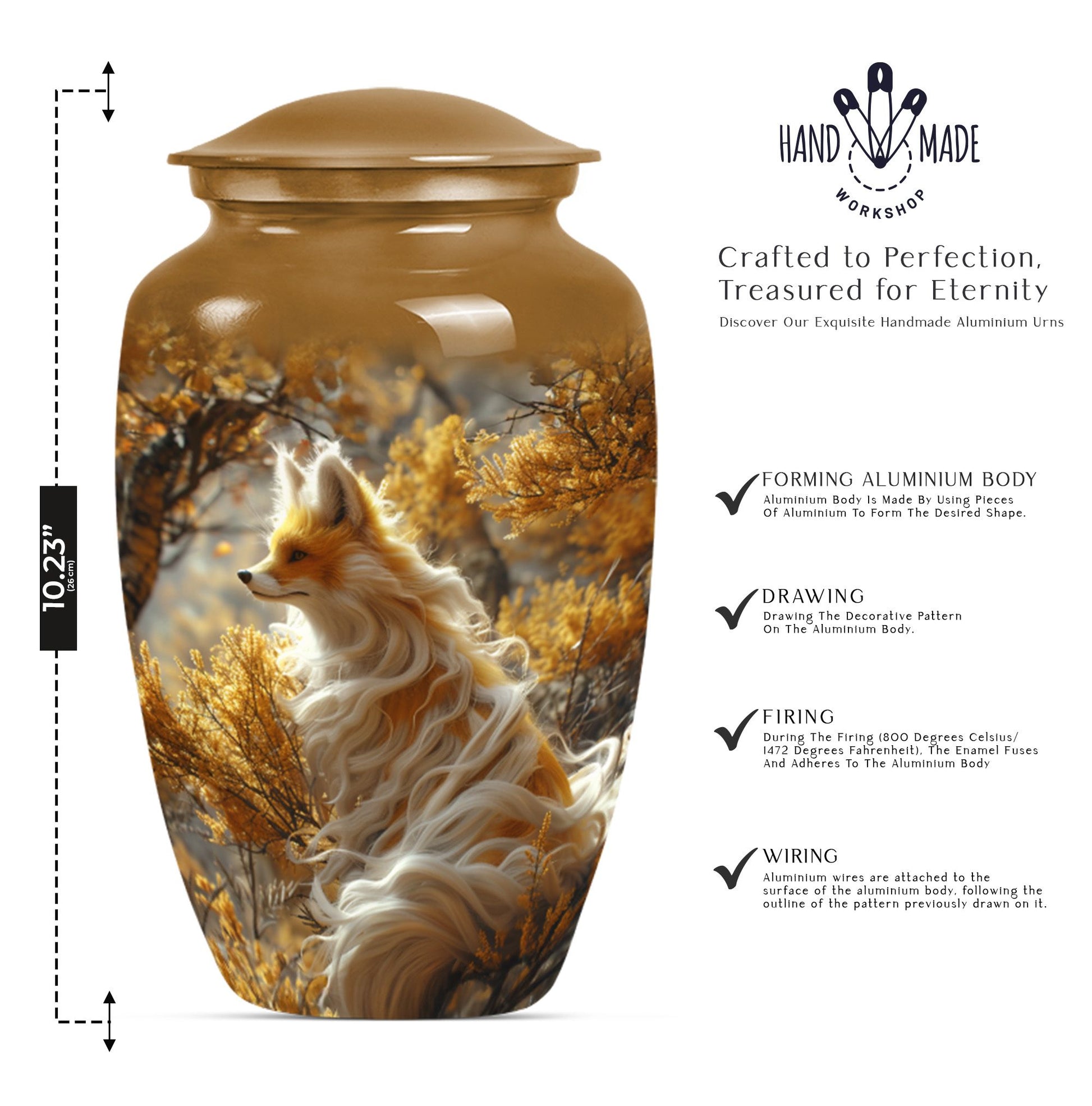 Find solace during difficult times with our high-quality 10-inch Fox Cremation Urn, perfectly suited for men, and designed to honor your loved ones. This respectfully large urn, weighing at 3.3 pounds, is expertly crafted from robust aluminium, adding a substantial presence and a sense of timeless durability. Ideal for memorial ceremonies, each urn boasts a remarkable capacity of 200 cubic inches, and comes with a plush velvet pouch, specially designed for the secure containment of ashes. Bearing an elegant butterfly theme and a classic urn silhouette, this piece allows for a touching tribute to your cherished ones. Further heighten its meaning with our personalization service, where names can be delicately engraved onto the urn, fostering a unique and enduring connection. In your search for 'funeral cremation urns', 'burial urns for cremation ashes mother' or 'urn ash funeral urn', consider this urn as a distinctive offering in our specialized 'cremation urn' selection.