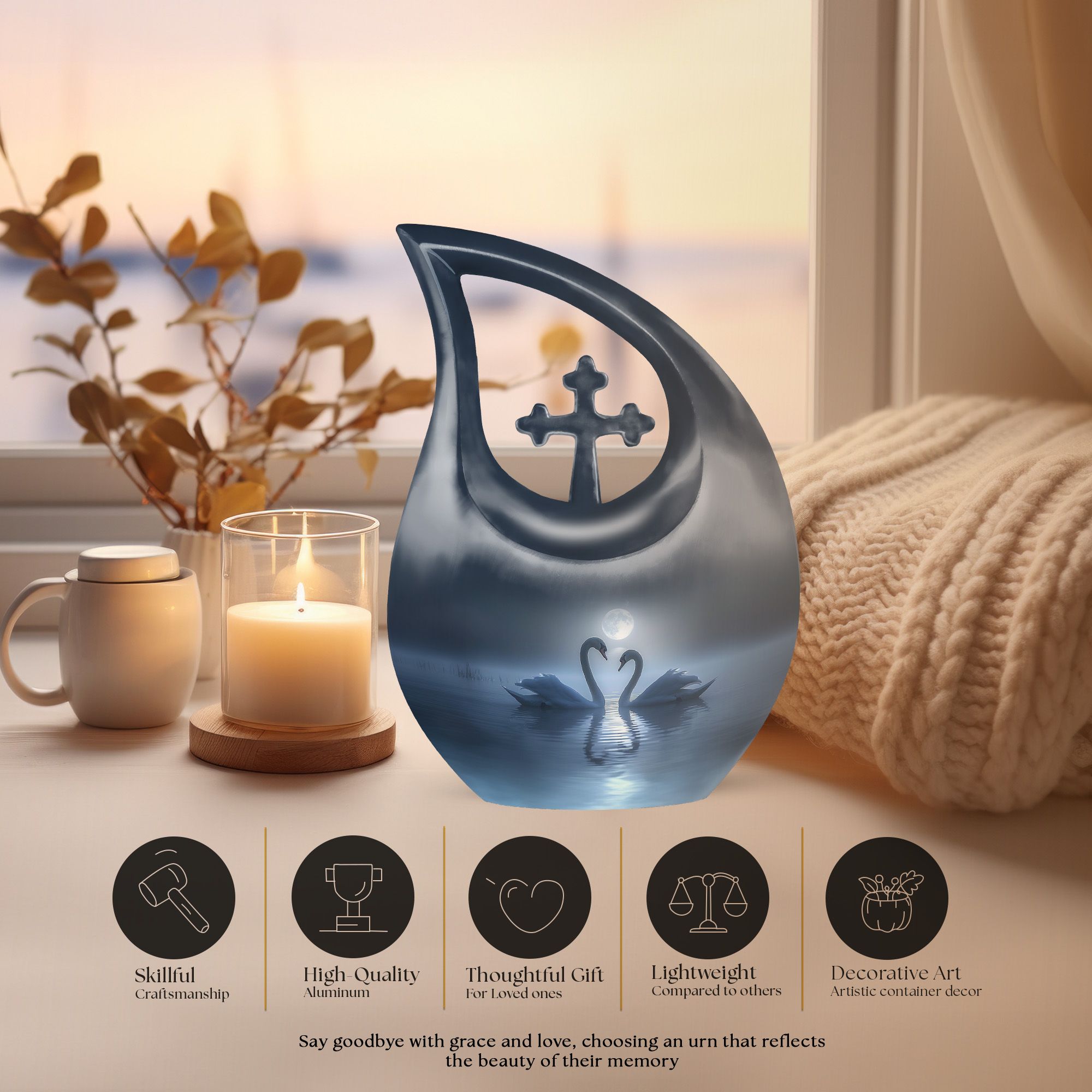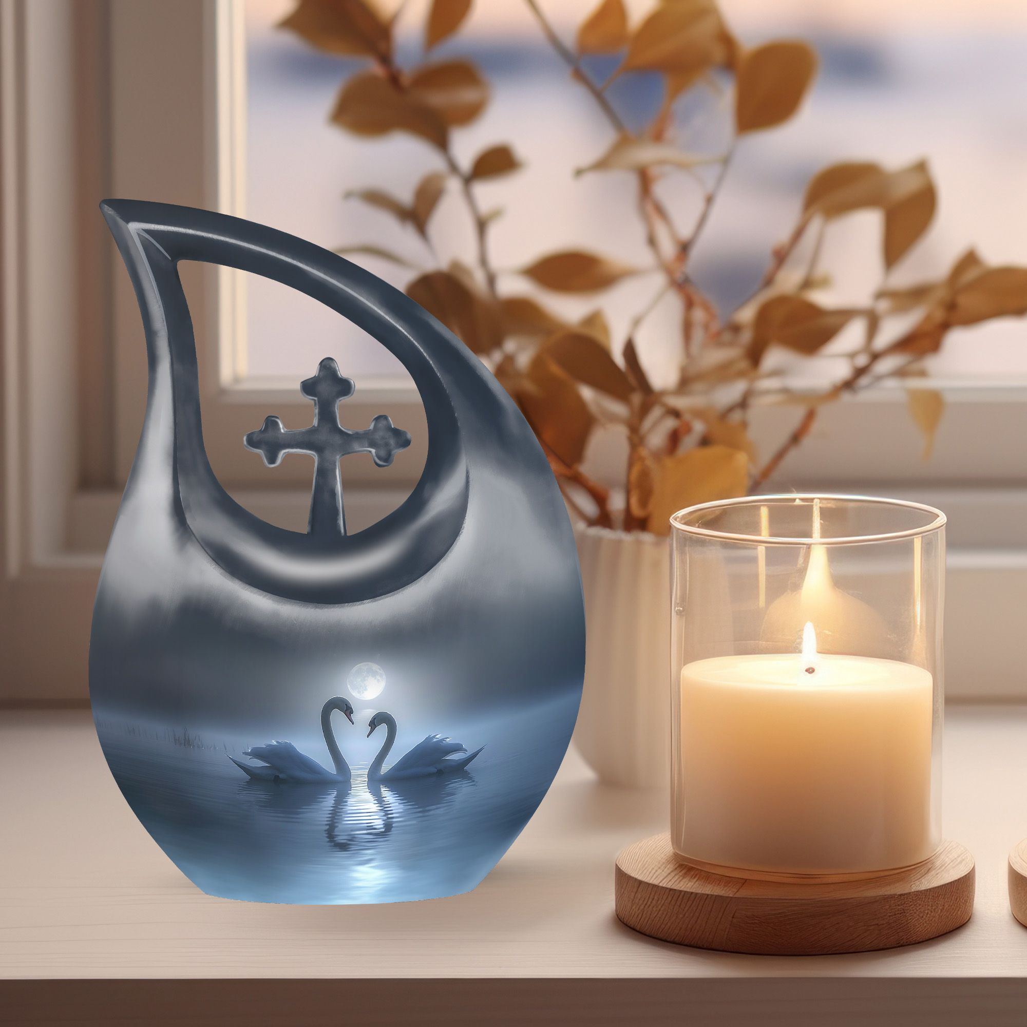 The Swan Memorial Urn offers a peaceful and elegant way to honor a cherished life, providing comfort to families seeking memorial keepsakes for ashes or keepsake urns that symbolize love and serenity. Its swan-inspired artwork reflects purity, grace, and eternal remembrance.