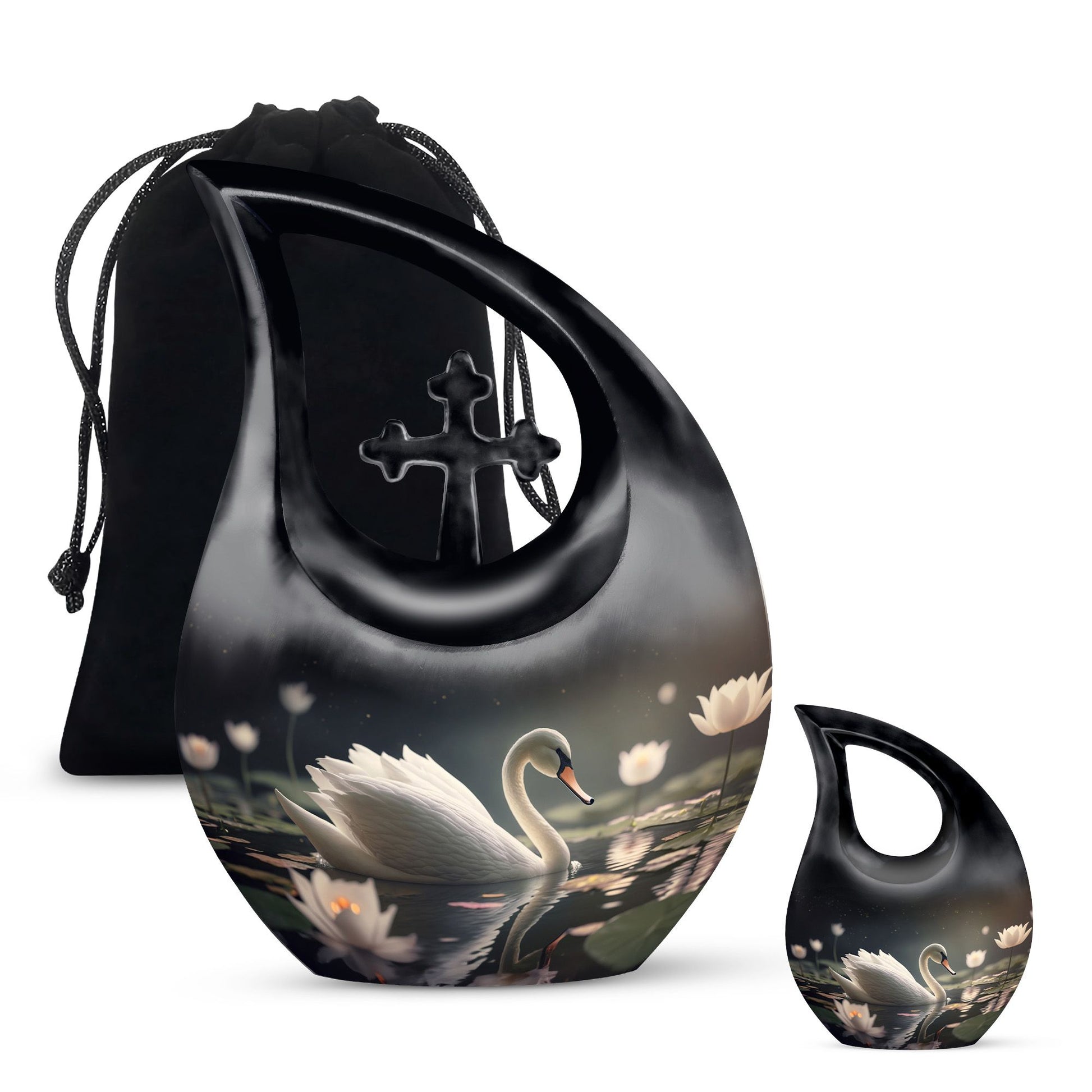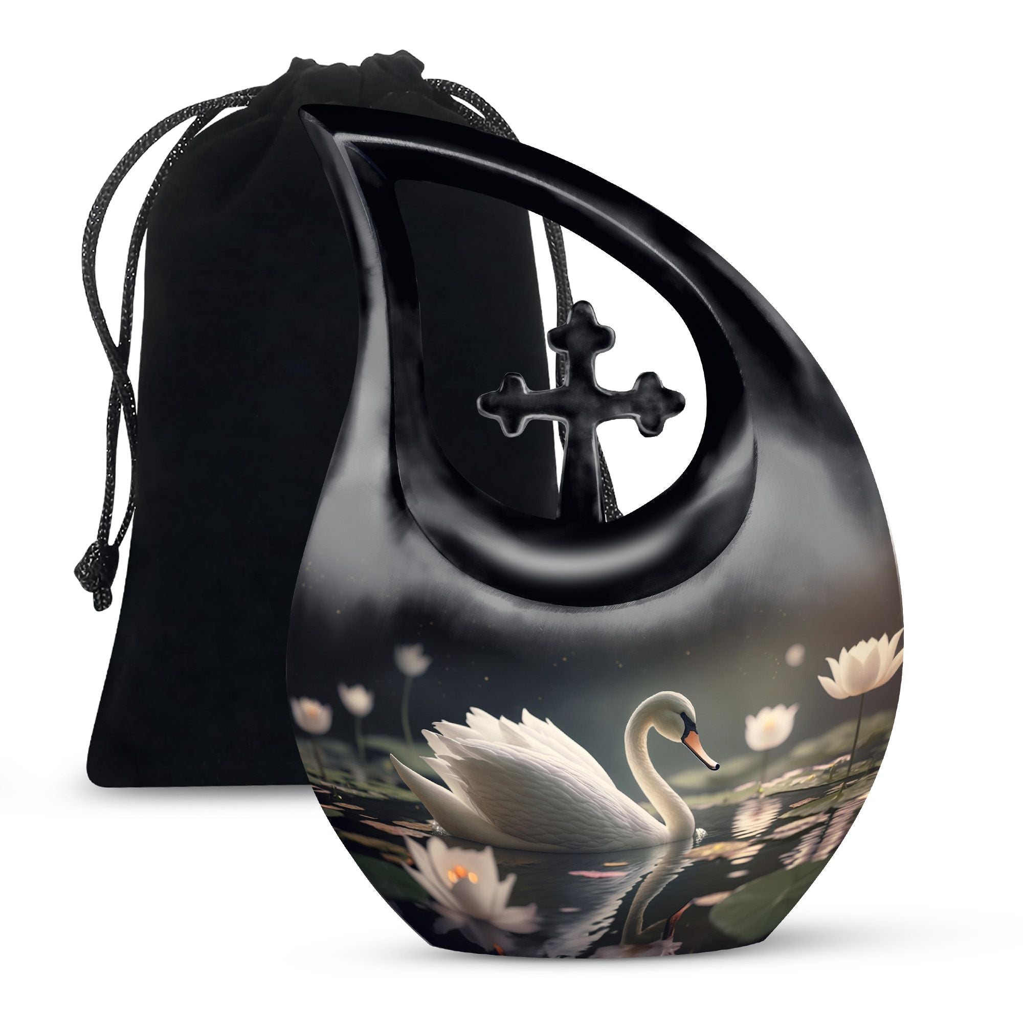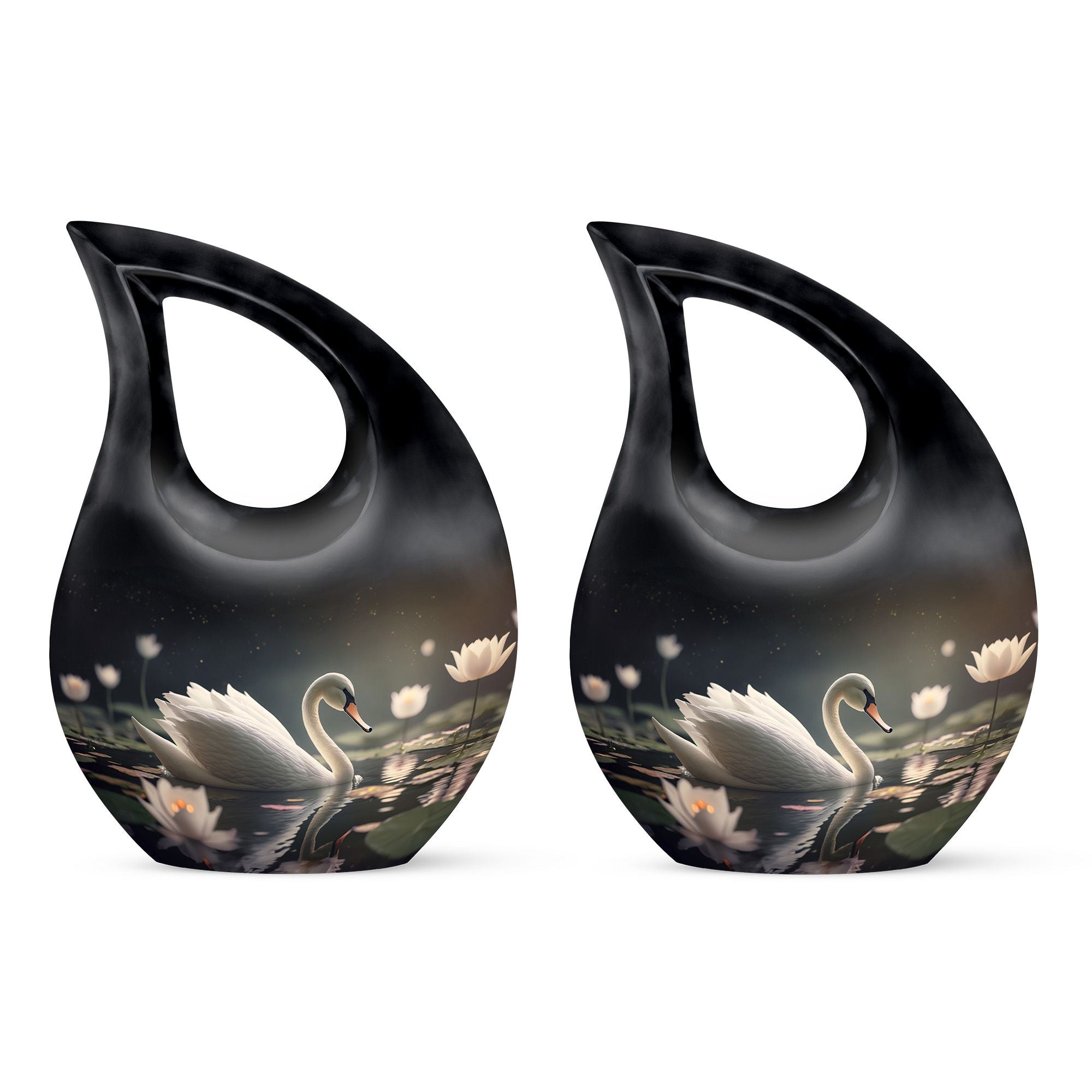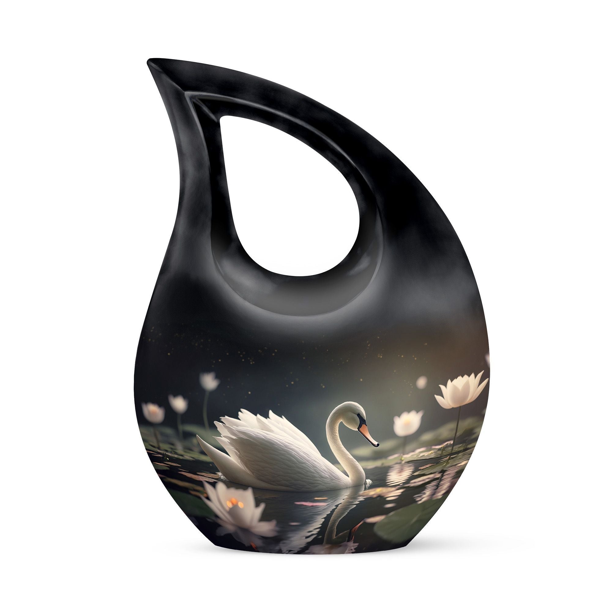 Designed with artistic detail, the graceful black swan motif and delicate white floral accents create a visually stunning piece. Crafted as a large decorative urn, it combines elegance with strength to meet the needs of those searching for cremation urns large, urns for human ashes large, or a cremation urn adult large. Its durable build ensures lasting beauty, while the classic black-and-white design brings both style and symbolism to any memorial space. Ideal for homes, memorial rooms, or ceremonies, this large cremation urn blends sophistication with function.