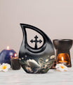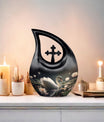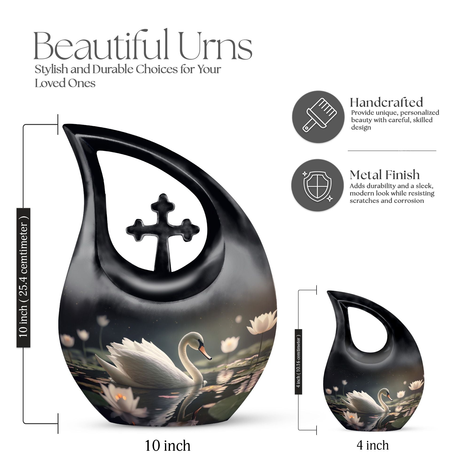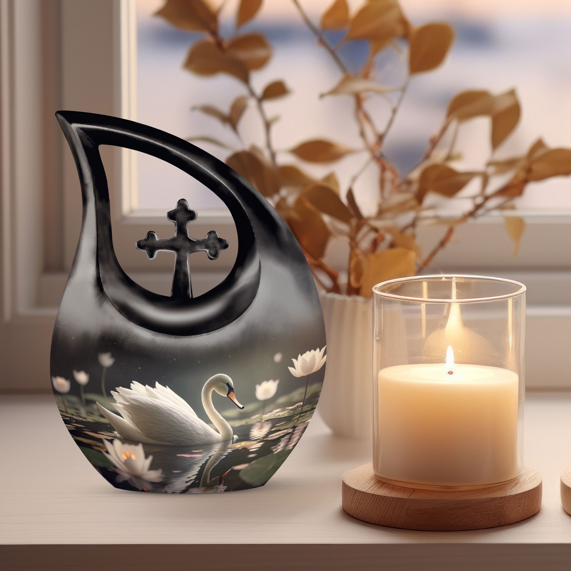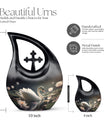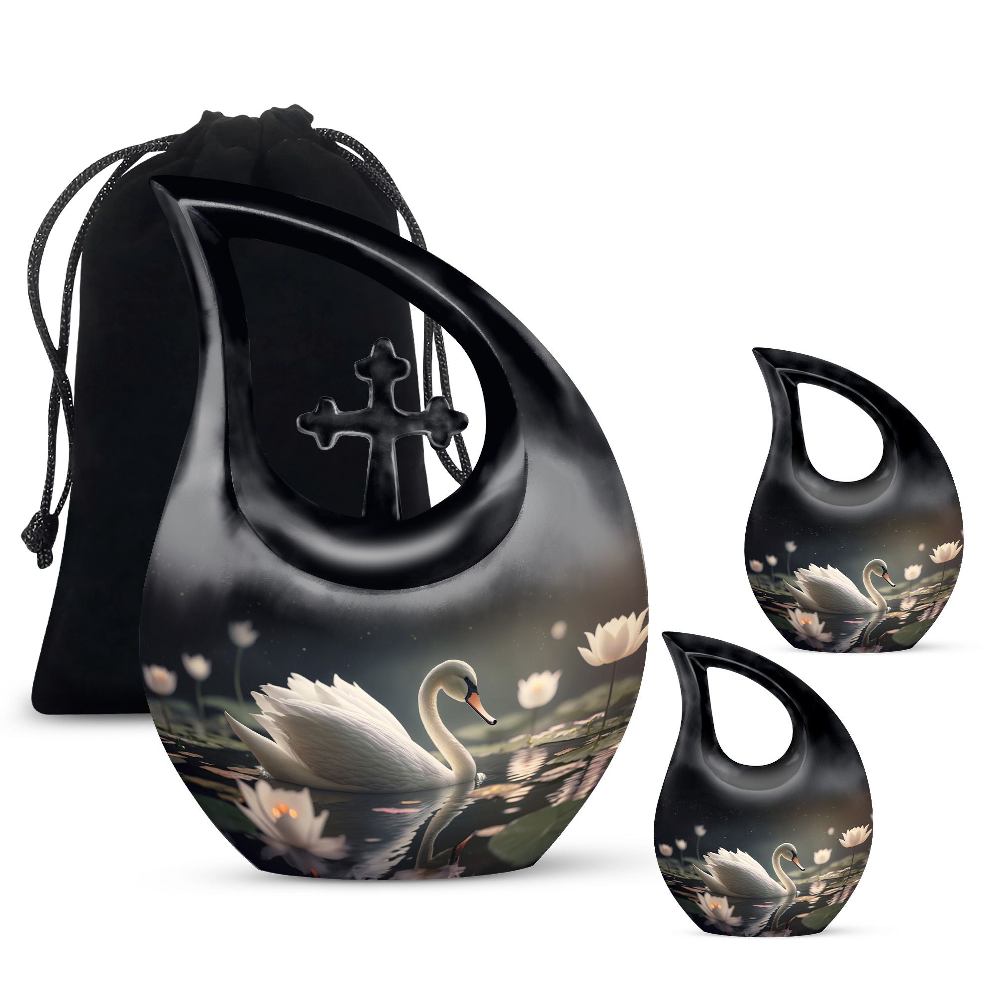 Designed with artistic detail, the graceful black swan motif and delicate white floral accents create a visually stunning piece. Crafted as a large decorative urn, it combines elegance with strength to meet the needs of those searching for cremation urns large, urns for human ashes large, or a cremation urn adult large. Its durable build ensures lasting beauty, while the classic black-and-white design brings both style and symbolism to any memorial space. Ideal for homes, memorial rooms, or ceremonies, this large cremation urn blends sophistication with function.