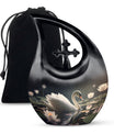 Black Swan WIth White Flowers - Keepsake Cremation Urn For Human Ashes
