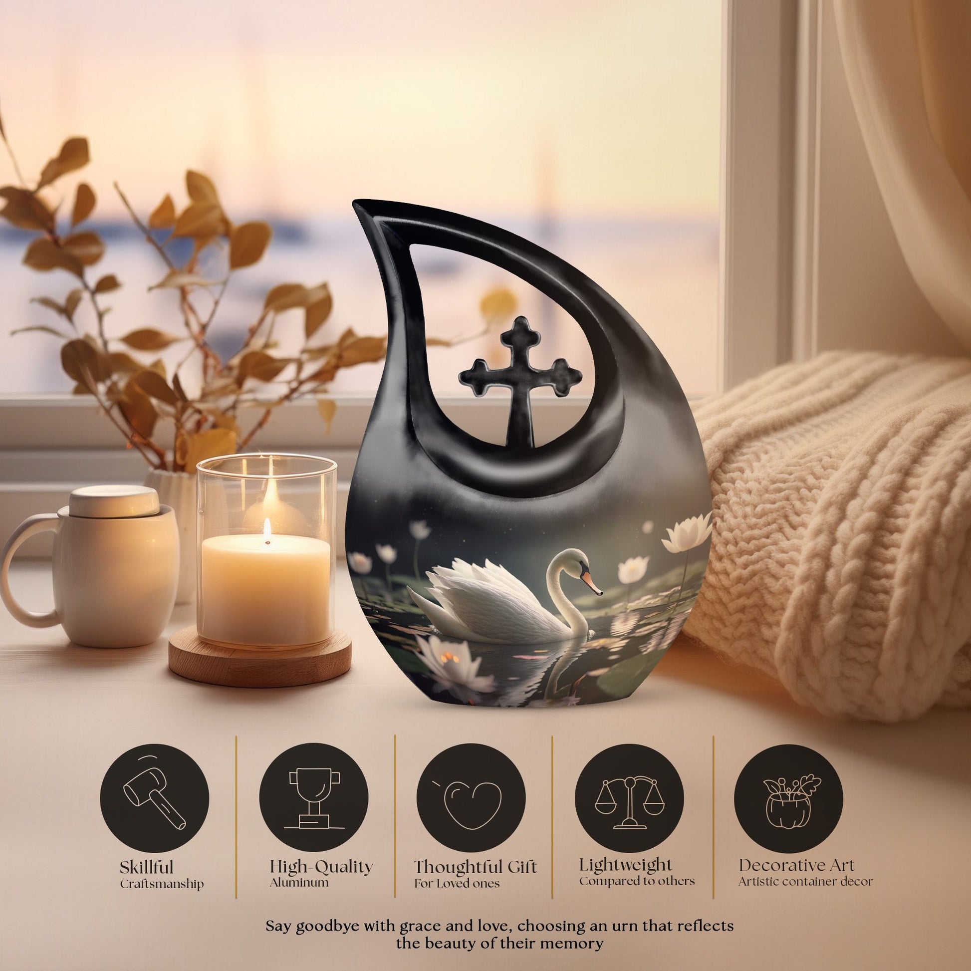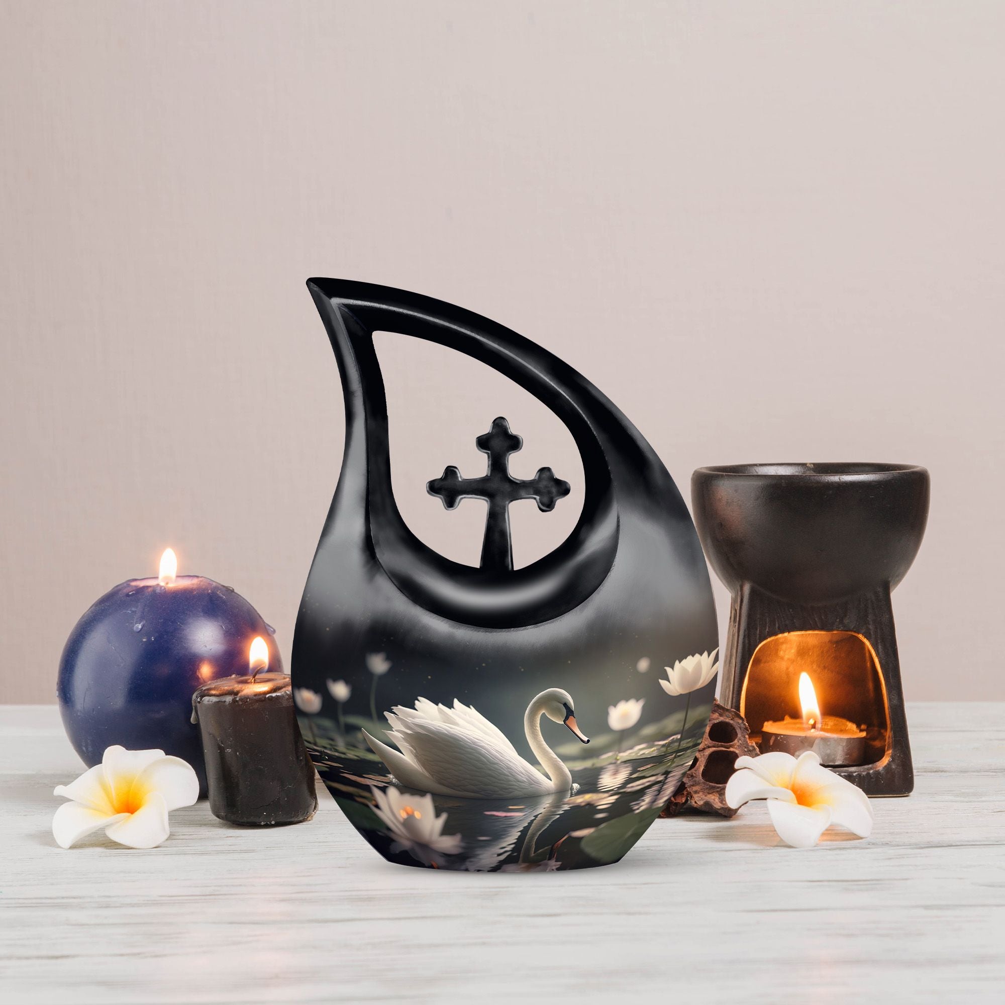 Honoring a cherished life becomes a deeply personal experience, and this Black Swan with White Flowers Keepsake Cremation Urn offers a serene way to preserve those memories. Thoughtfully crafted, it brings comfort while serving as a dignified resting place for your loved one. Its presence reflects compassion, making it suitable for funeral urns for human ashes adult and families seeking something meaningful.