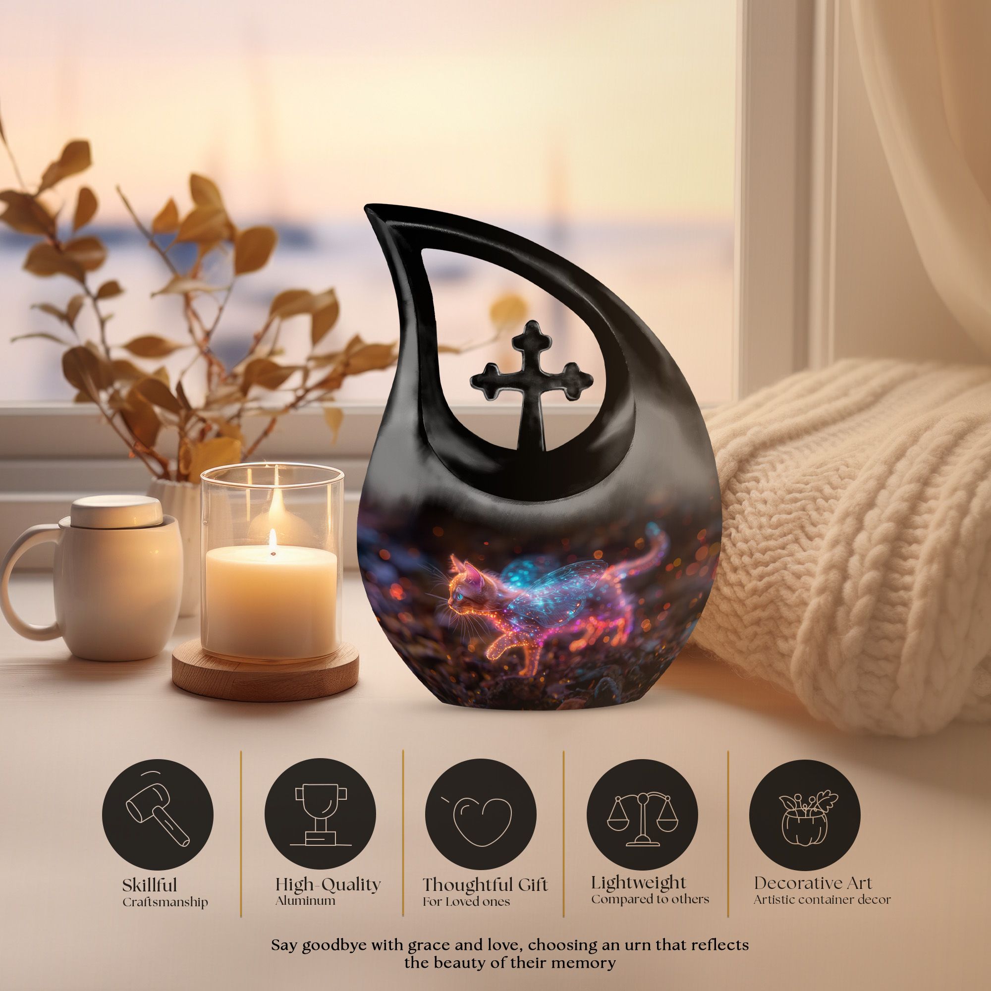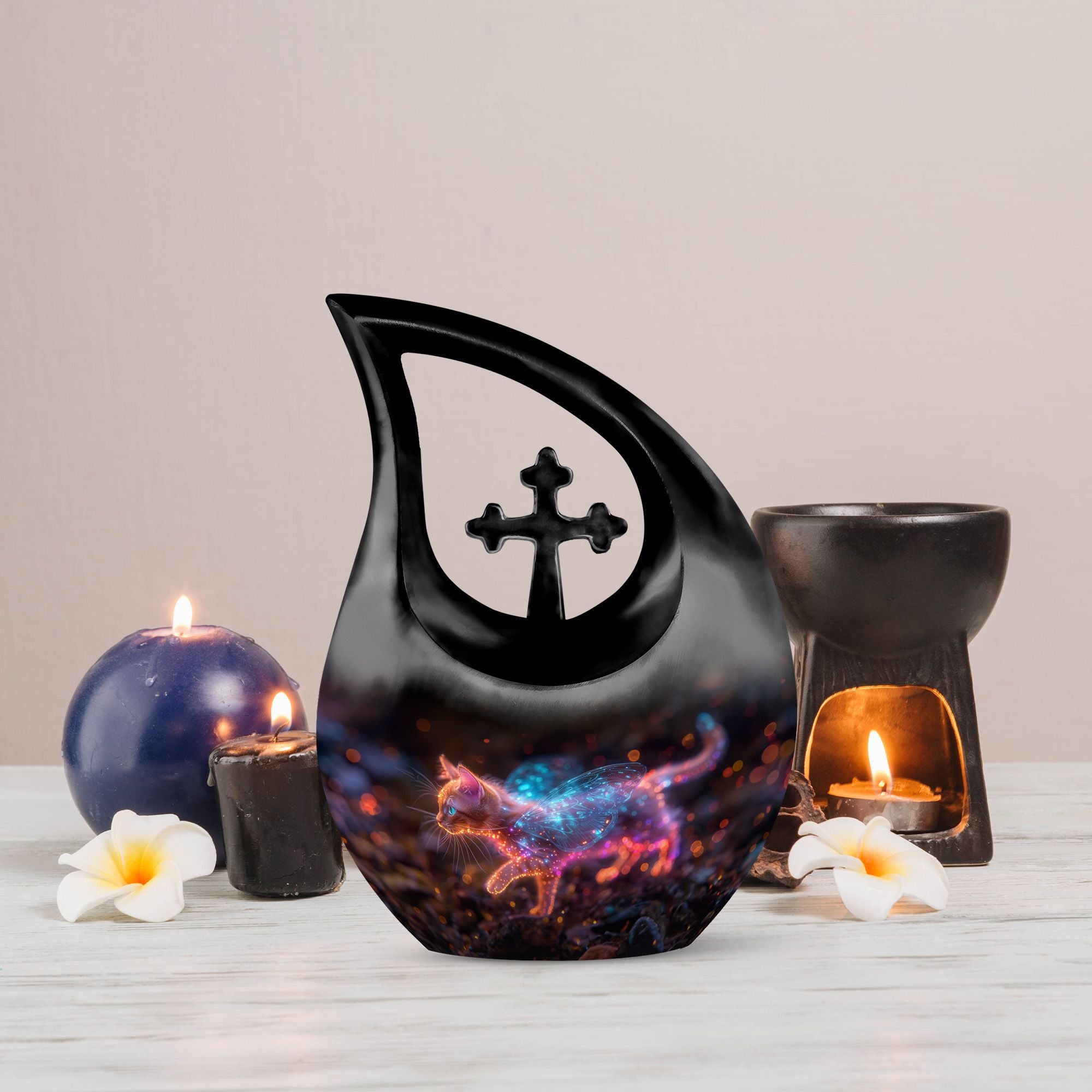 Honor the spirit of your beloved feline with the Cosmic Cat Urn for Pet Ashes – Magical Cat Themed Urn Memorial. This enchanting urn embodies the harmony between love and the stars, symbolizing a bond that transcends time. Perfect for those seeking cat memorial ashes or personalized cat urns for ashes, it offers a cosmic touch of serenity and remembrance.