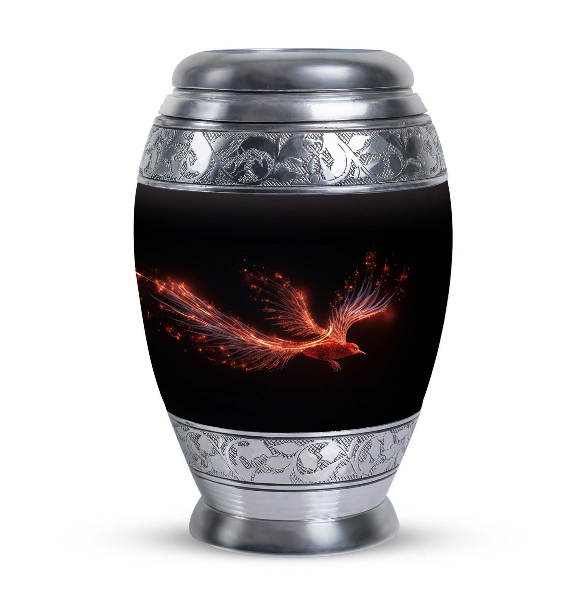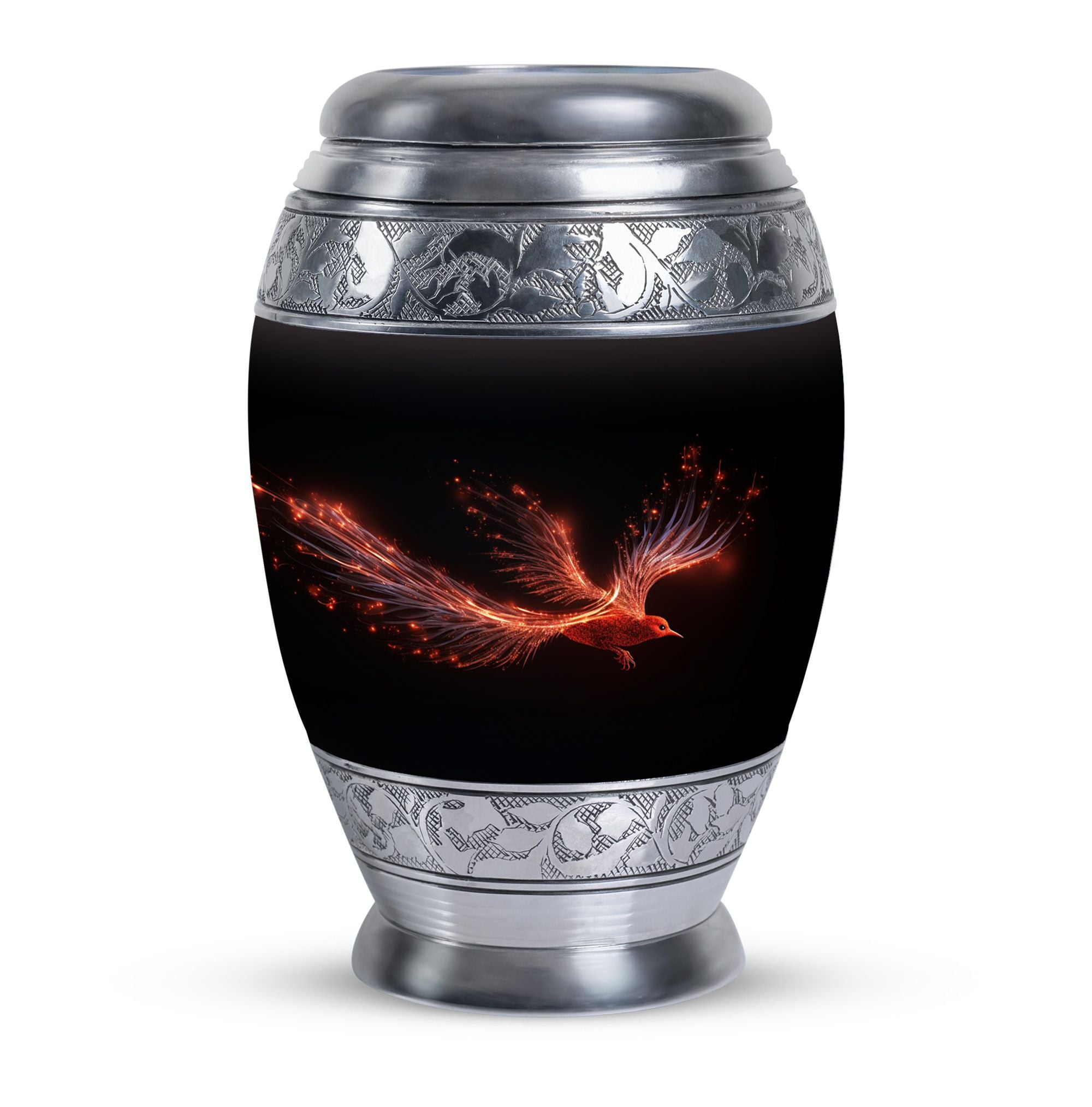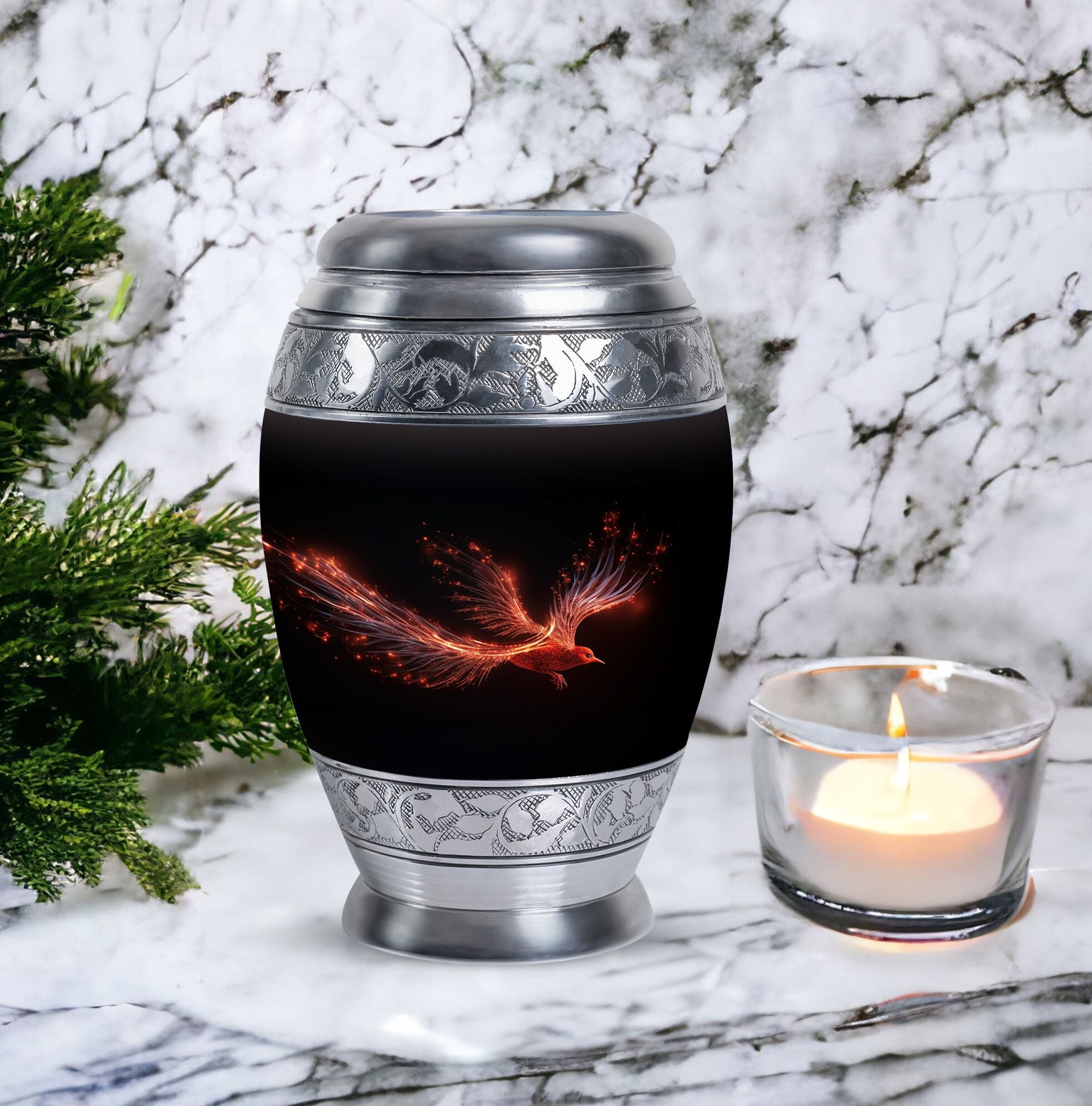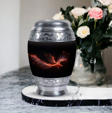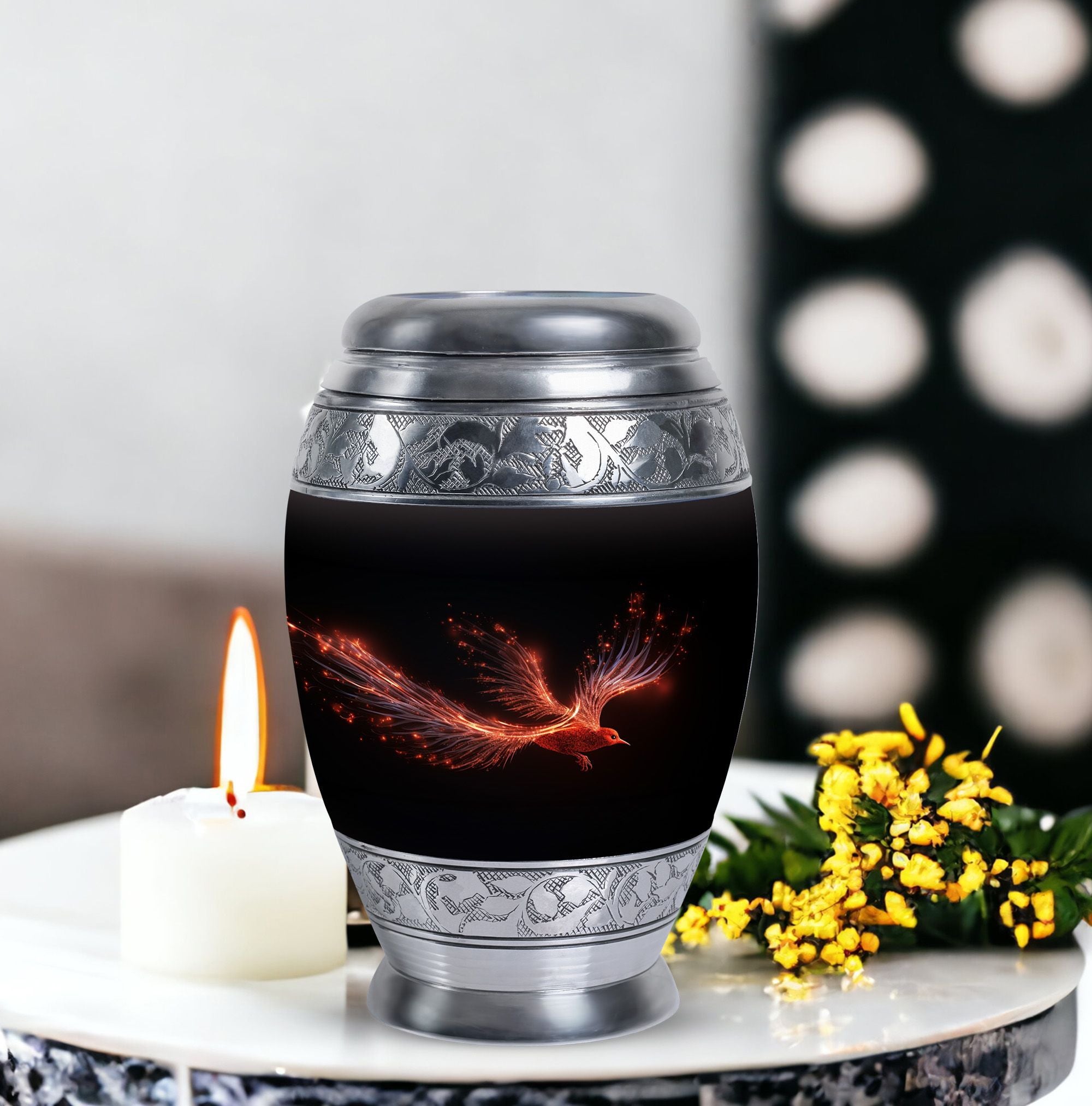 Cherish the memory of your loved ones with our meticulously crafted Red Sparrow Urns for Human Ashes. Our high-quality sturdy large urn, a quintessential 'Cremation Container', is made from highly durable 'Aluminium' ensuring it stands the test of time. Measuring '10 inches in height' and weighing '3.3 pounds', this urn offers a generous 'Capacity' of '200 cubic inches', making it suitable for containment of ashes for adults. The urn arrives with a complementary 'velvet pouch' for keeping ashes secure and undisturbed. Personalize your tribute to the departed with our 'Customization' offer and engrave names on the urn for a unique memorial piece. This '3 inch' Urn brings dignity and respect to the departed, making these Red Sparrow urns more than just a 'Ashes Holder', but a tribute to a life well lived. Don't confine your search to 'Custom Cremation Urns' or 'Large Urns for Ashes', explore the Unique Urns for Ashes we offer.