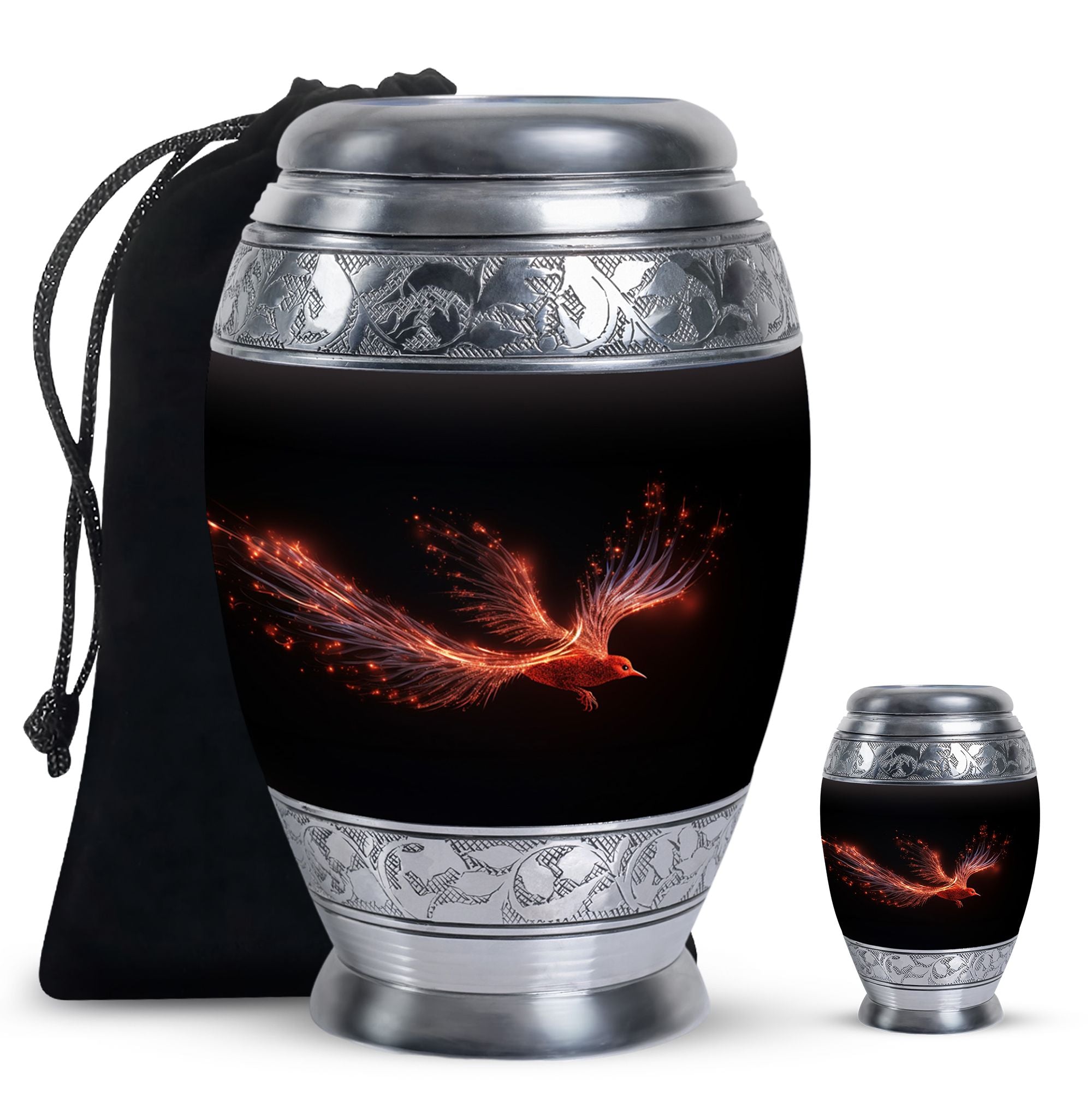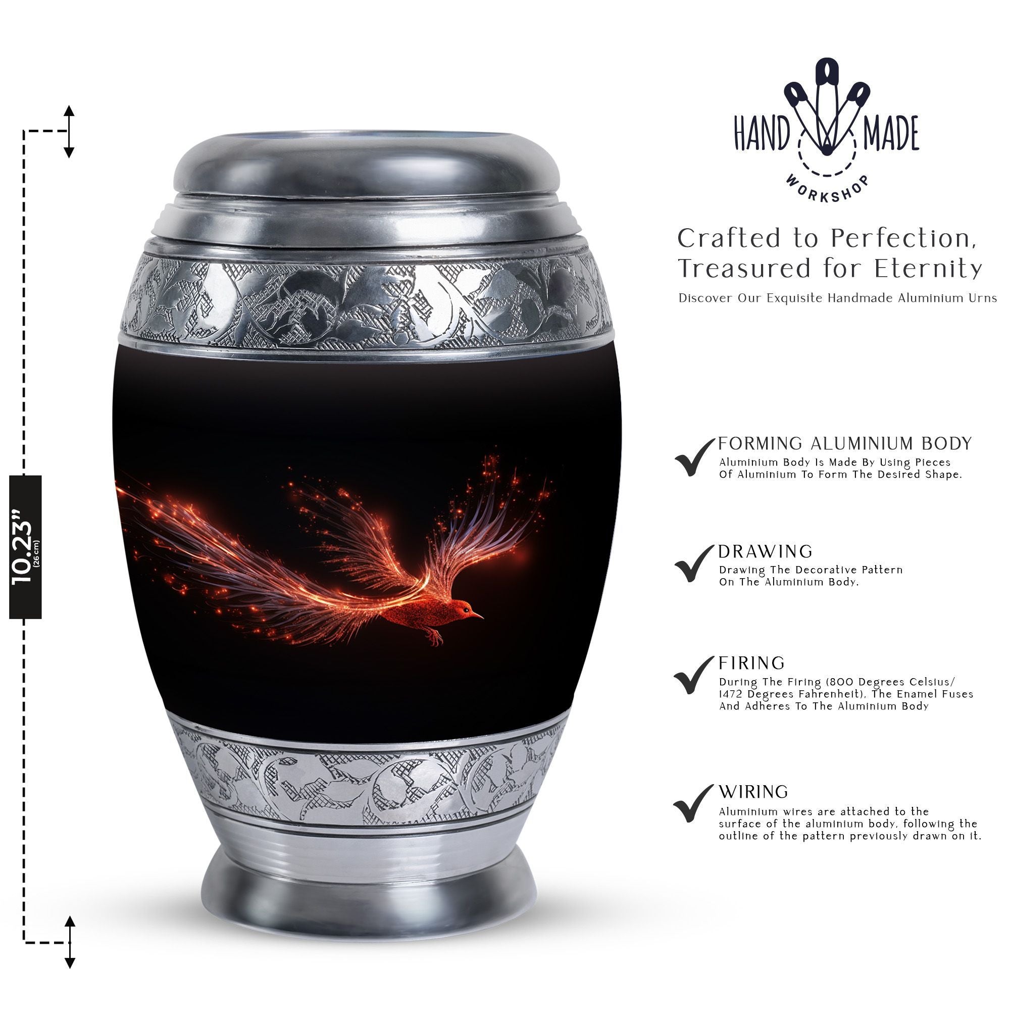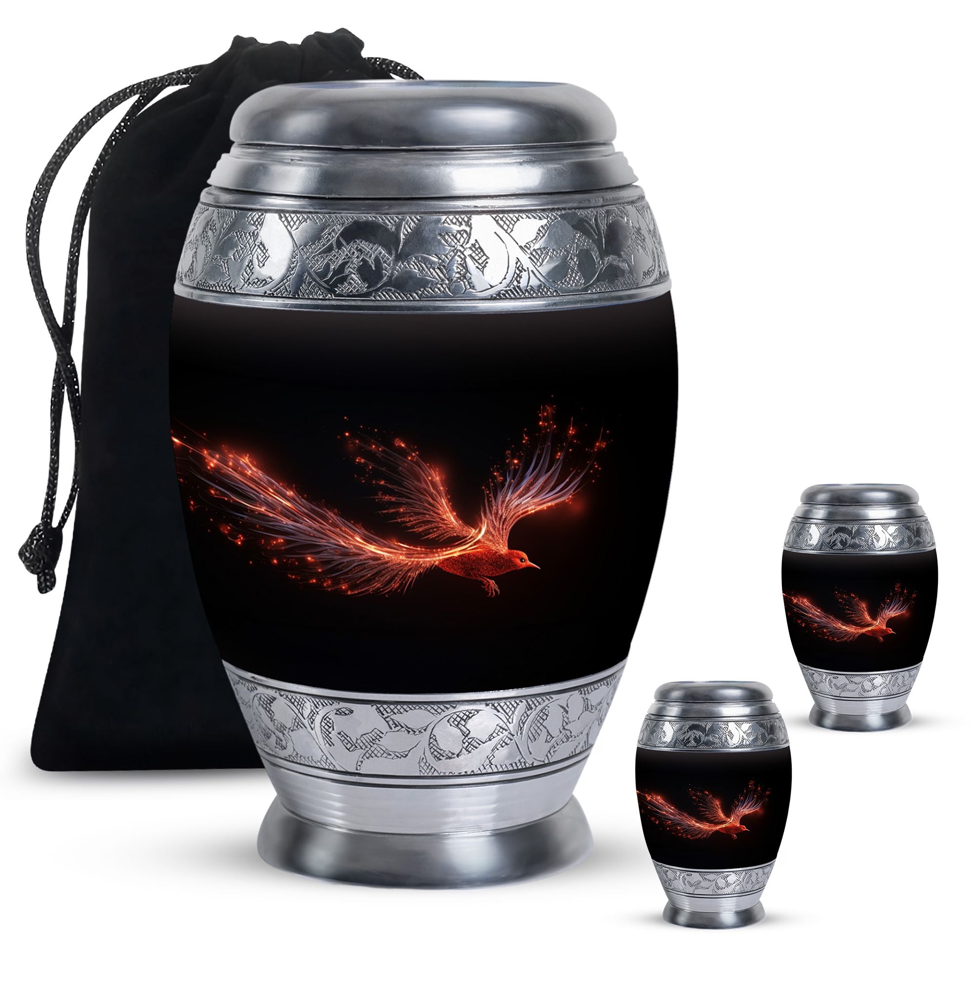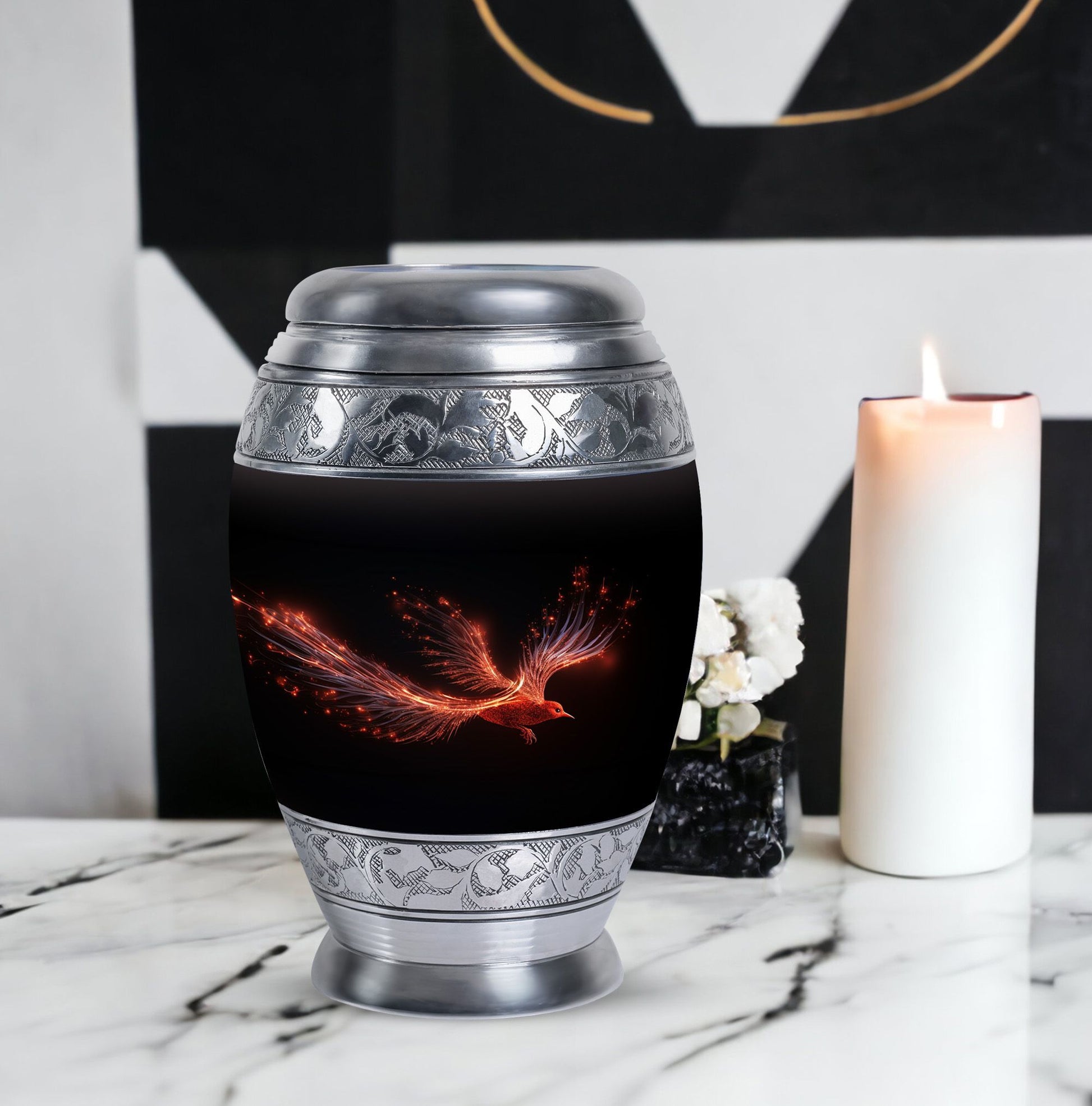 Cherish the memory of your loved ones with our meticulously crafted Red Sparrow Urns for Human Ashes. Our high-quality sturdy large urn, a quintessential 'Cremation Container', is made from highly durable 'Aluminium' ensuring it stands the test of time. Measuring '10 inches in height' and weighing '3.3 pounds', this urn offers a generous 'Capacity' of '200 cubic inches', making it suitable for containment of ashes for adults. The urn arrives with a complementary 'velvet pouch' for keeping ashes secure and undisturbed. Personalize your tribute to the departed with our 'Customization' offer and engrave names on the urn for a unique memorial piece. This '3 inch' Urn brings dignity and respect to the departed, making these Red Sparrow urns more than just a 'Ashes Holder', but a tribute to a life well lived. Don't confine your search to 'Custom Cremation Urns' or 'Large Urns for Ashes', explore the Unique Urns for Ashes we offer.